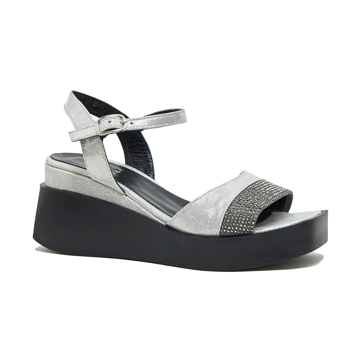Deri astarlı, deri iç tabanlı, hafif poliüretan tabanlı kadın sandalet.