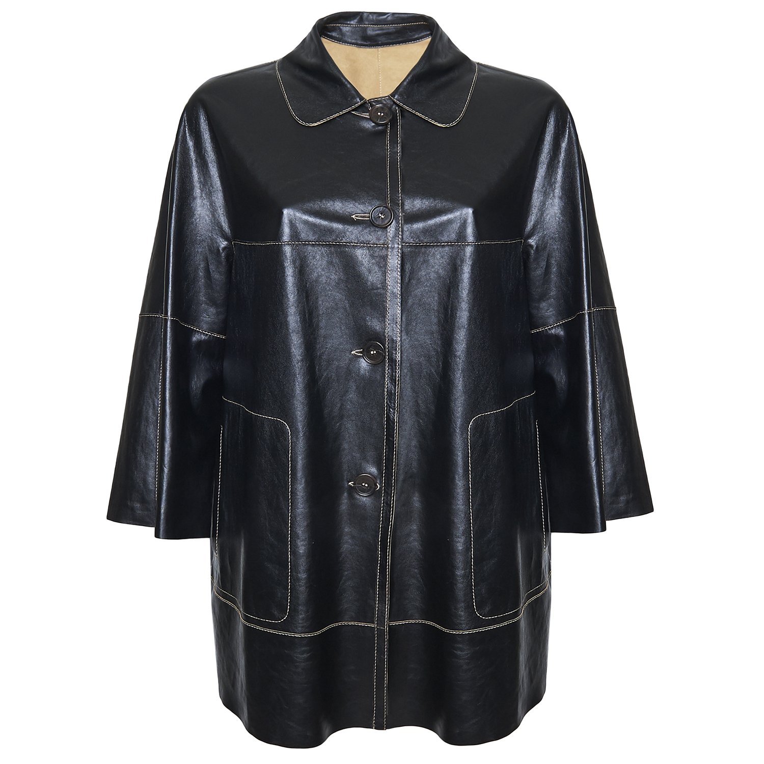 Hiba Kadın Oversize Çift Taraflı Deri Pardösü