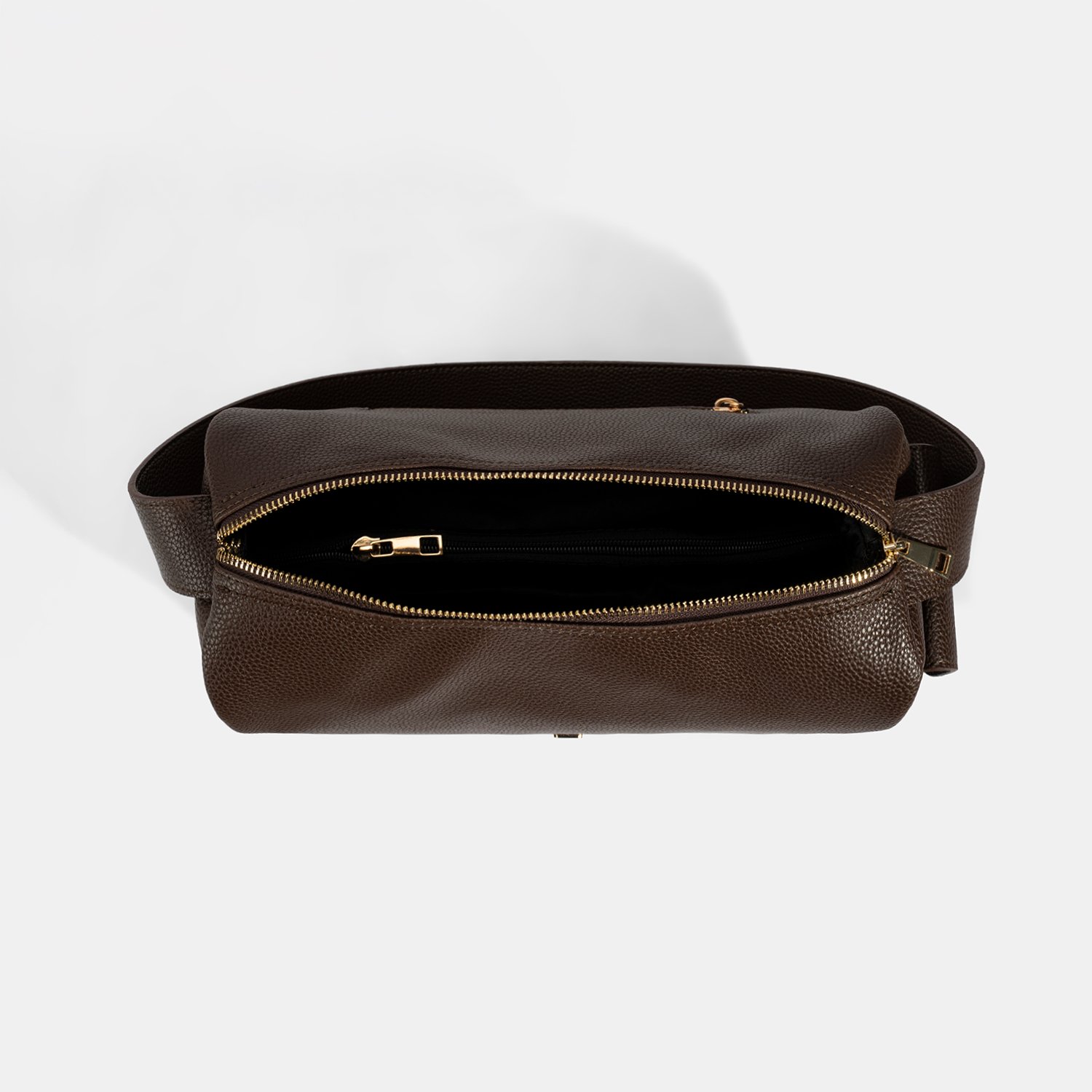 Üç fermuar ve bir ana bölmeden oluşmaktadır.