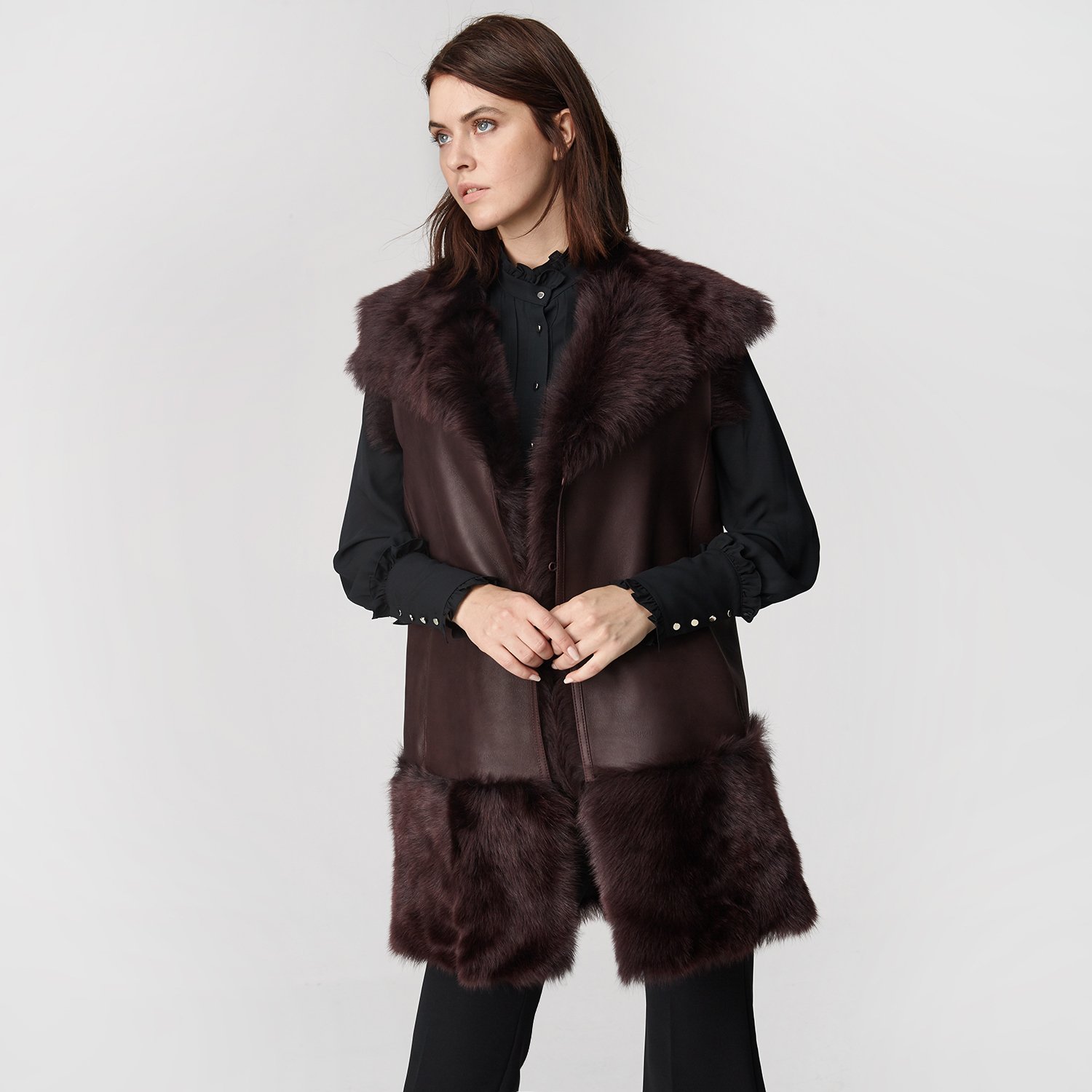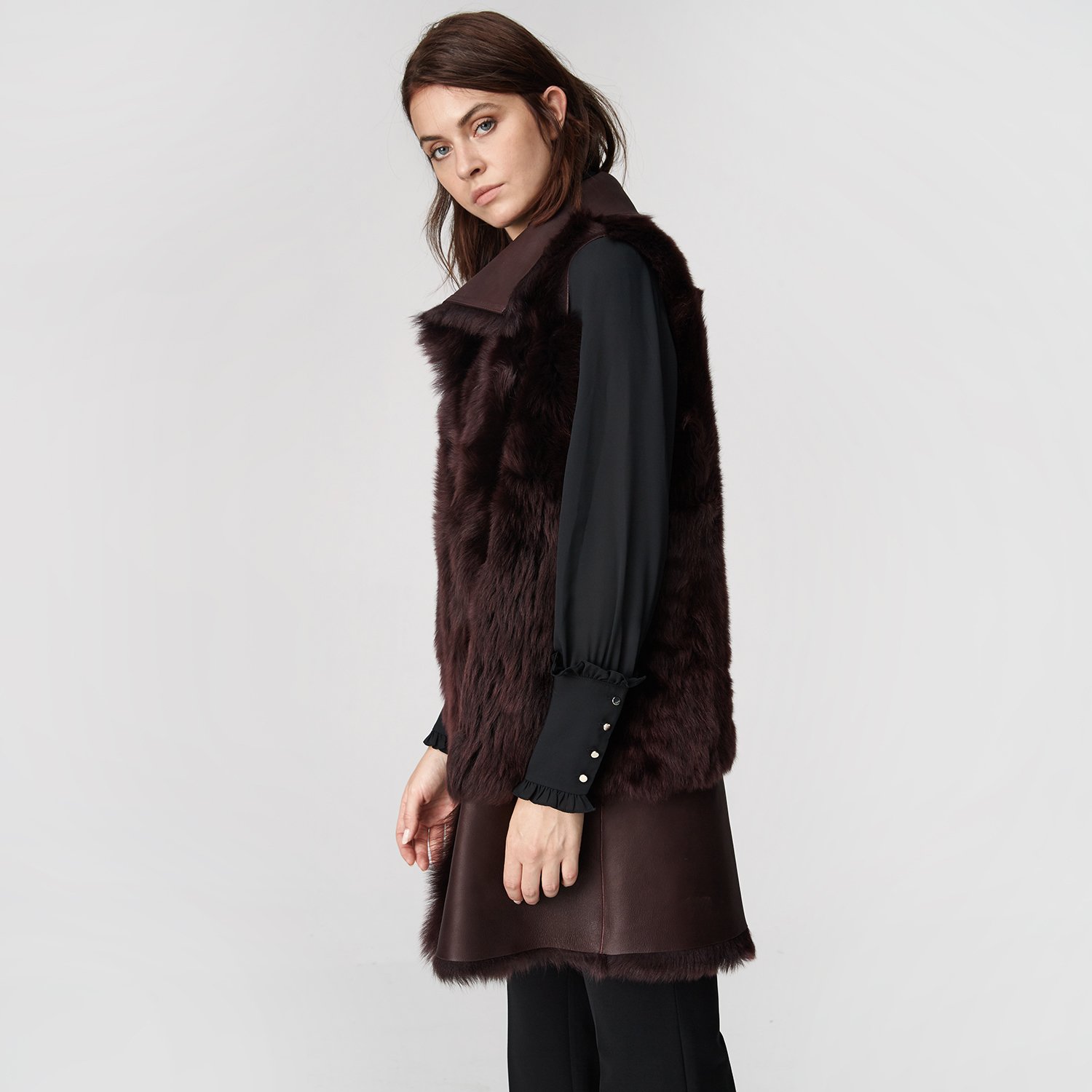 Ikeme Kadın Bordo Çift Taraflı Kürk Yelek