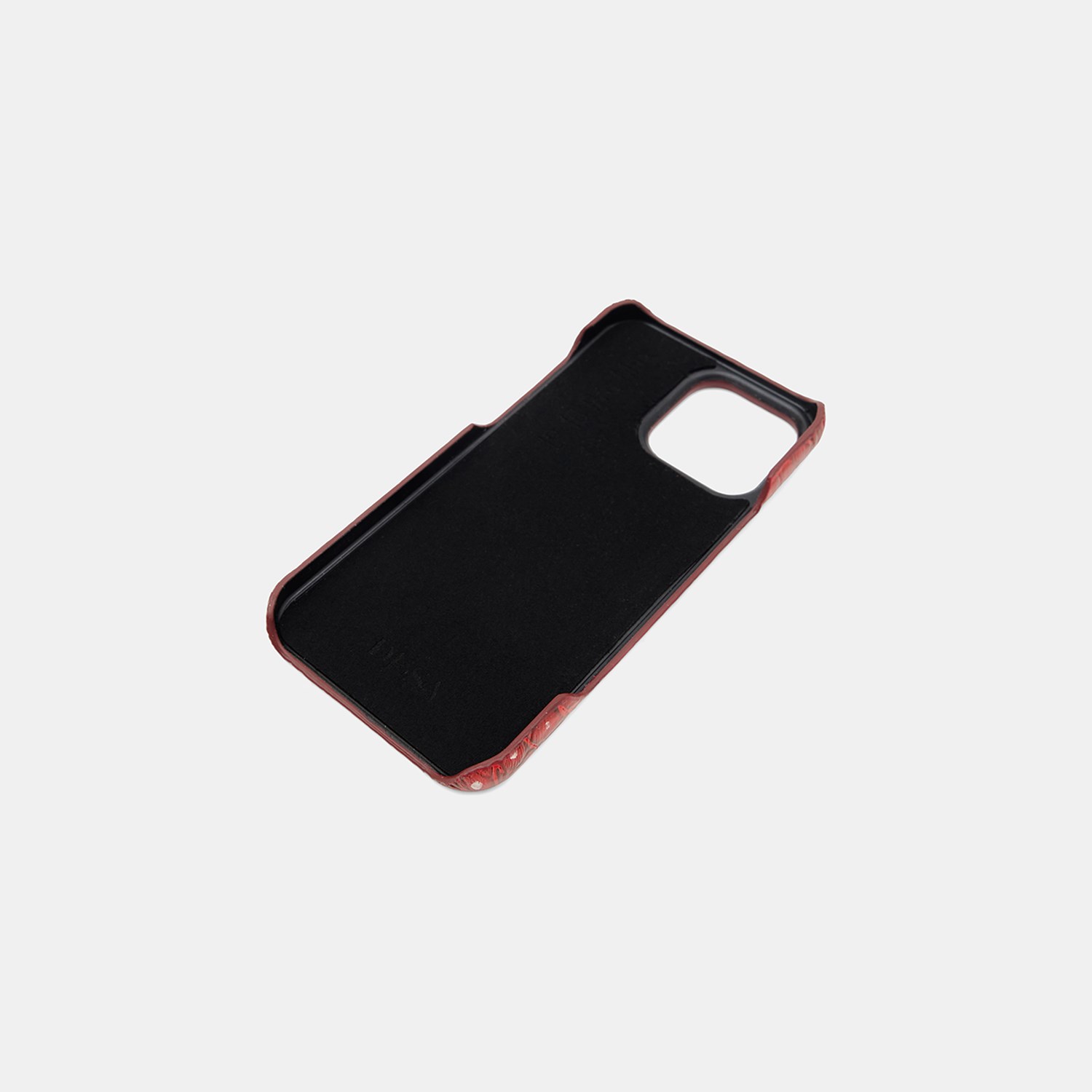 iPhone 16 Pro Max Kırmızı Desenli Deri Telefon Kılıfı