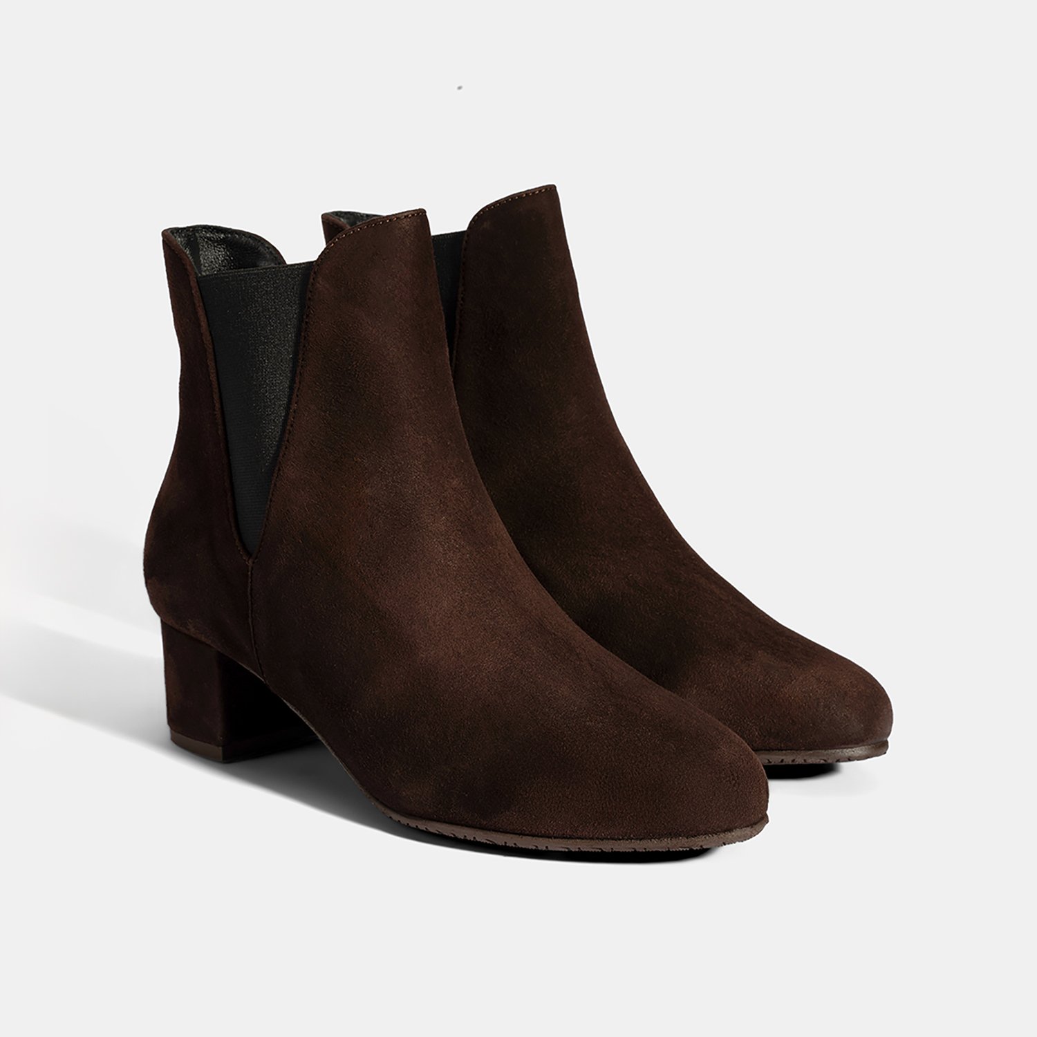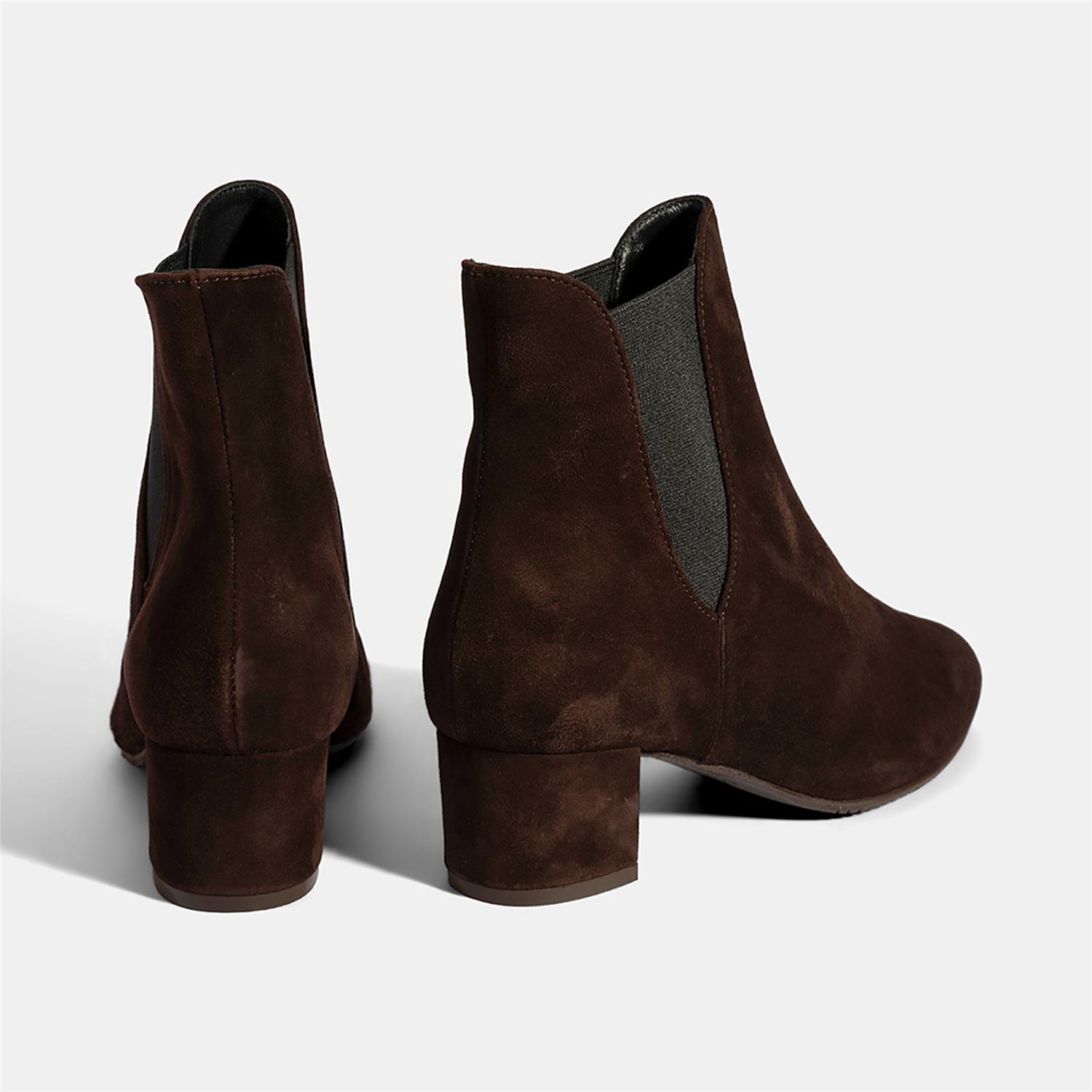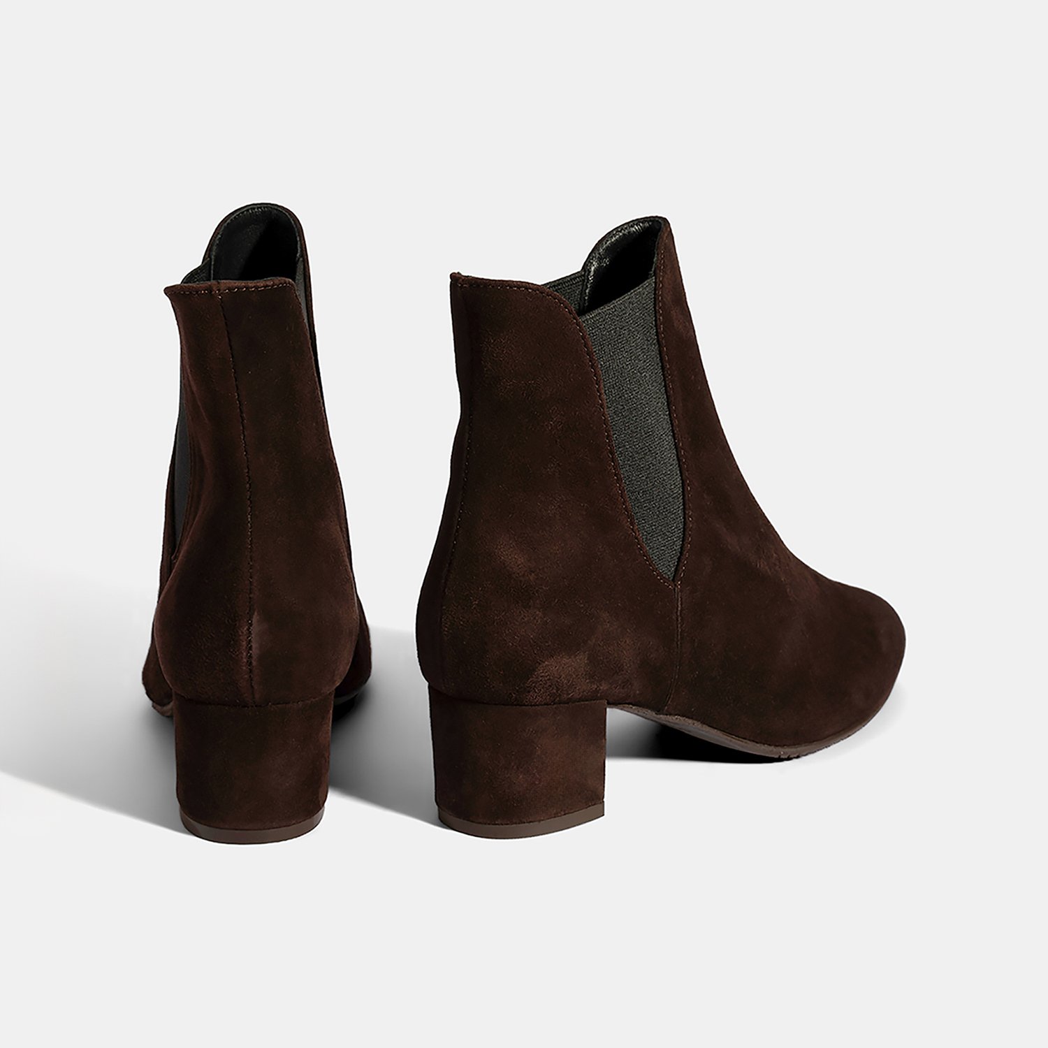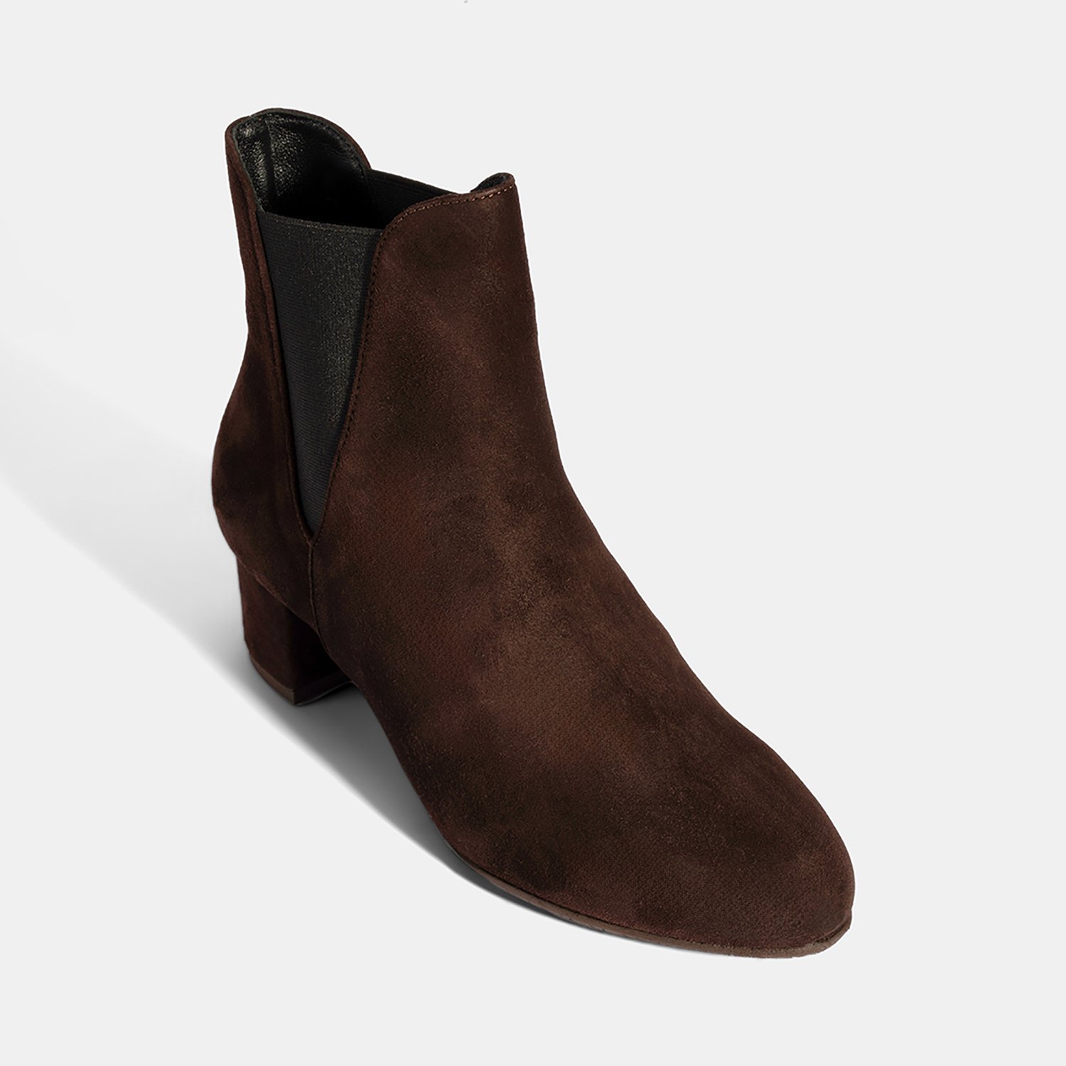 %100 süet deri, deri iç tabanlı, tekstil astarlı, lastik detaylı, TPU tabanlı, kadın kalın topuklu comfort Chelsea bot. Topuk yüksekliği: 5,5 cm.