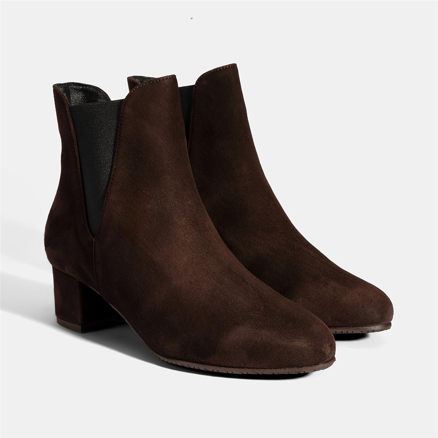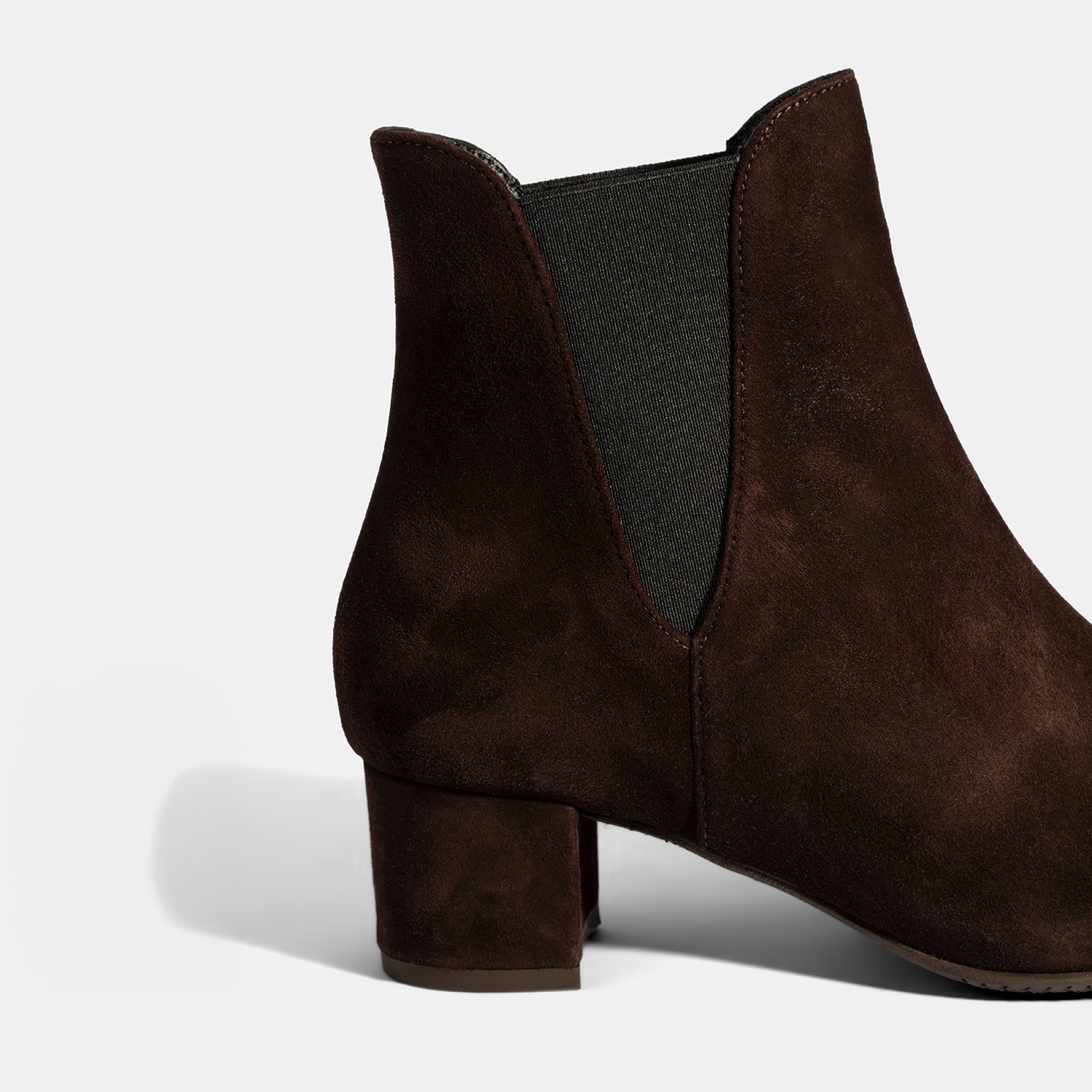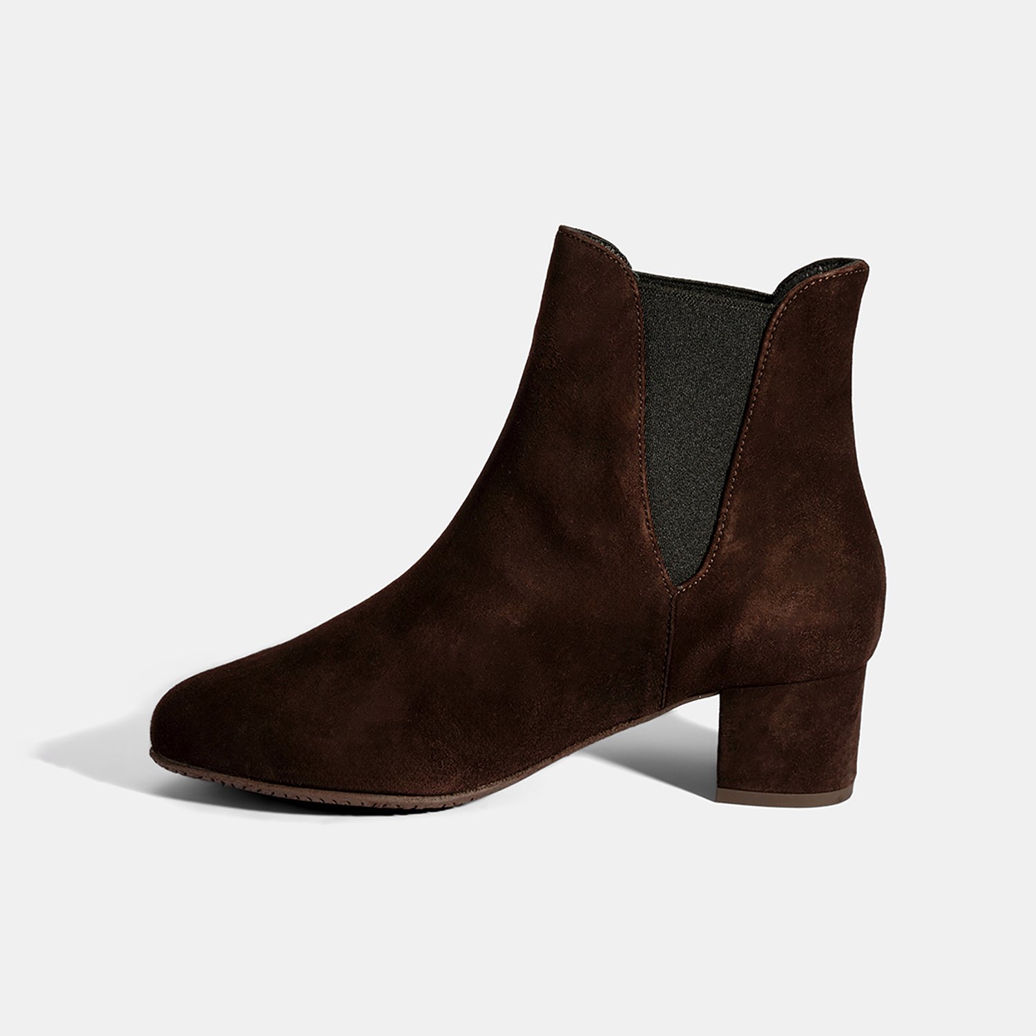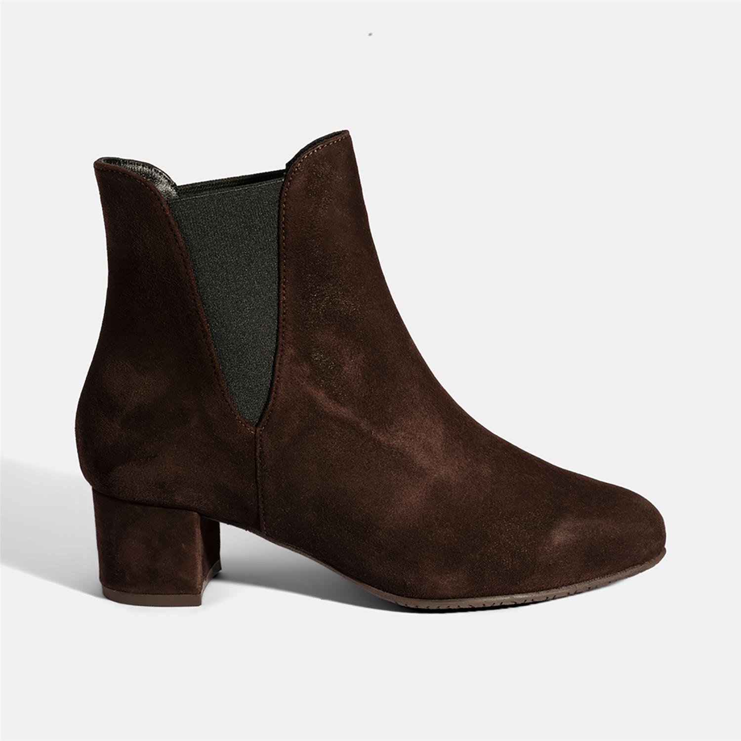 %100 süet deri, deri iç tabanlı, tekstil astarlı, lastik detaylı, TPU tabanlı, kadın kalın topuklu comfort Chelsea bot. Topuk yüksekliği: 5,5 cm.