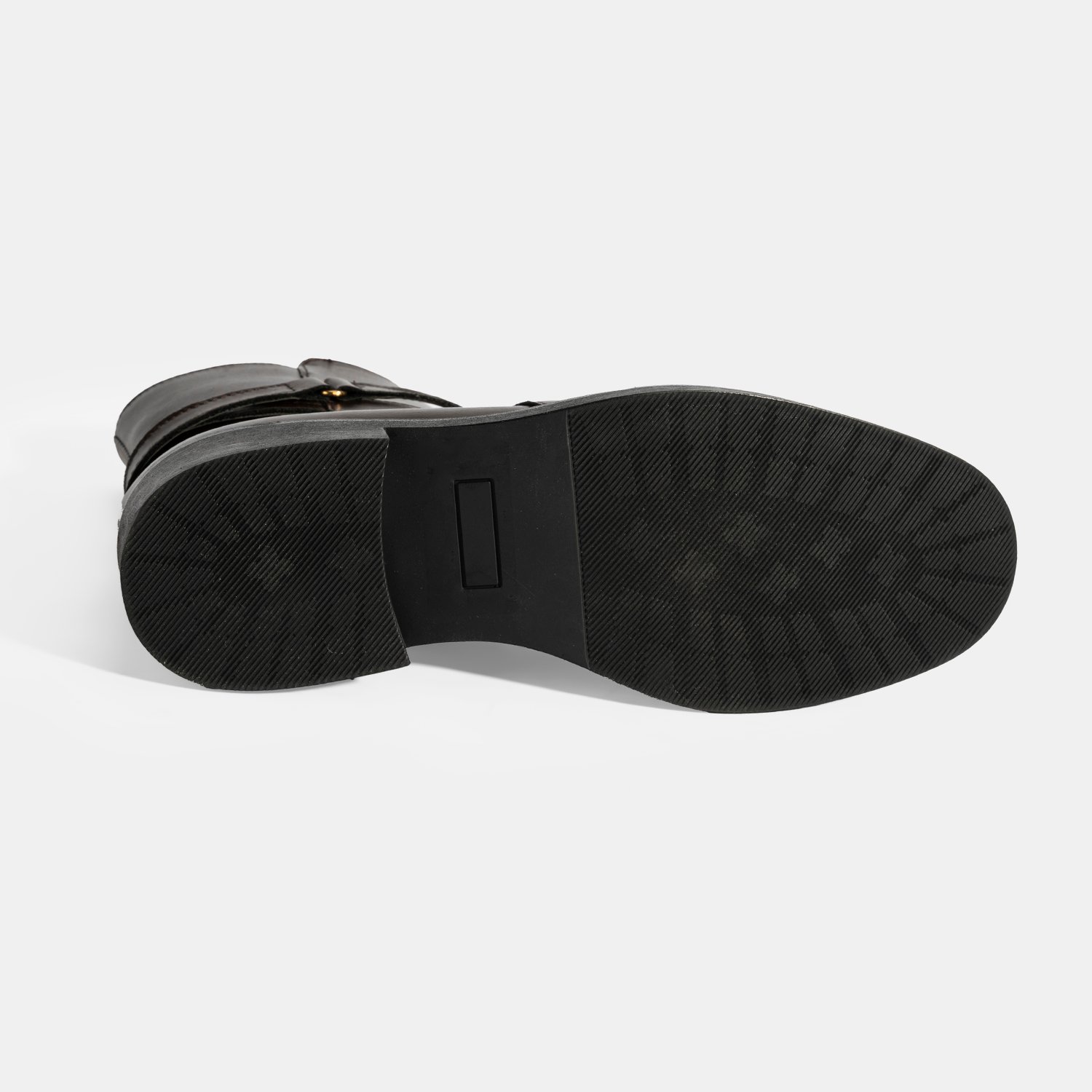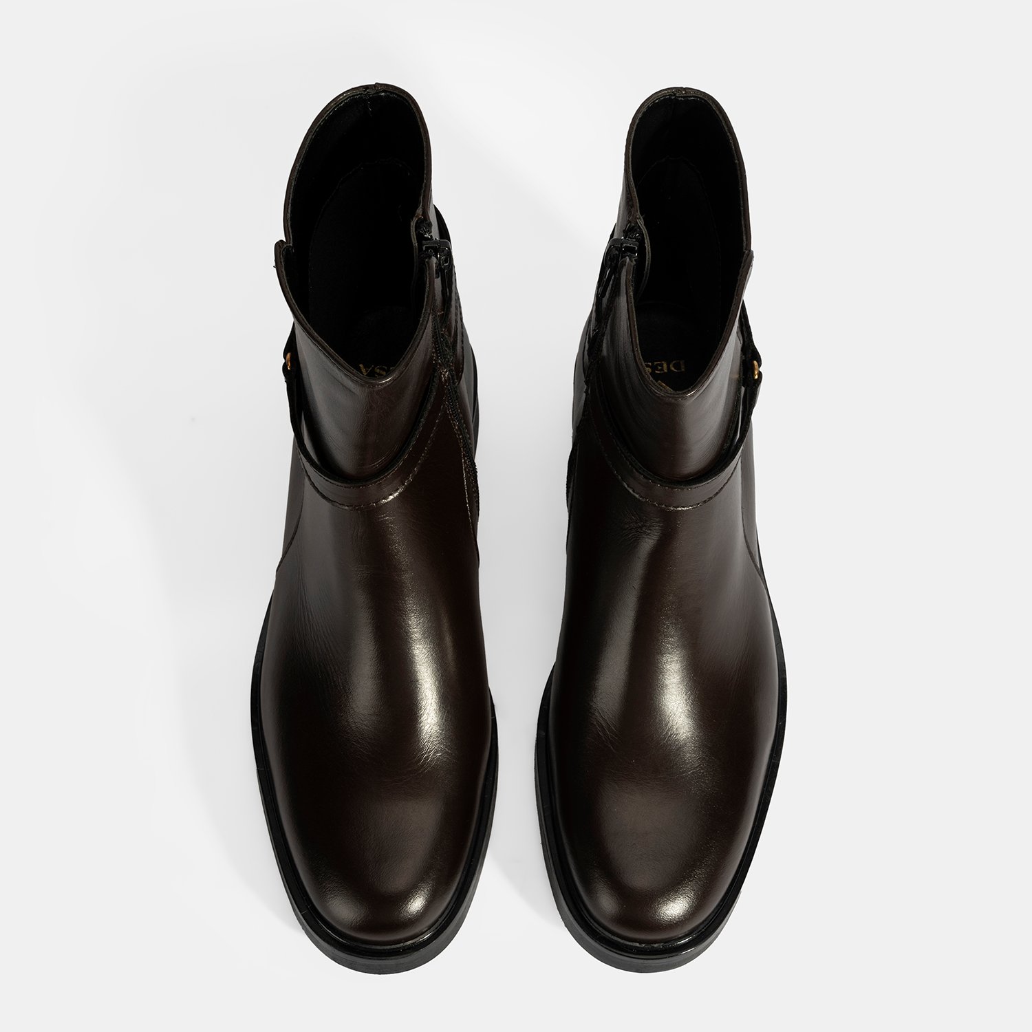Kadın Kahve Metal Toka Detaylı Fermuarlı Deri Bot