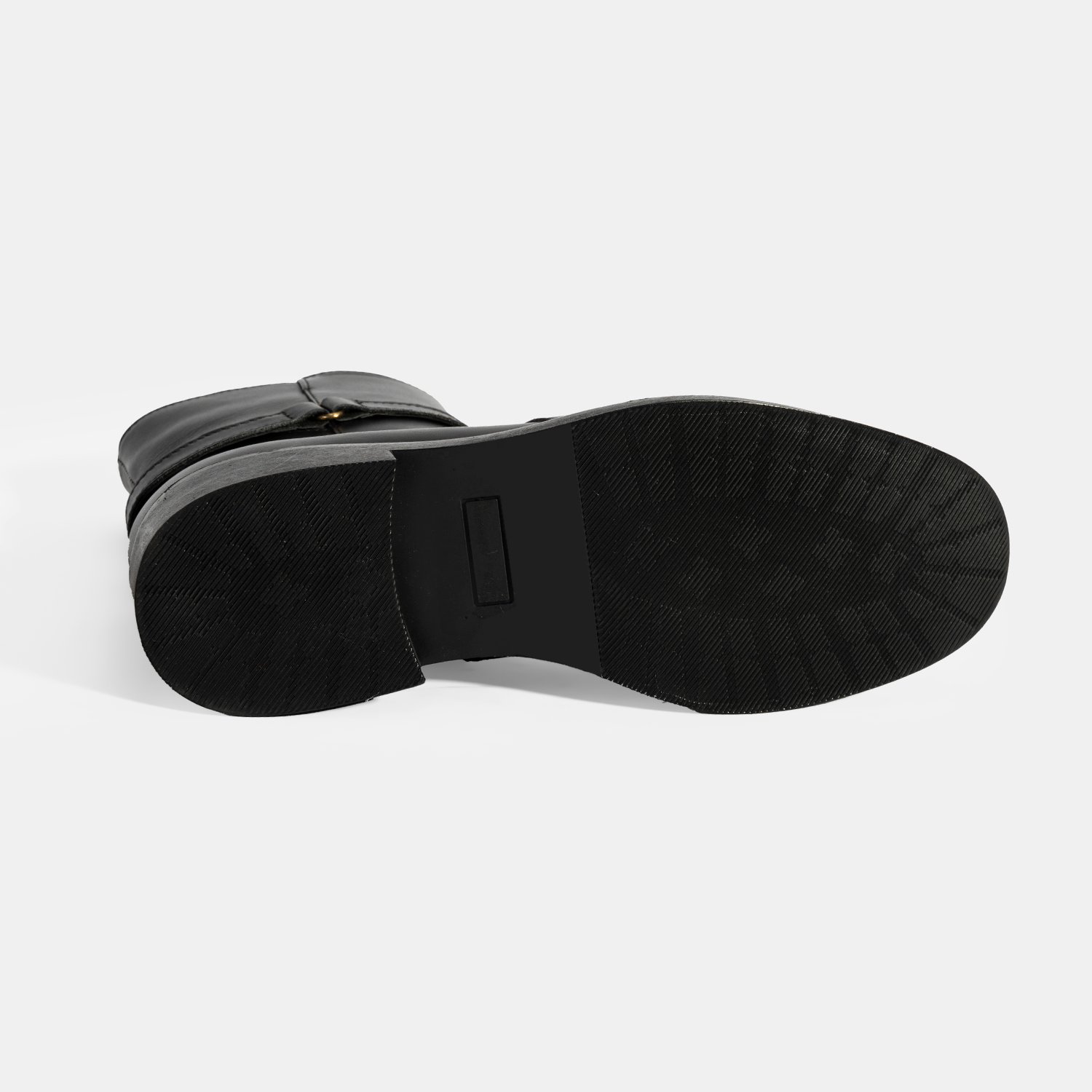 Kadın Siyah Metal Toka Detaylı Fermuarlı Deri Bot