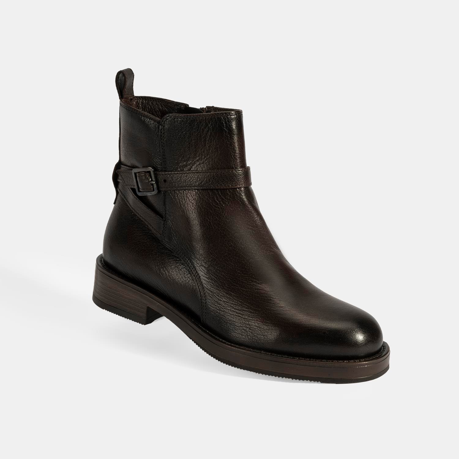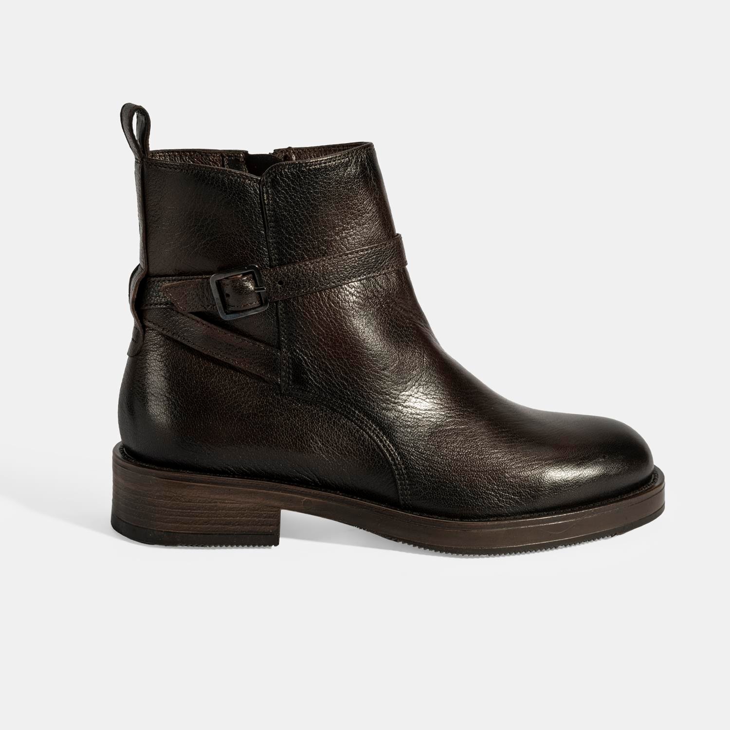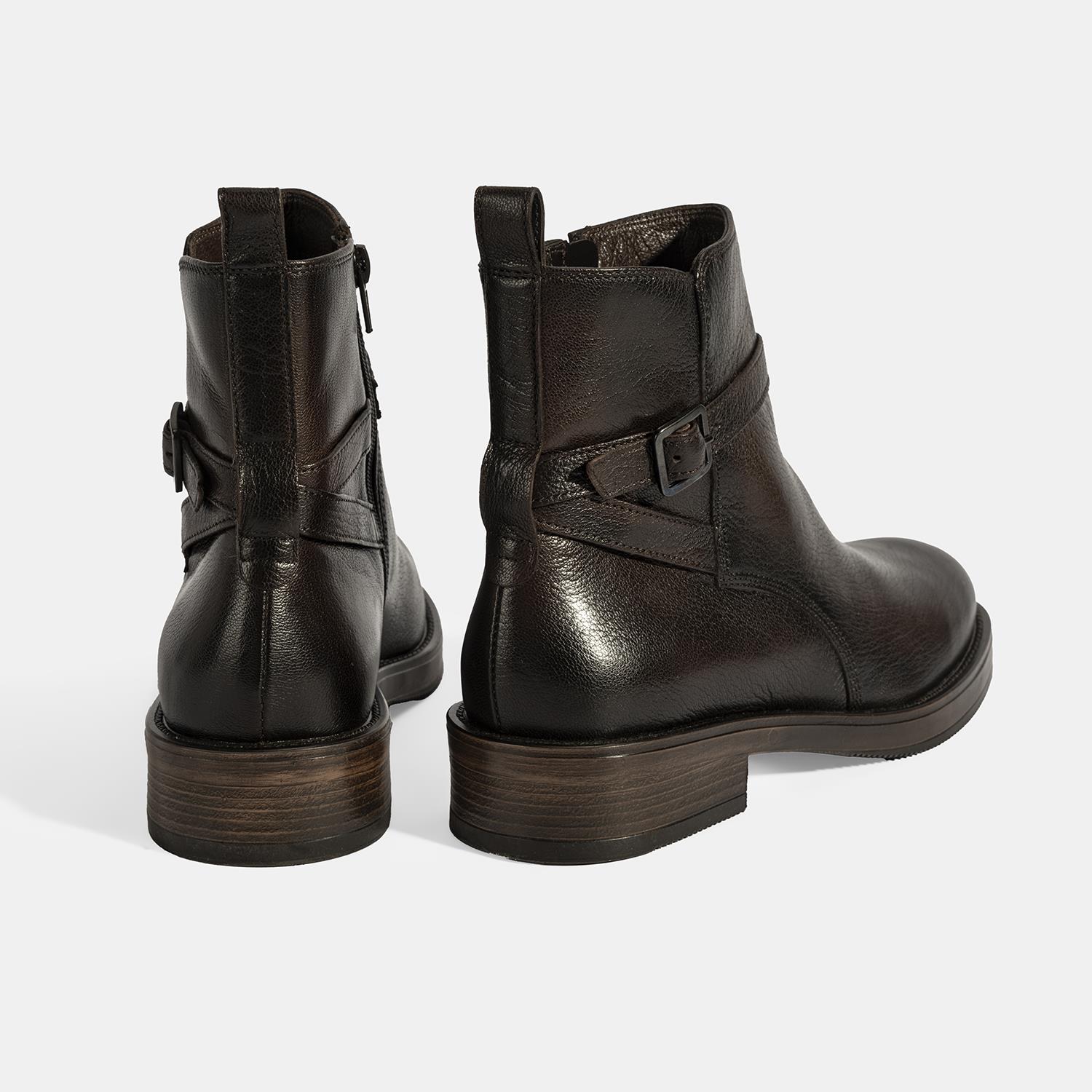 Kadın Kahve Ayarlanabilir Tokalı Deri Bot