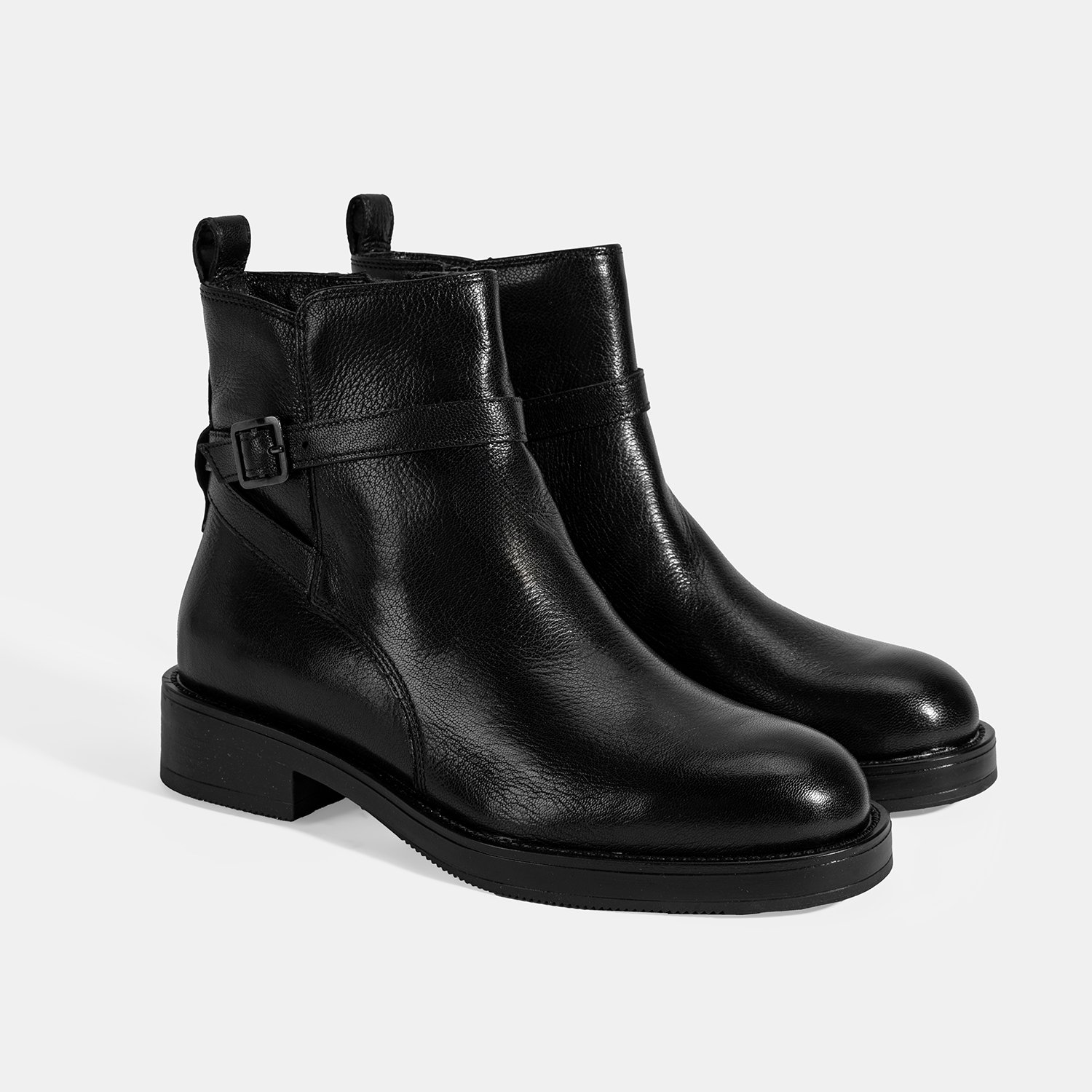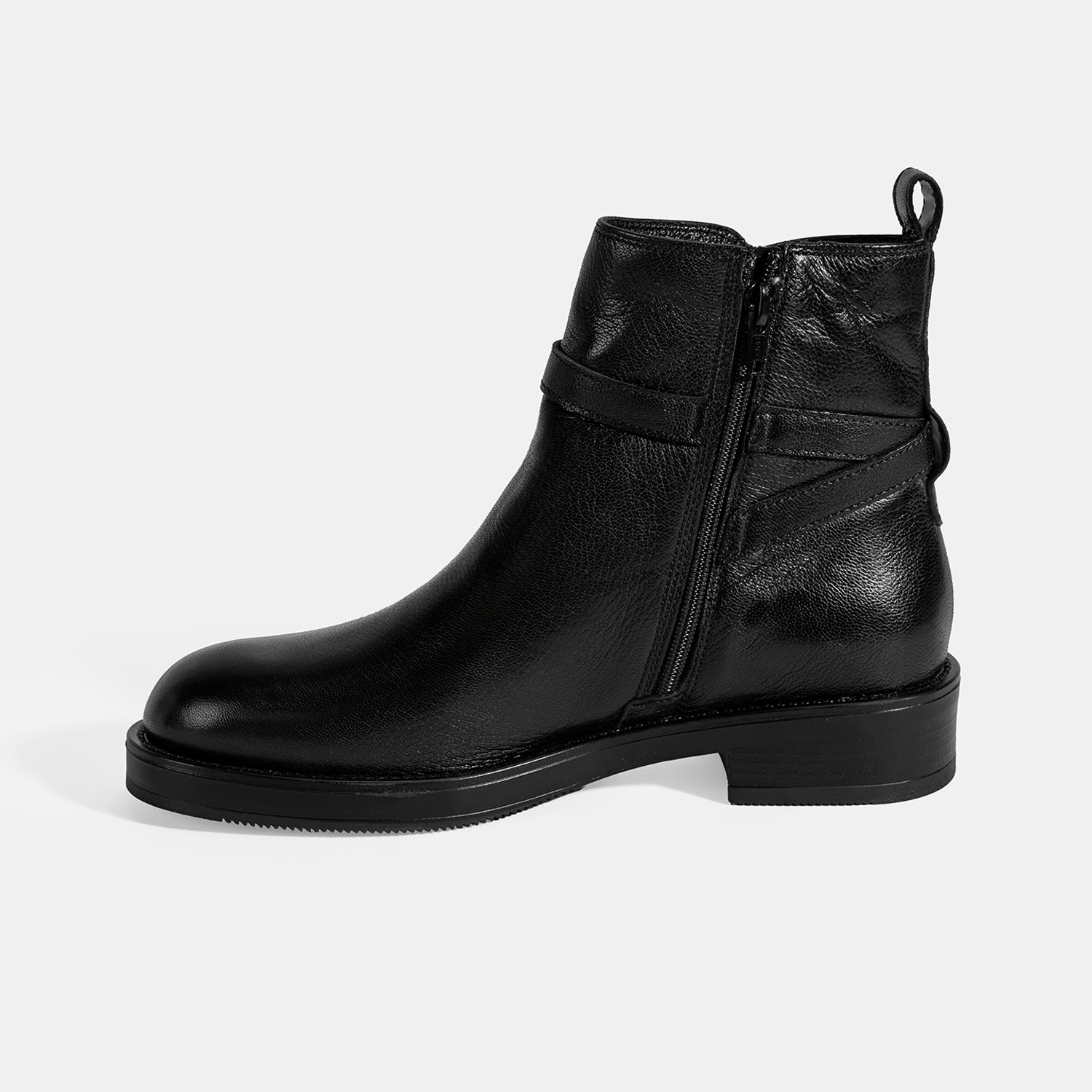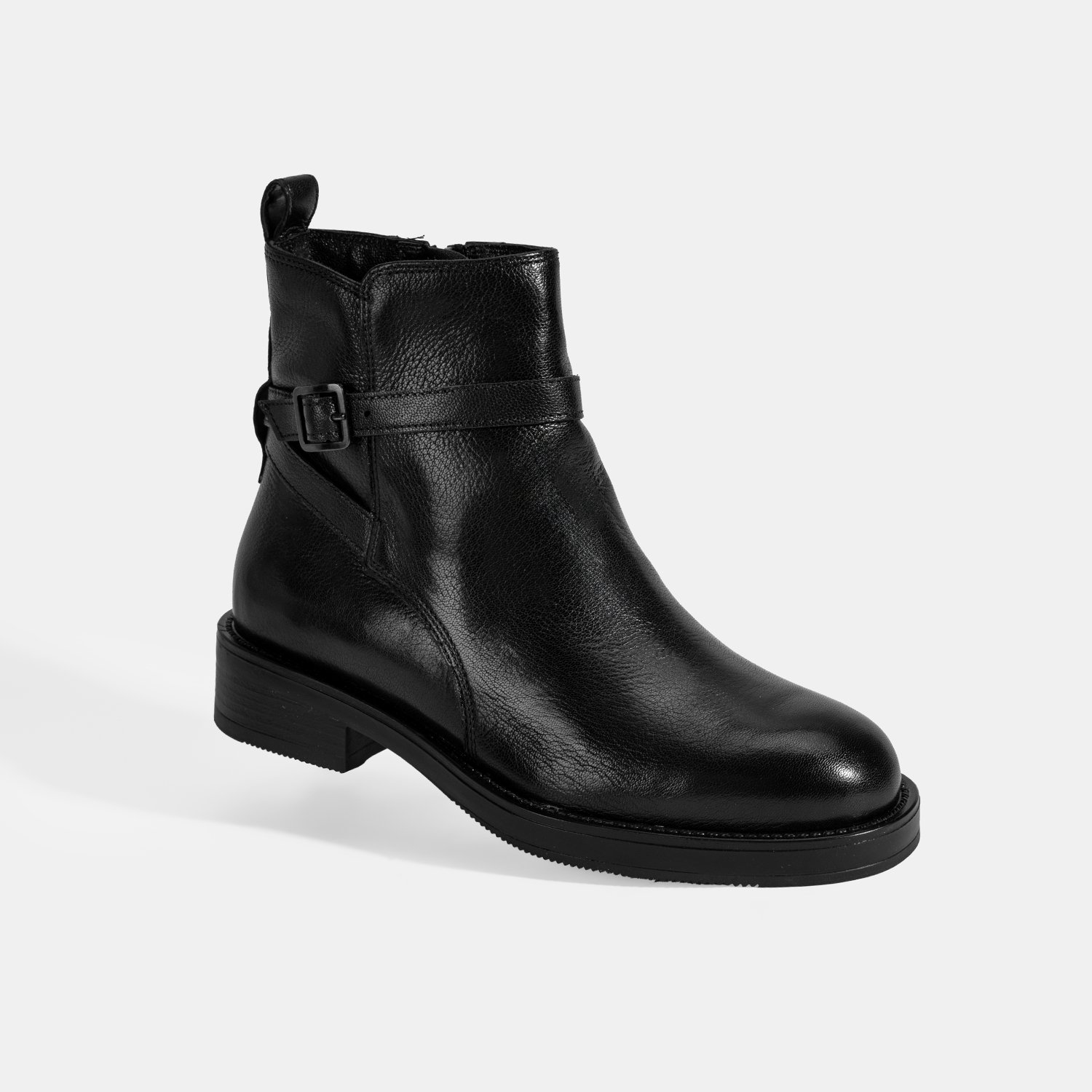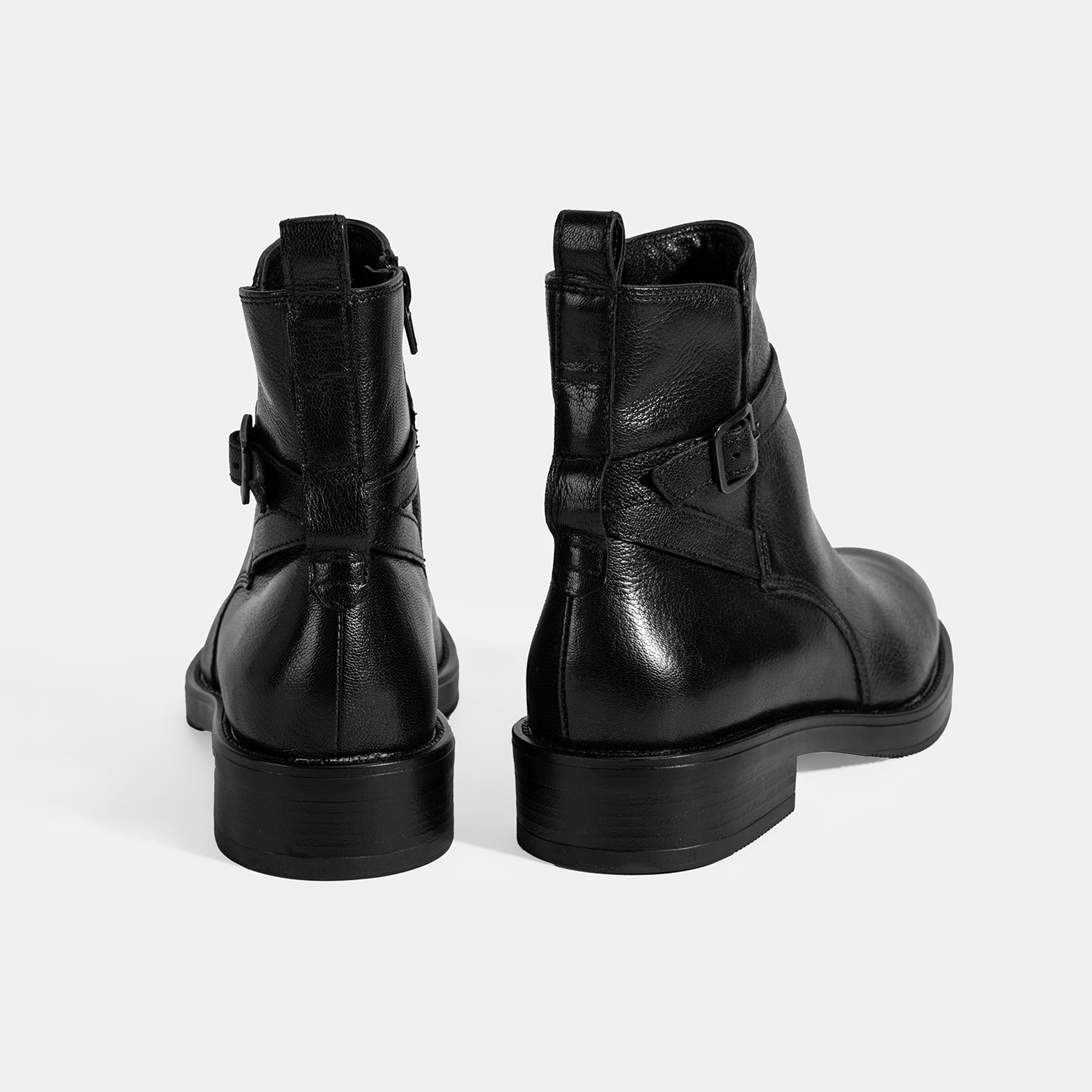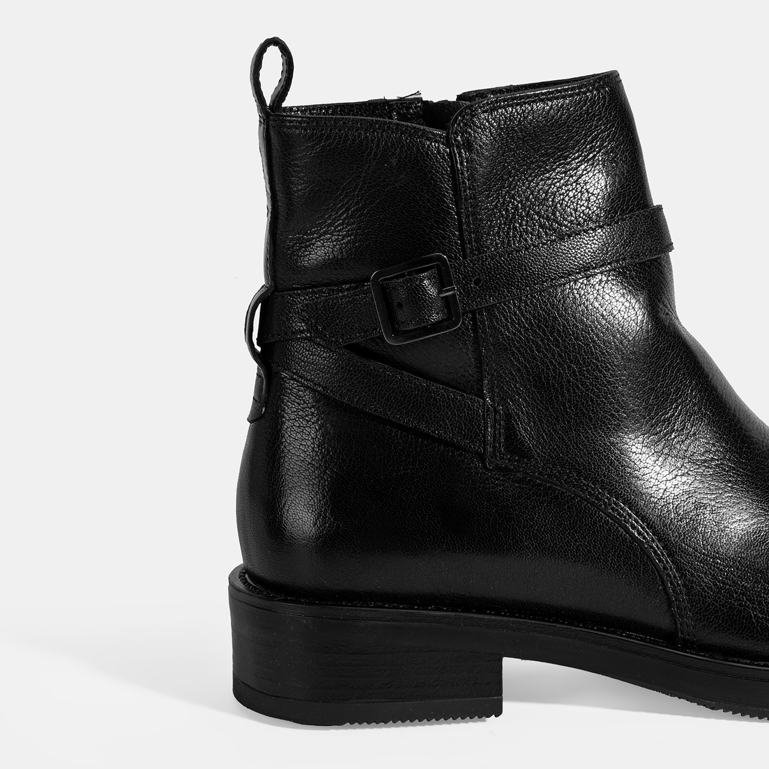 Kadın Siyah Ayarlanabilir Tokalı Deri Bot