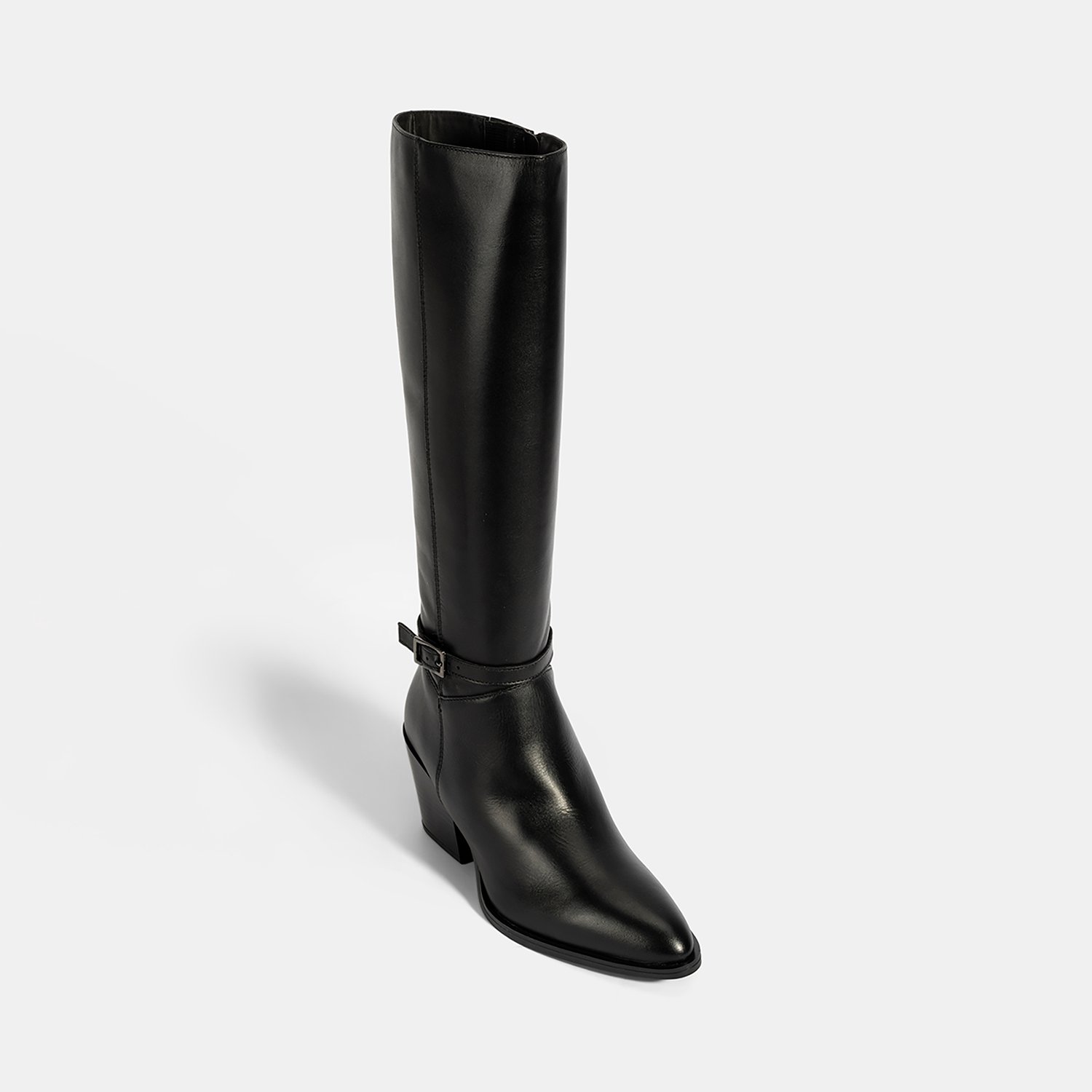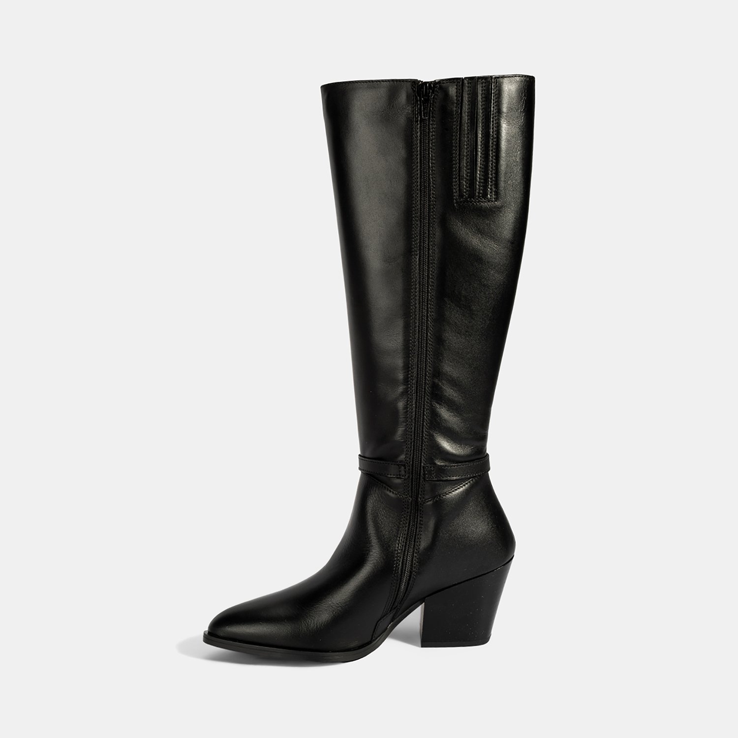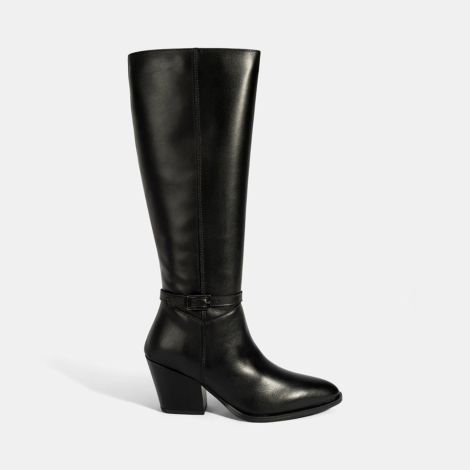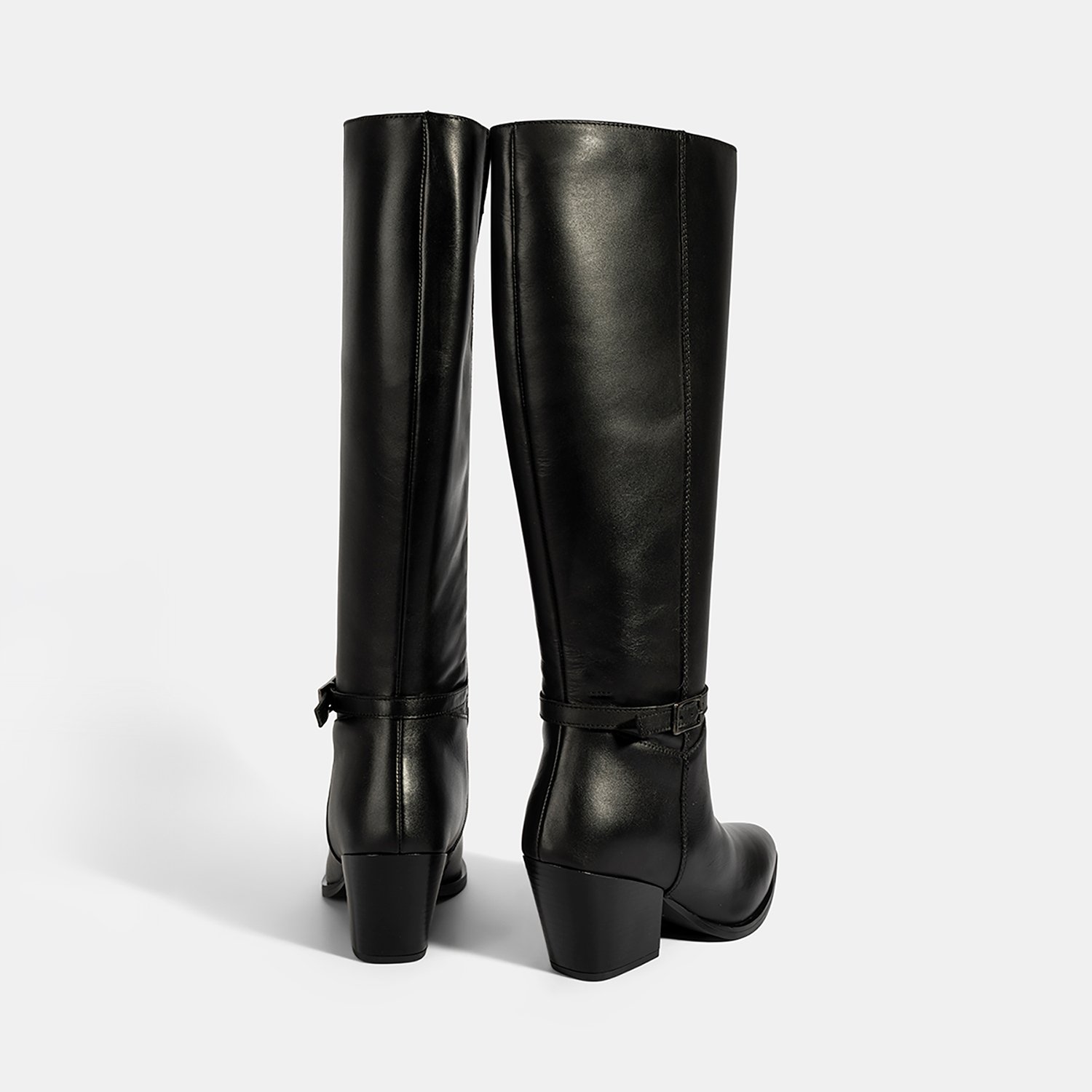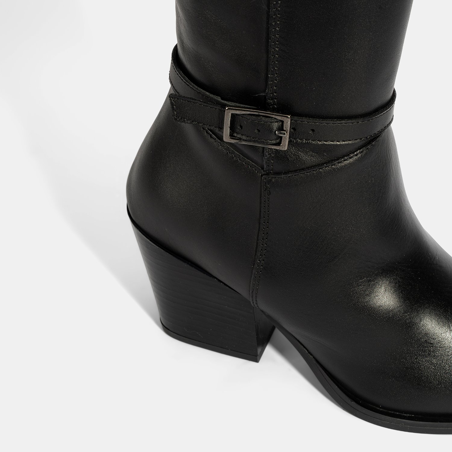 Kadın Siyah Kalın Topuklu Deri Çizme