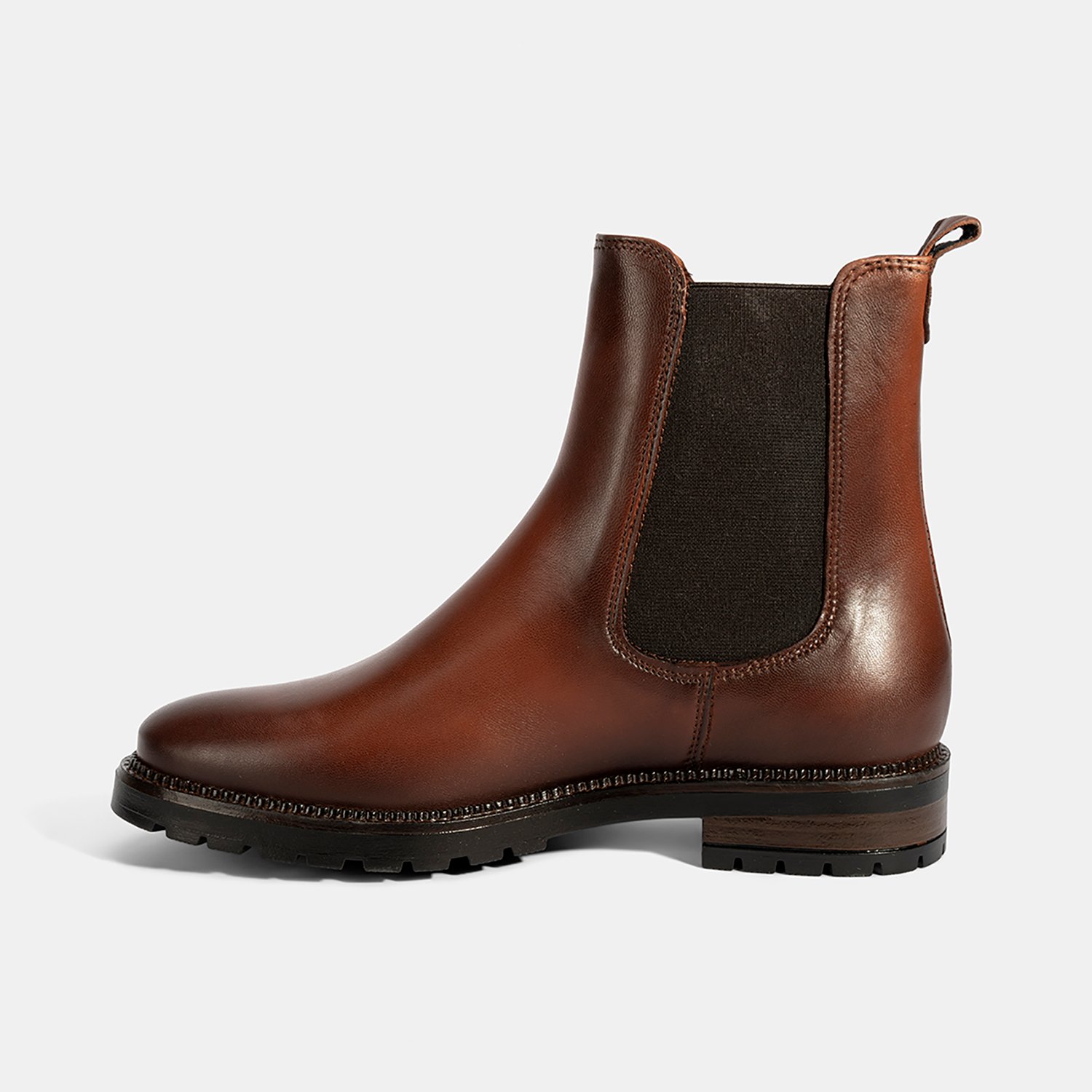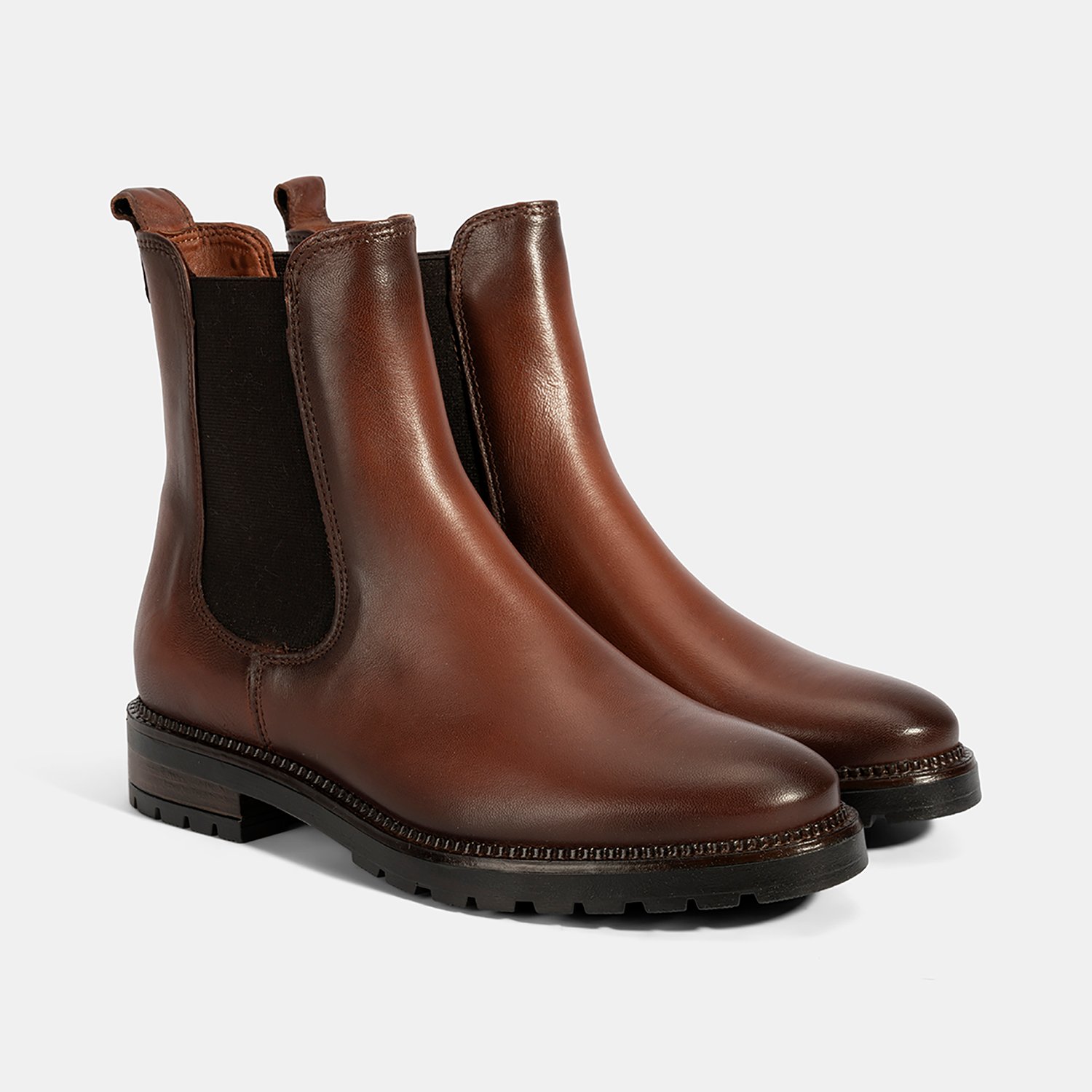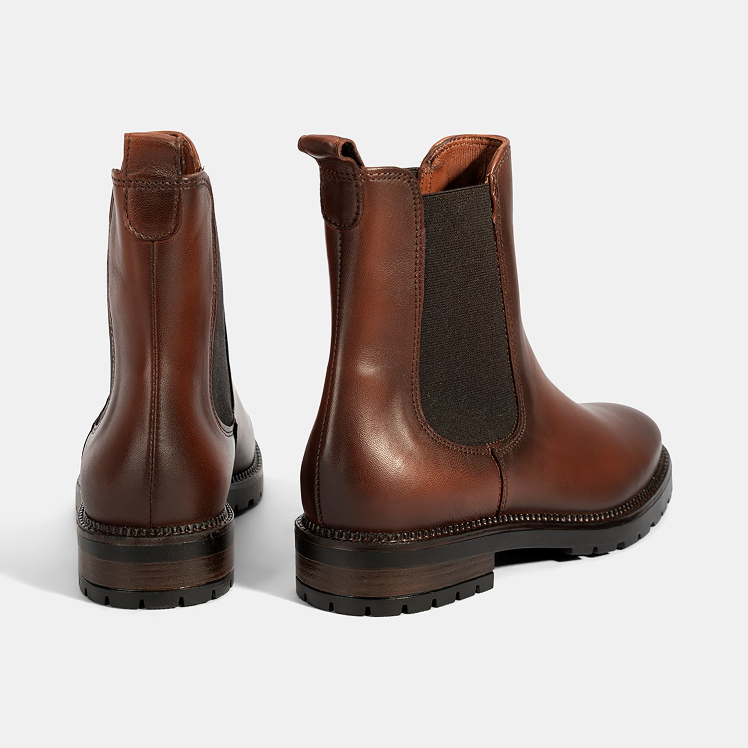 %100 deri, tekstil astar ve deri mostra, kauçuk tabanlı kadın bot.