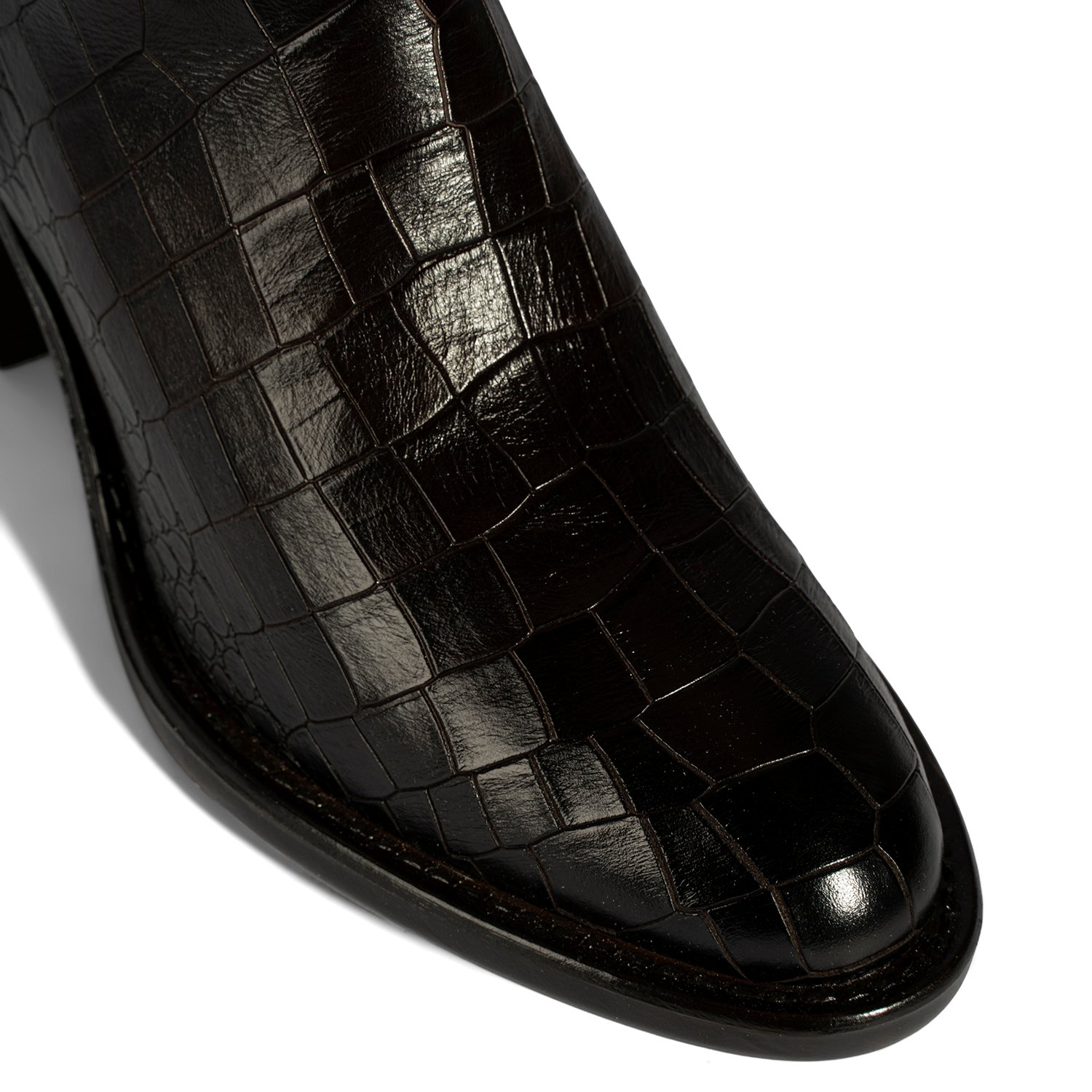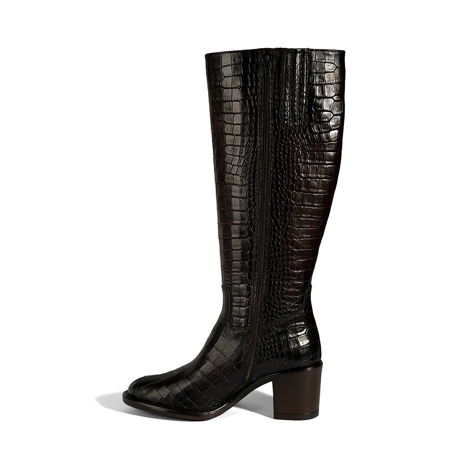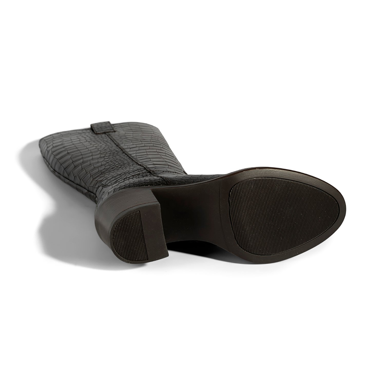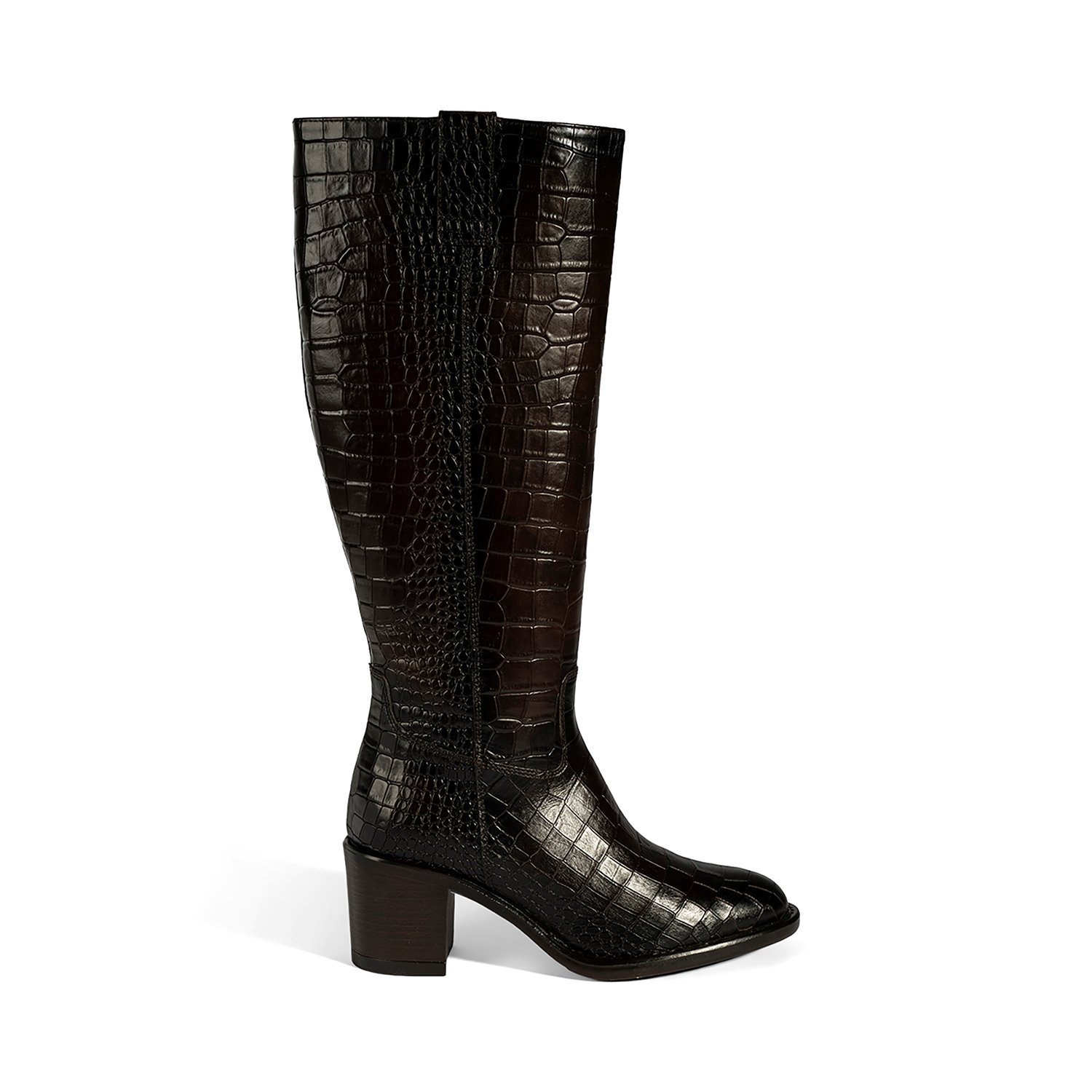 Kadın Kahve Kroko Baskılı Kalın Topuklu Deri Çizme