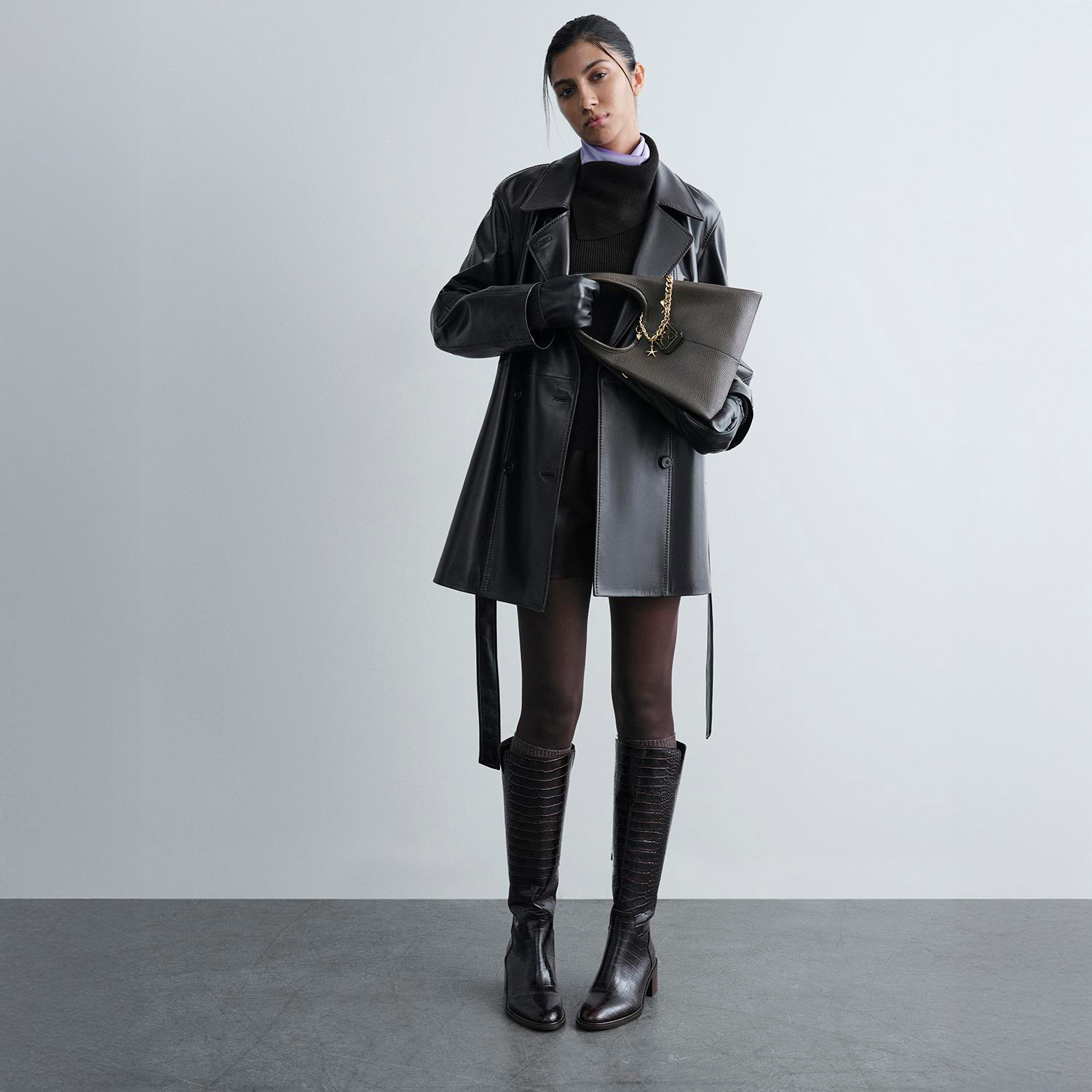 %100 deri, tekstil astar ve deri mostra, kauçuk tabanlı kadın çizme.