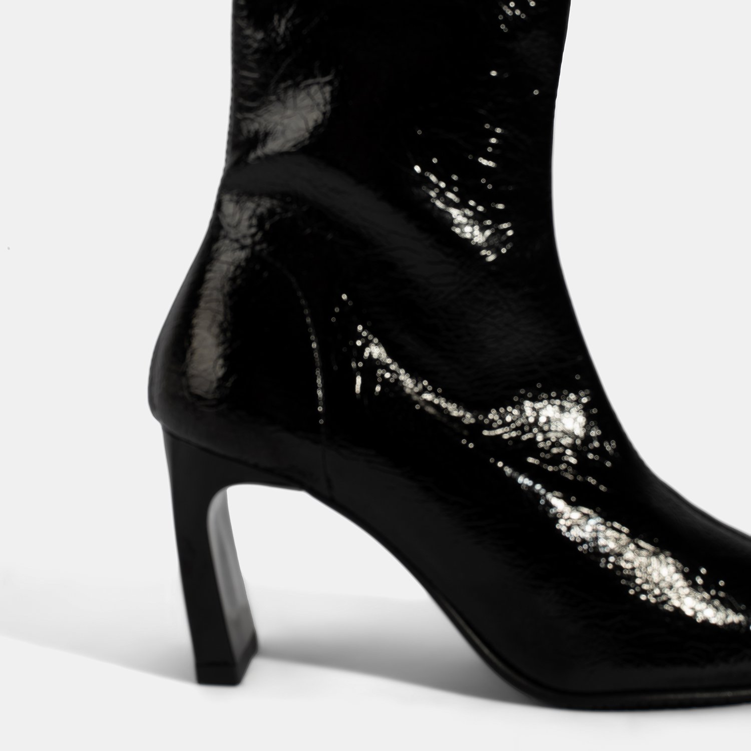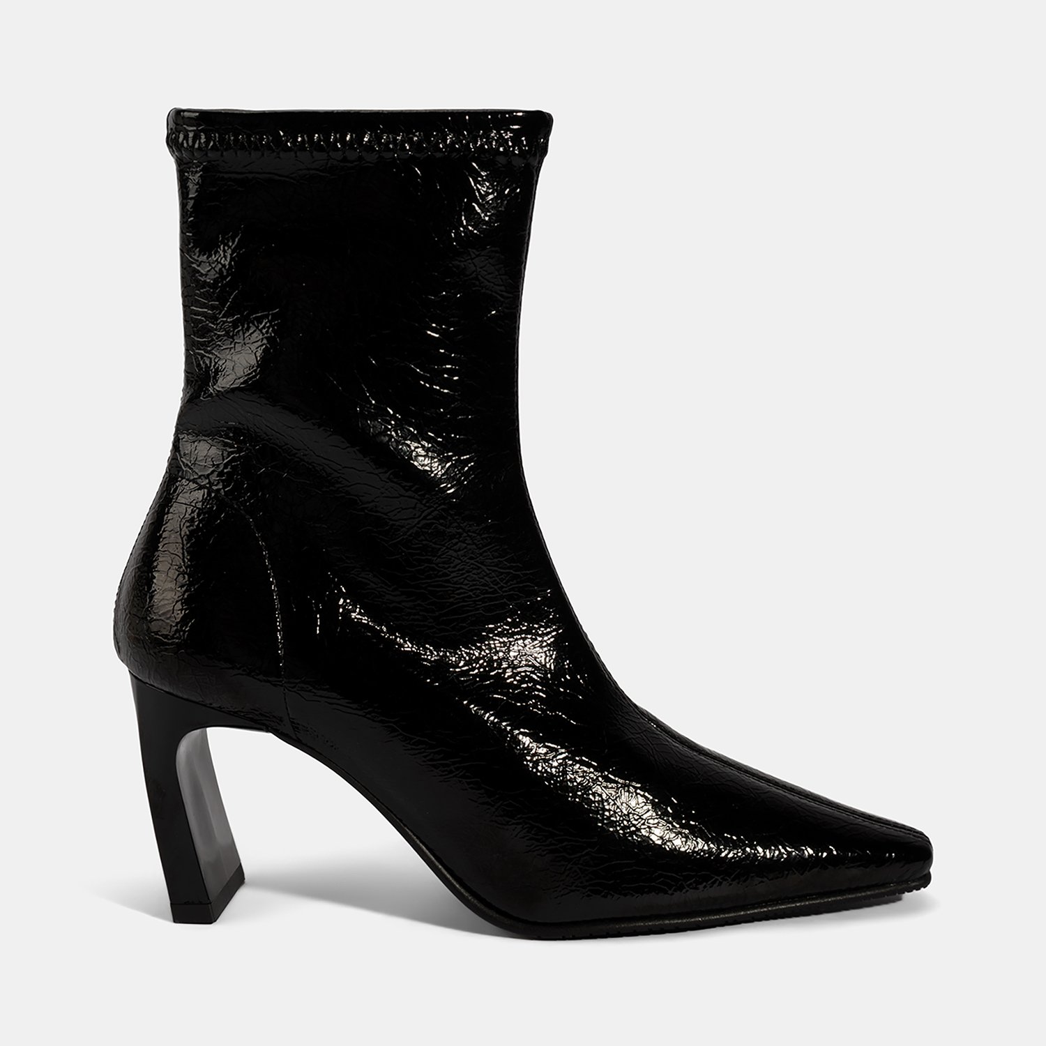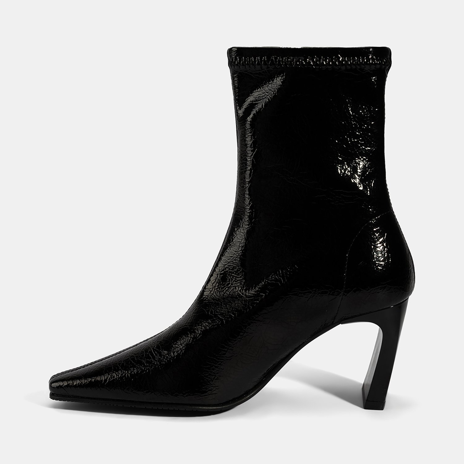 %100 PU rugan malzemeden üretilmiştir. Tekstil iç tabanlı, tekstil astarlı, TPU tabanlı, kadın topuklu stretch bot. Topuk yüksekliği: 7,5 cm.