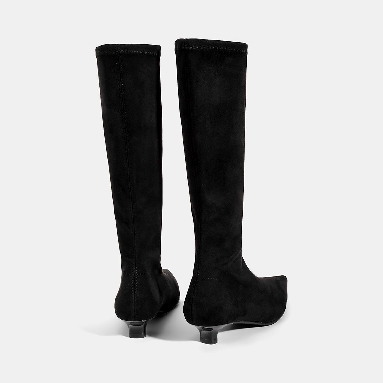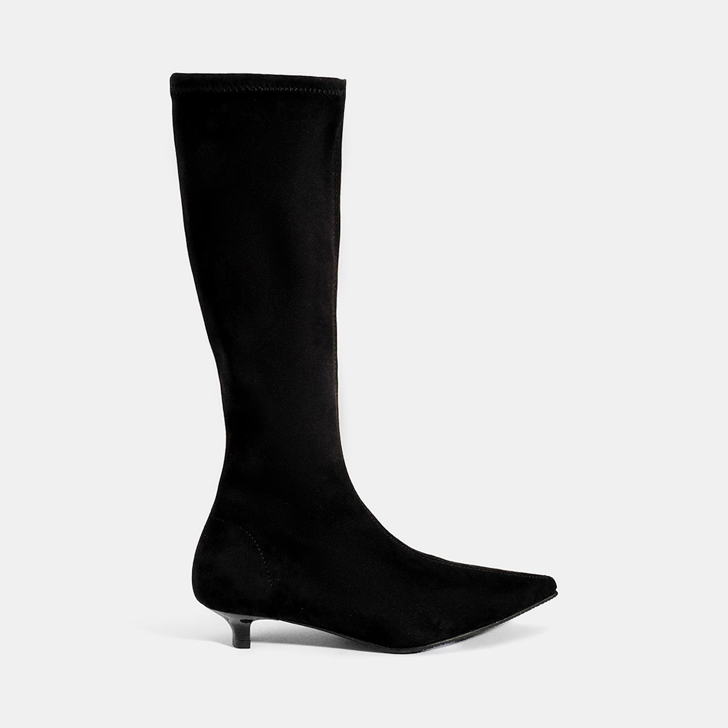%100 PU malzemeden üretilmiştir. Tekstil iç tabanlı, tekstil astarlı, TPU tabanlı, sivri burunlu, kadın ince topuklu stretch çizme. Topuk yüksekliği: 3 cm.