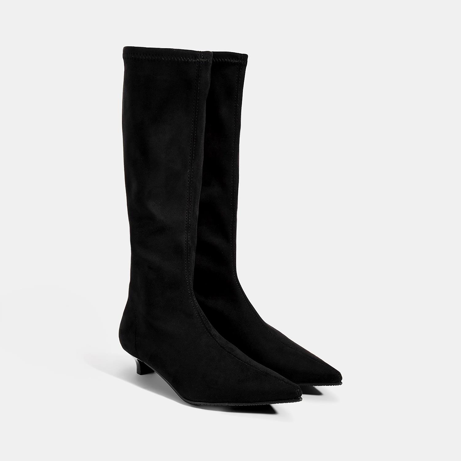 Kadın Siyah Sivri Burunlu Topuklu Stretch Çizme