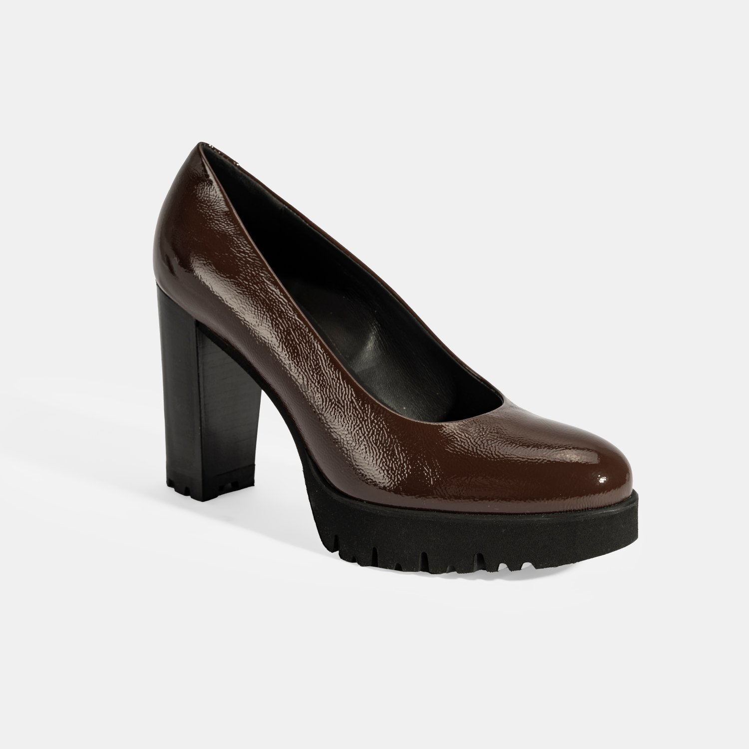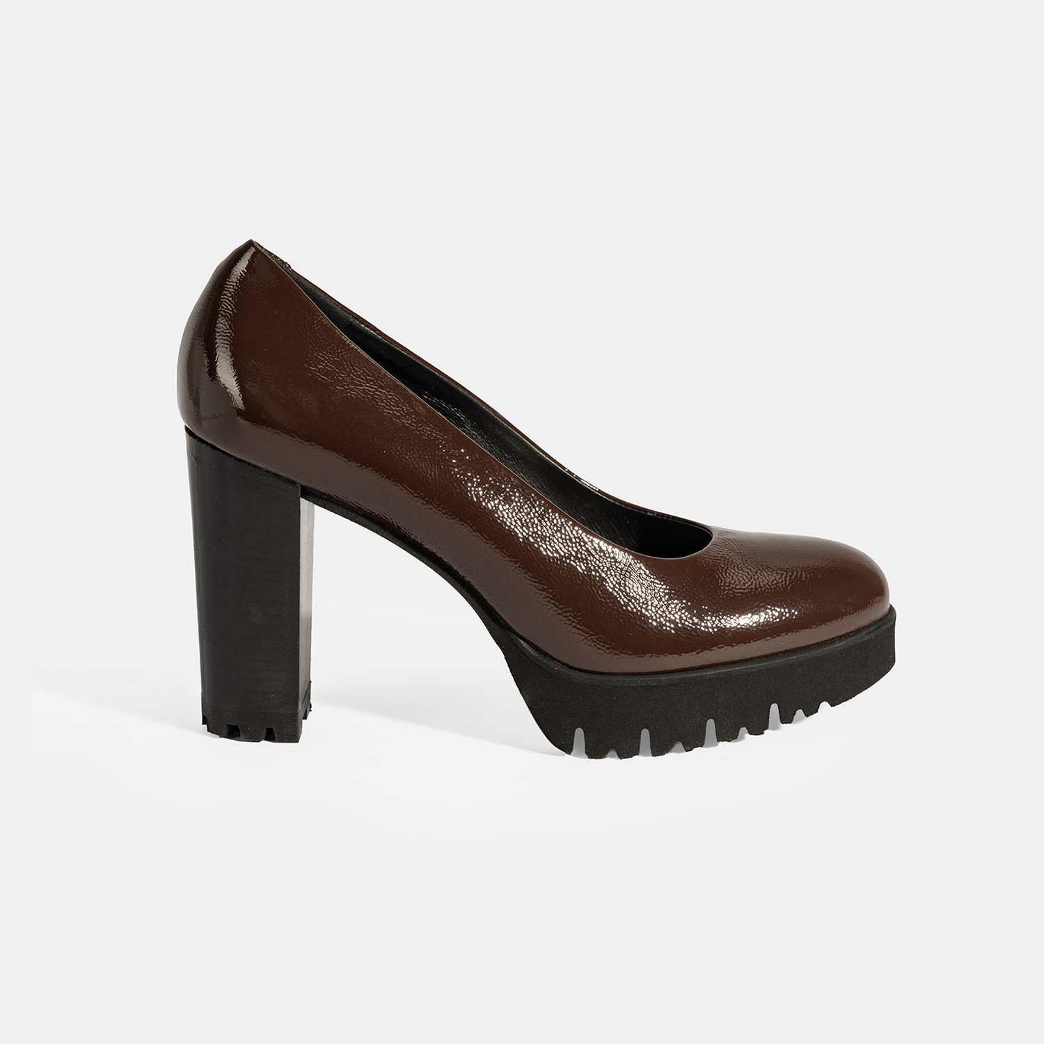 %100 rugan deri, deri iç tabanlı, deri astarlı, eva tabanlı, kadın platform topuklu klasik ayakkabı. Topuk yüksekliği 10 cm
