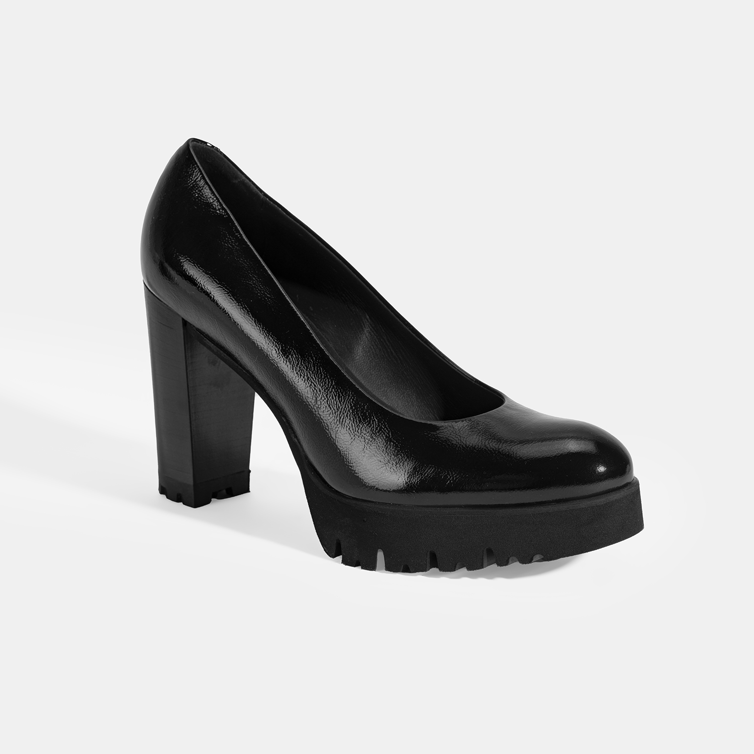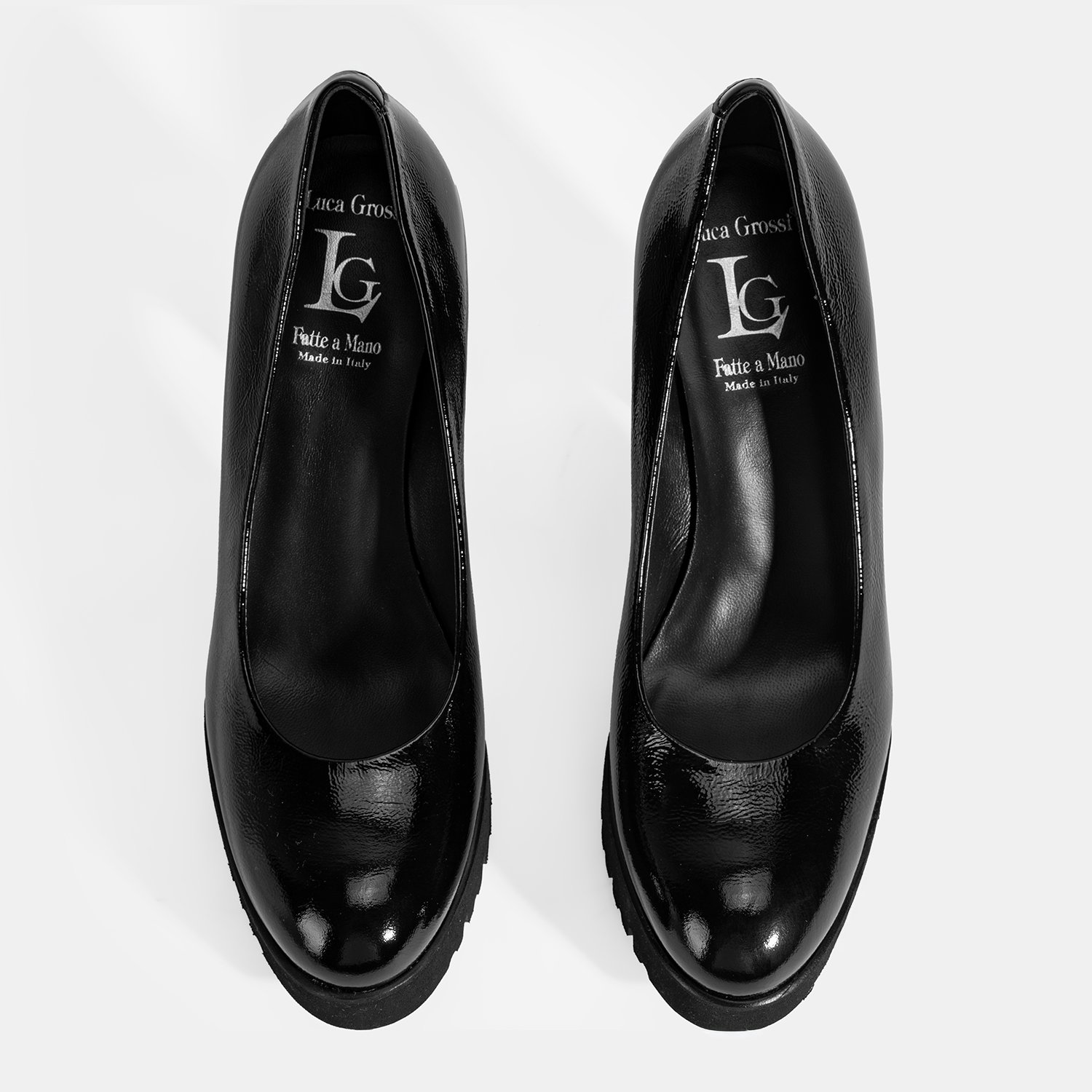 Luca Grossi Kadın Siyah Platform Topuklu Rugan Ayakkabı