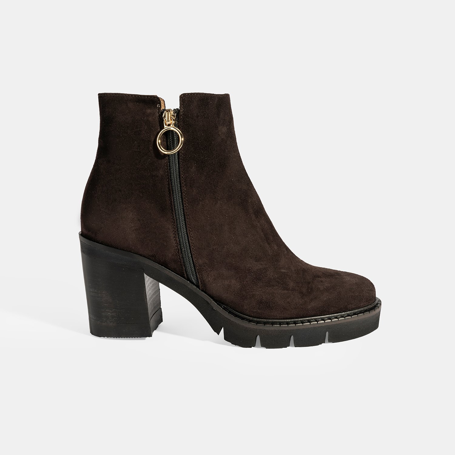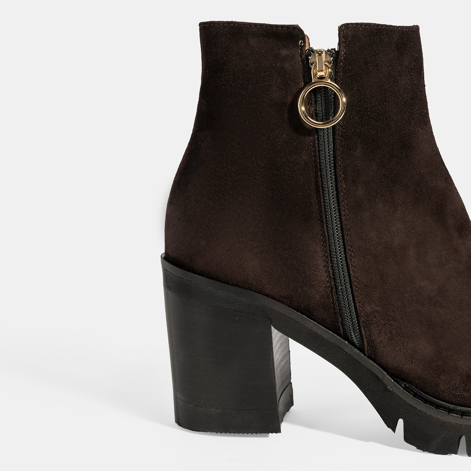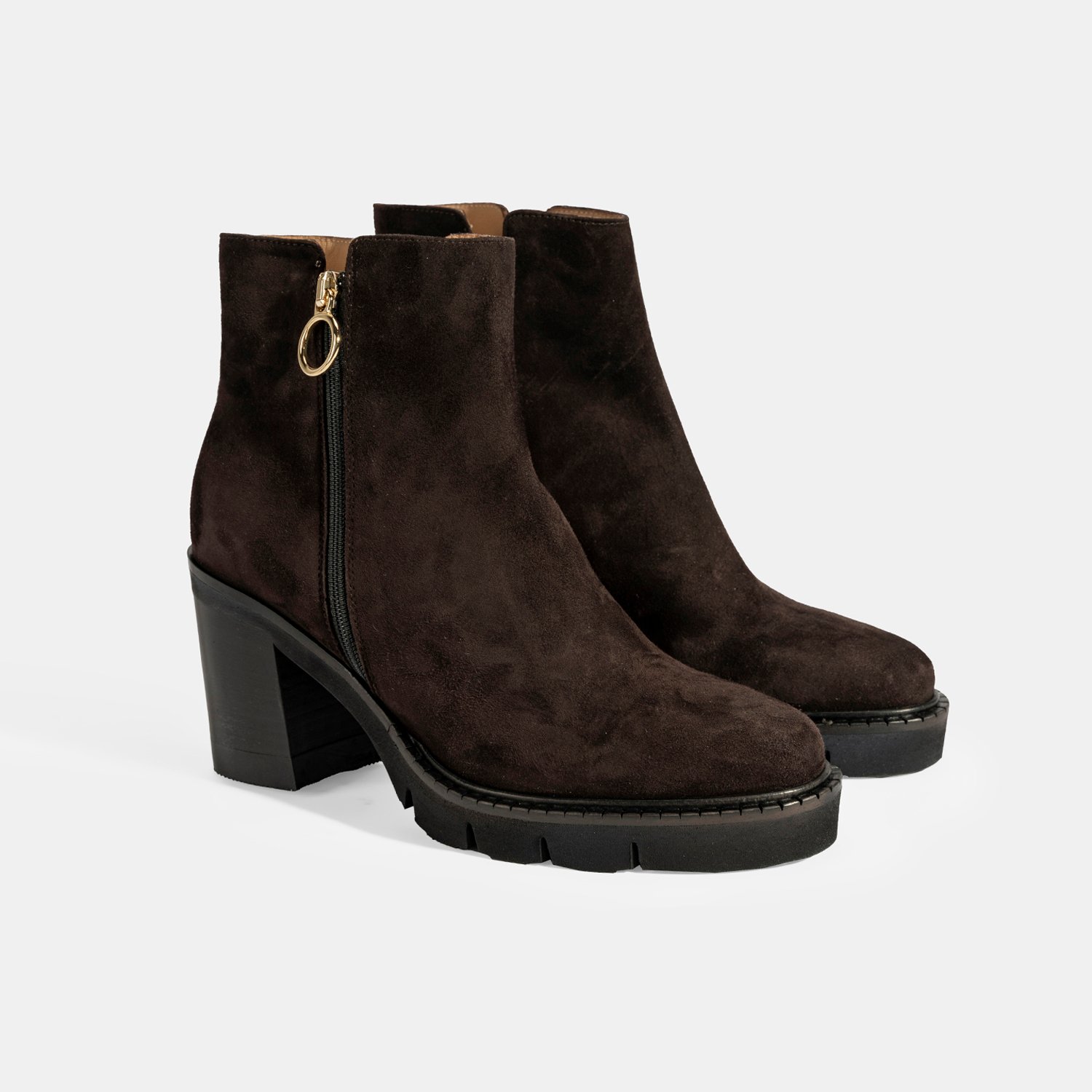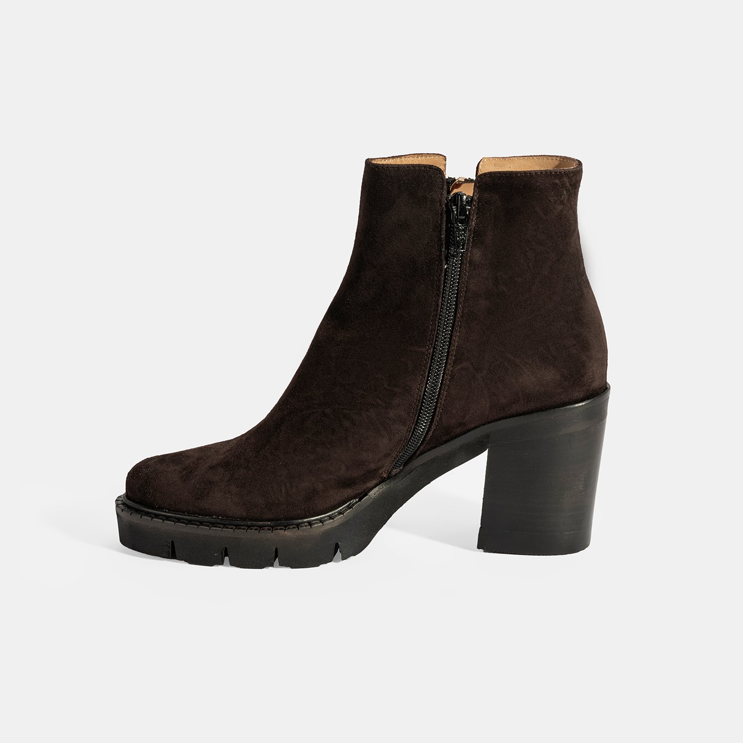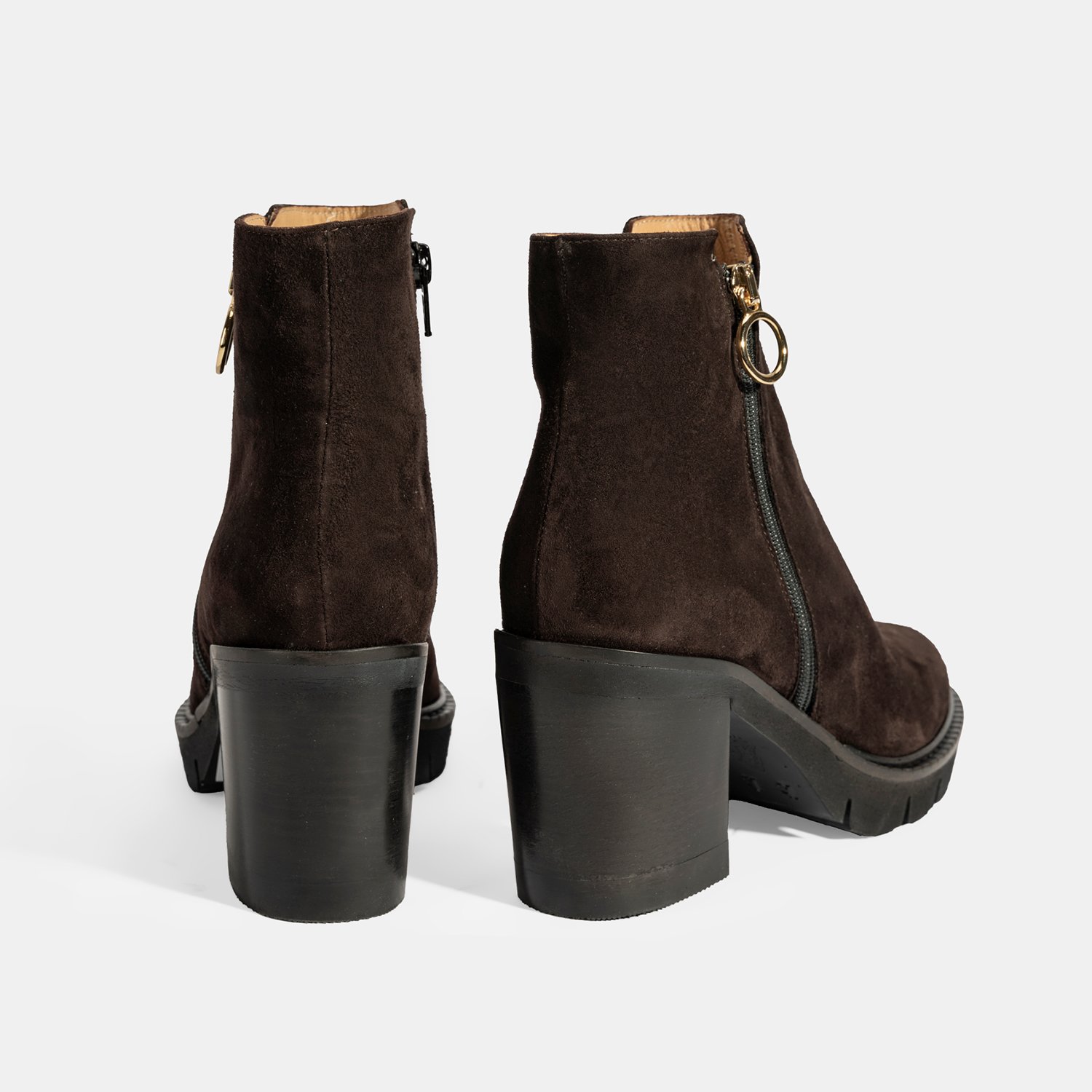 %100 süet deri, deri iç tabanlı, deri astarlı, fermuar detaylı, EVA tabanlı, kalın topuklu kadın bot. Topuk yüksekliği: 8 cm.