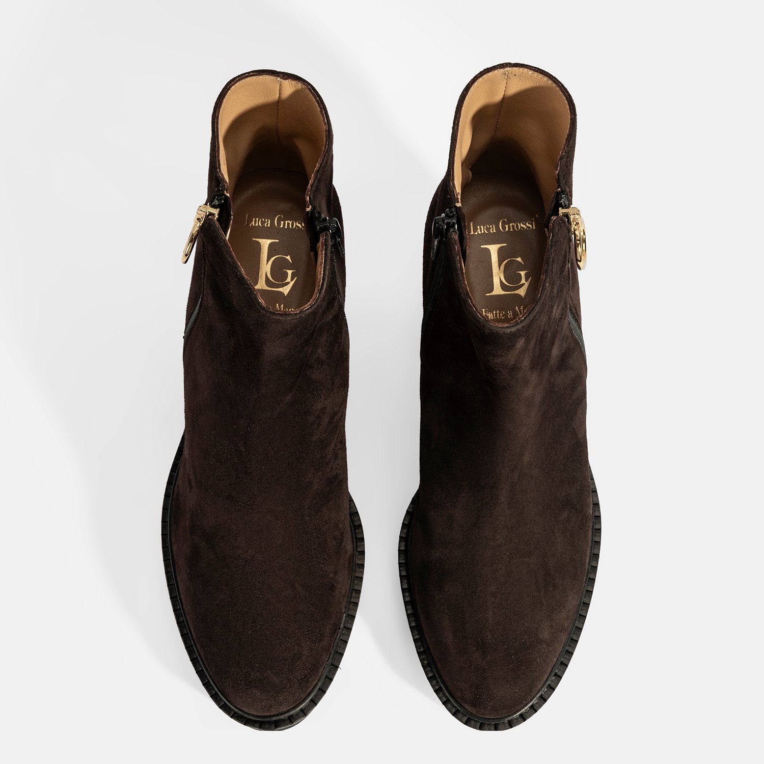Luca Grossi Kadın Kahve Fermuarlı Kalın Topuklu Süet Bot