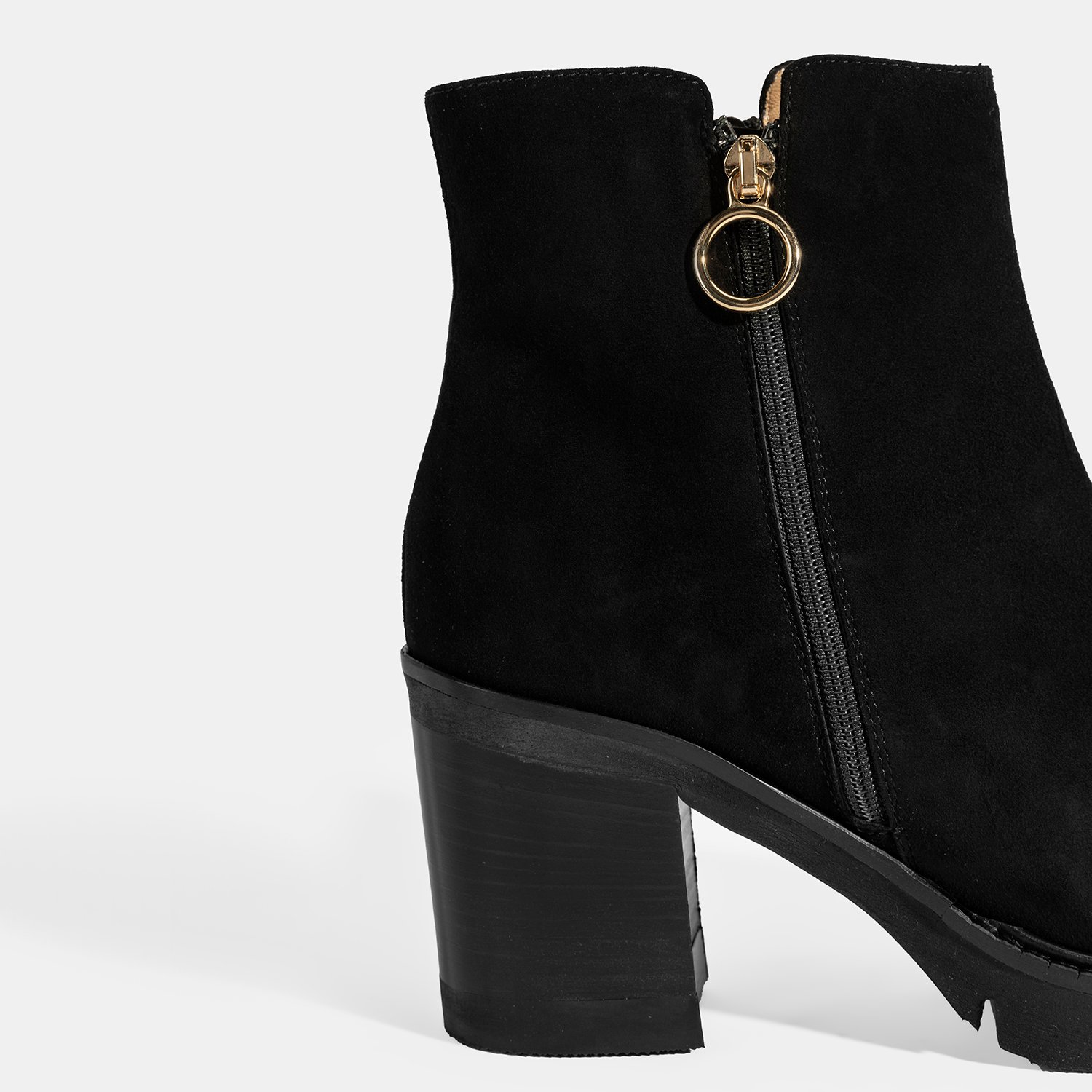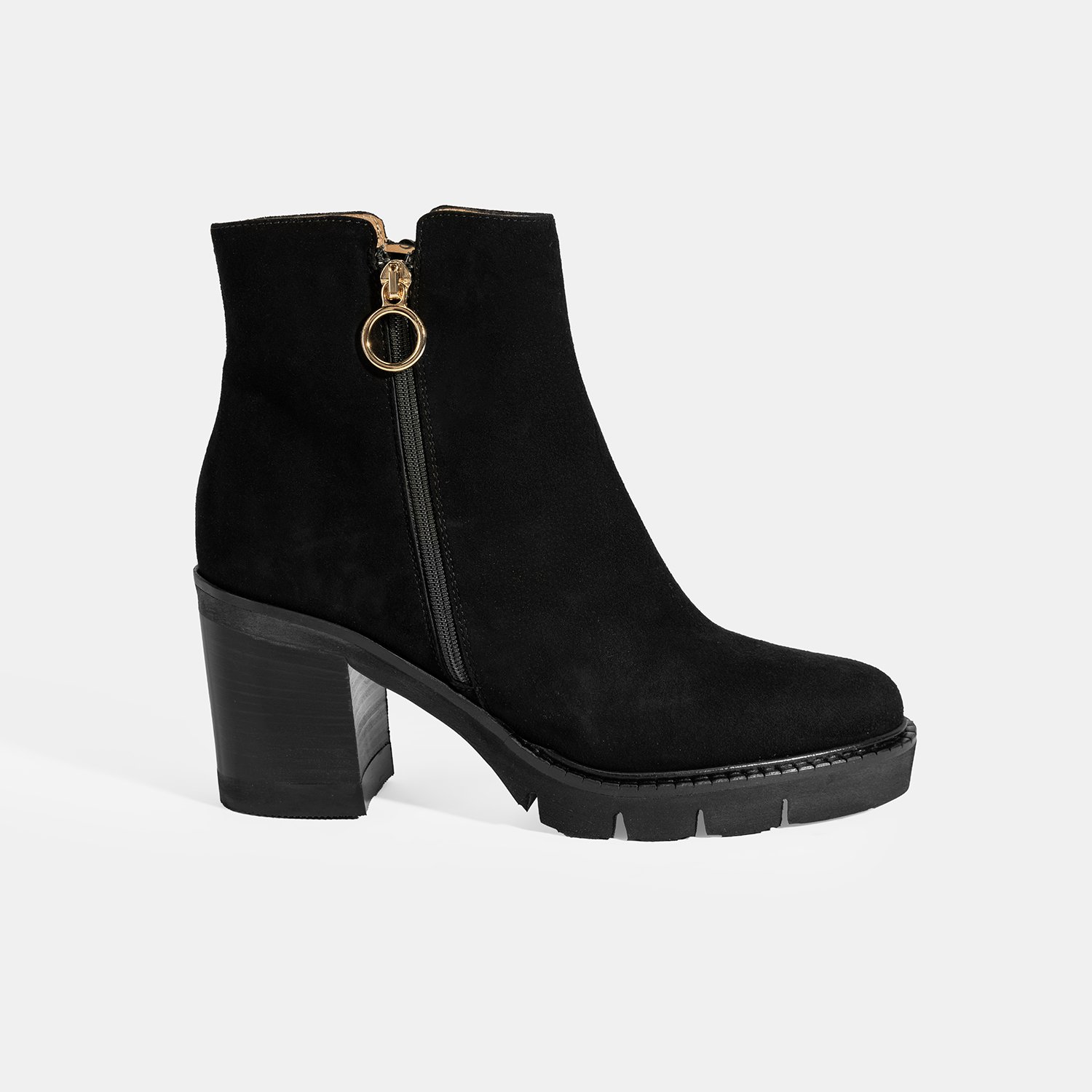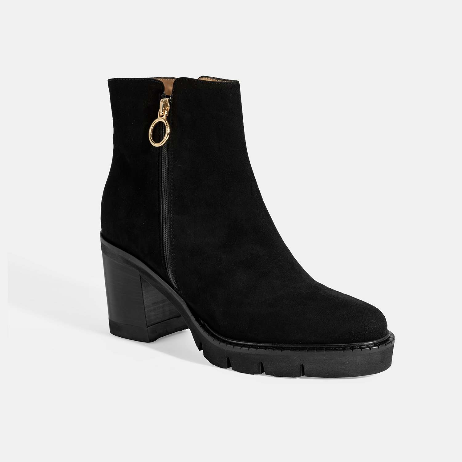 %100 süet deri, deri iç tabanlı, deri astarlı, fermuar detaylı, EVA tabanlı, kalın topuklu kadın bot. Topuk yüksekliği: 8 cm.