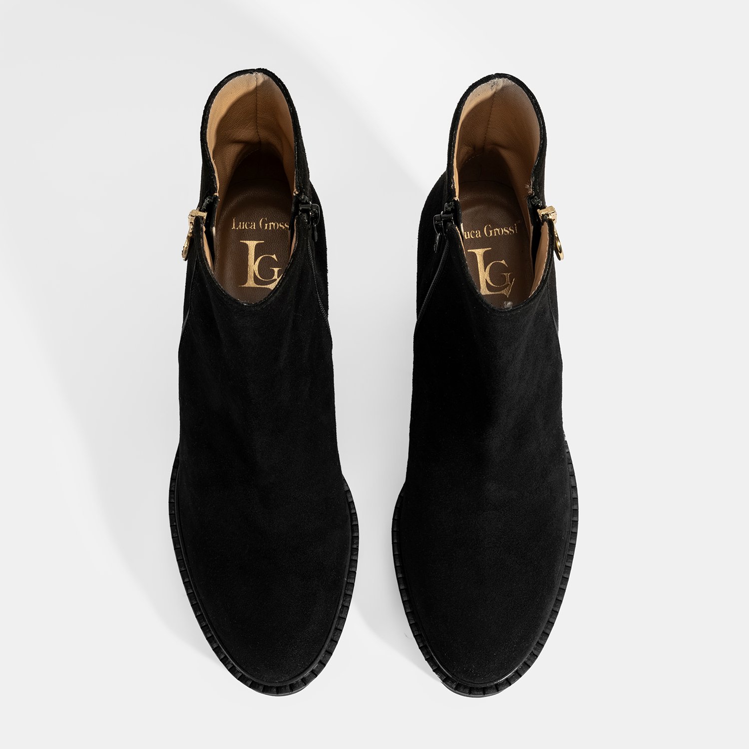 Luca Grossi Kadın Siyah Fermuarlı Kalın Topuklu Süet Bot
