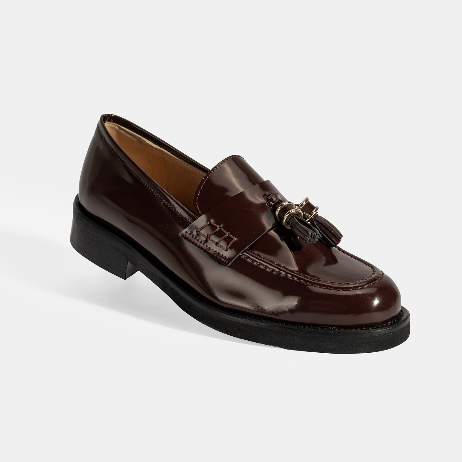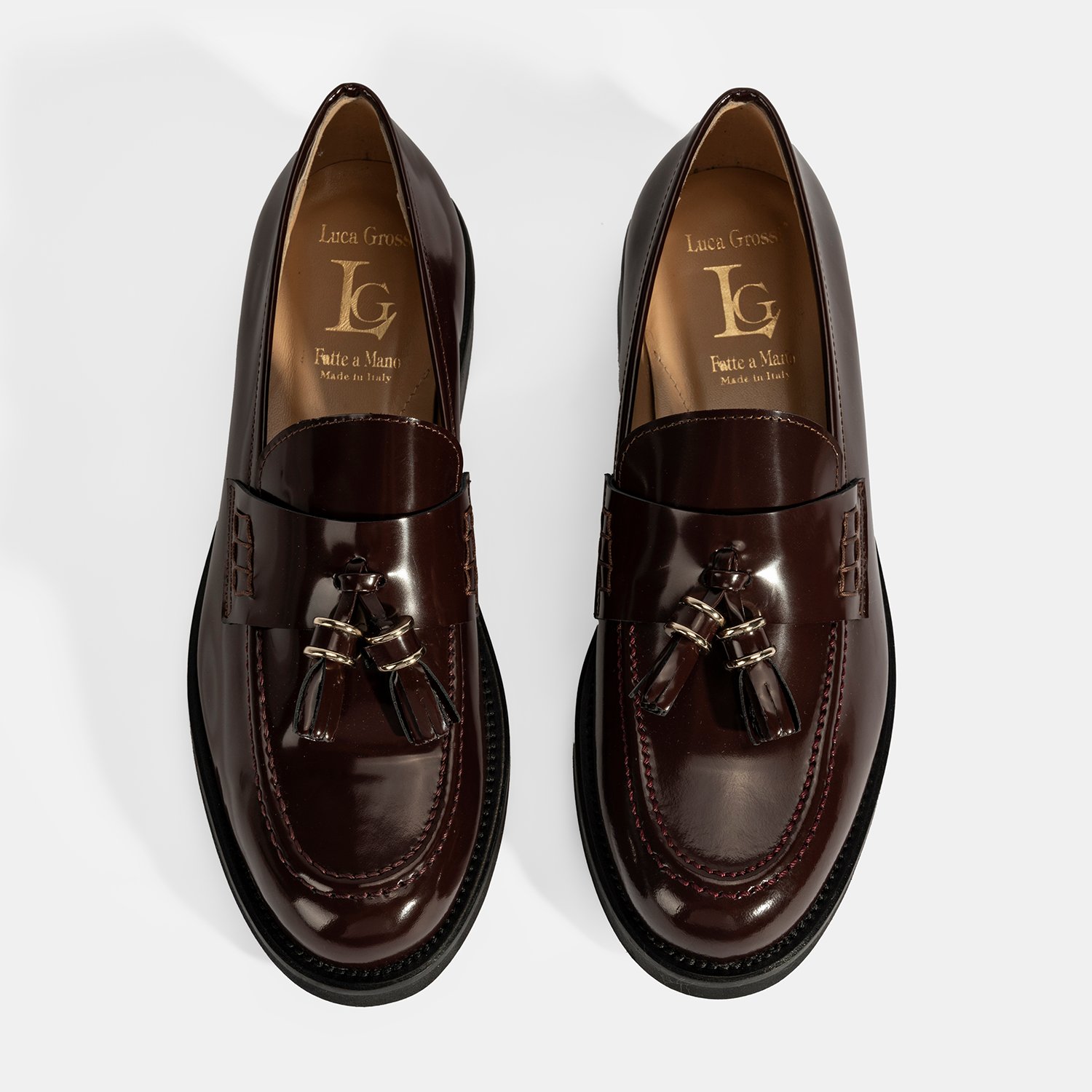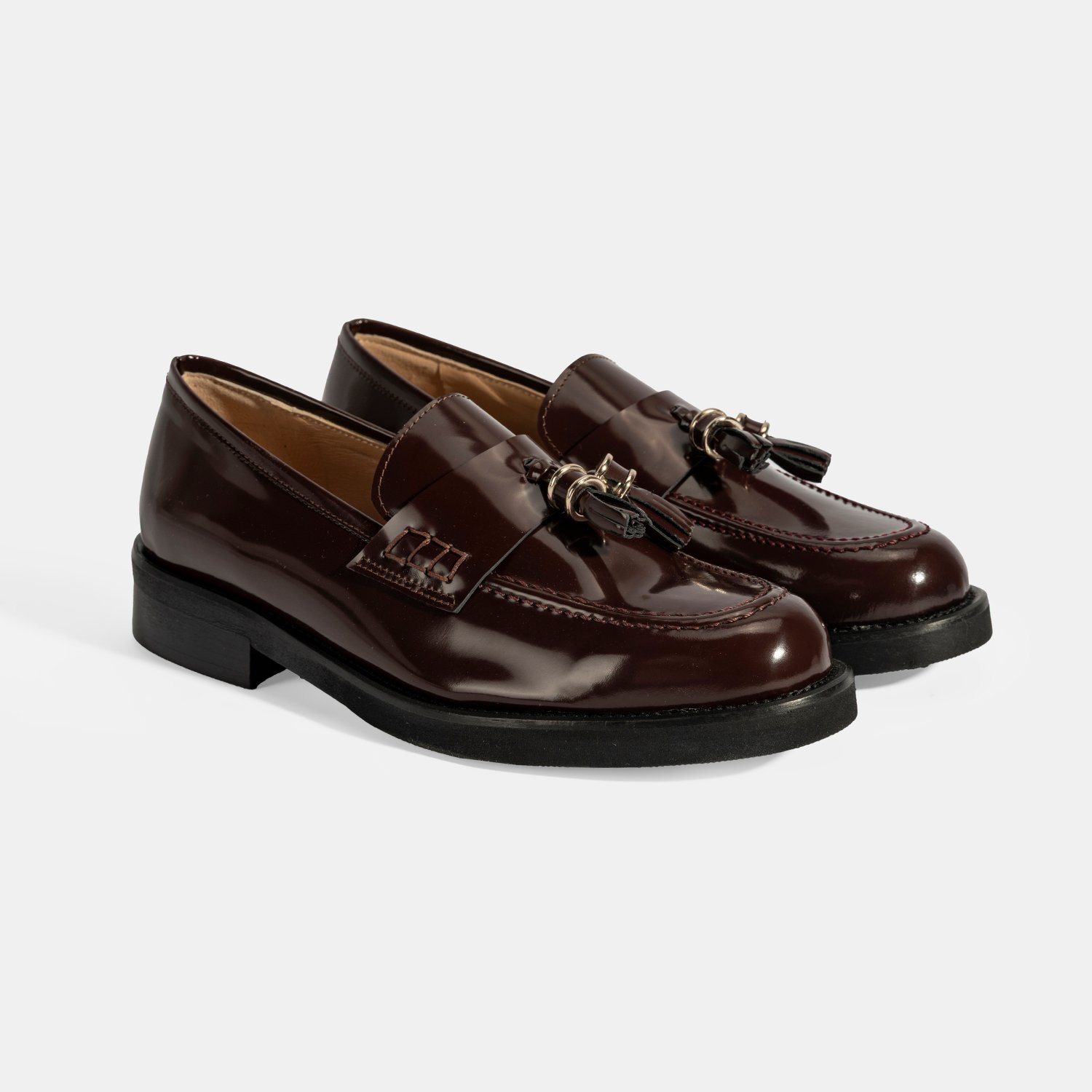 Luca Grossi Kadın Bordo Püskül Detaylı Deri Loafer