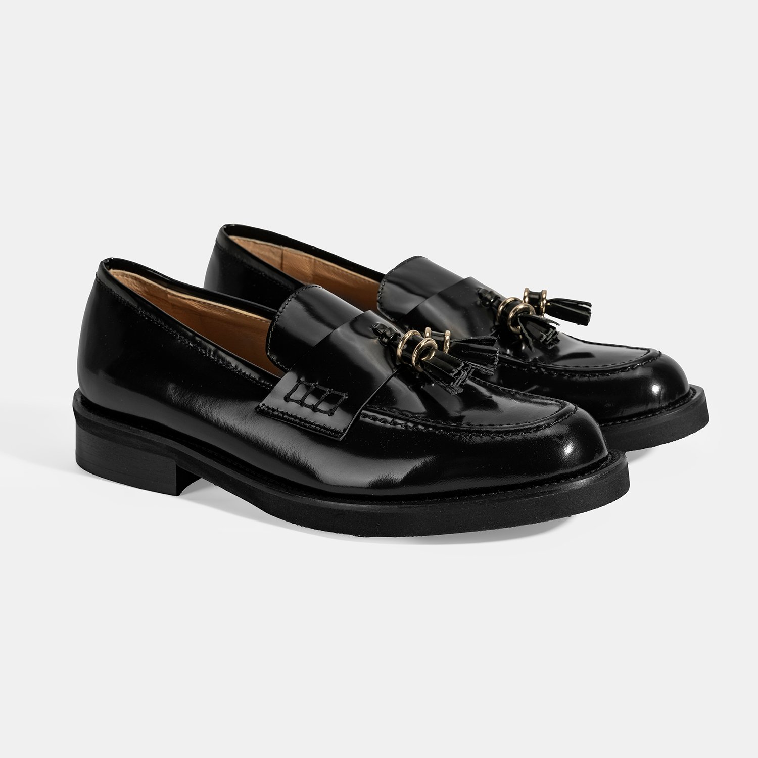 %100 deri, deri iç tabanlı, deri astarlı, deri püskül detaylı, eva tabanlı, kadın klasik loafer. Topuk yükseklği 3 cm