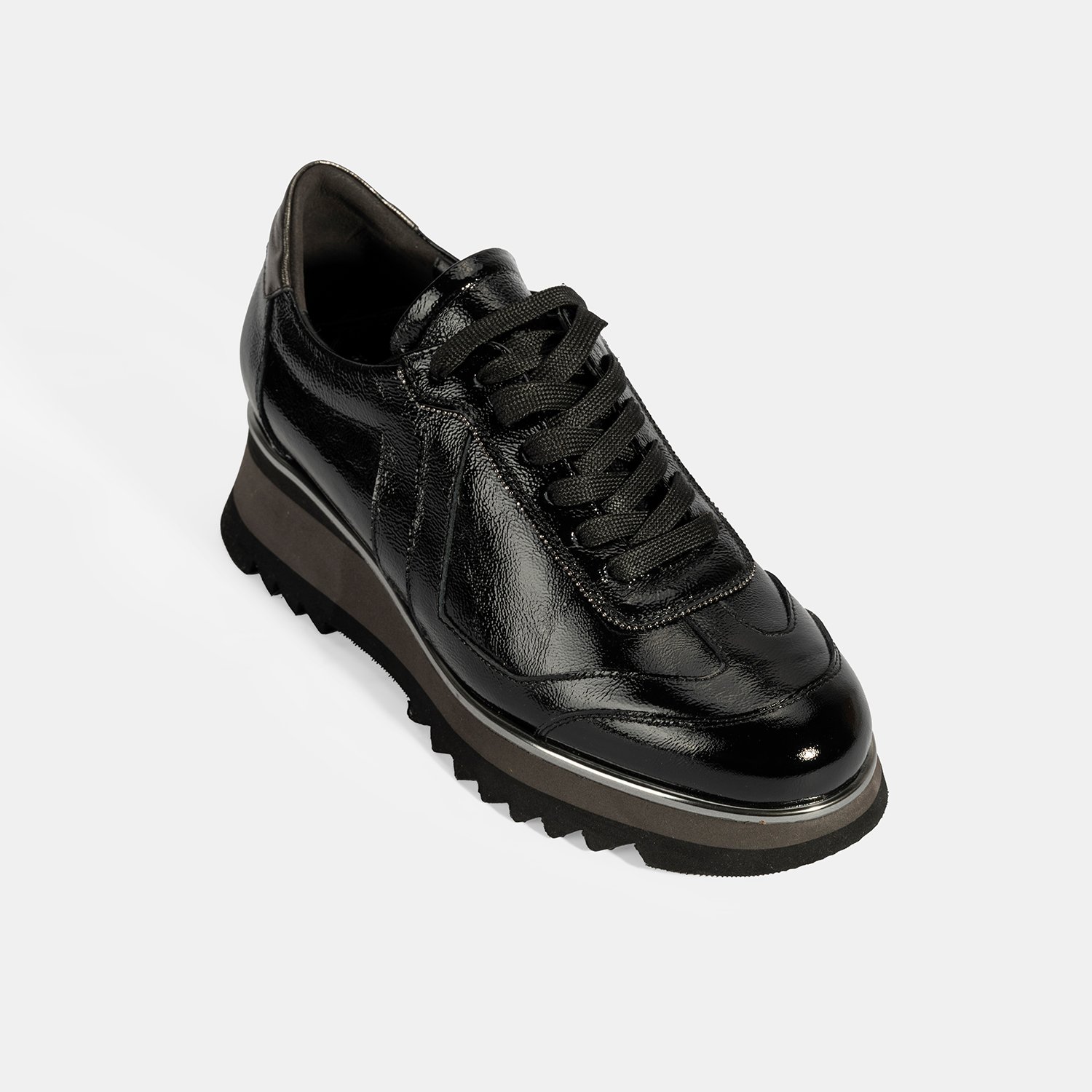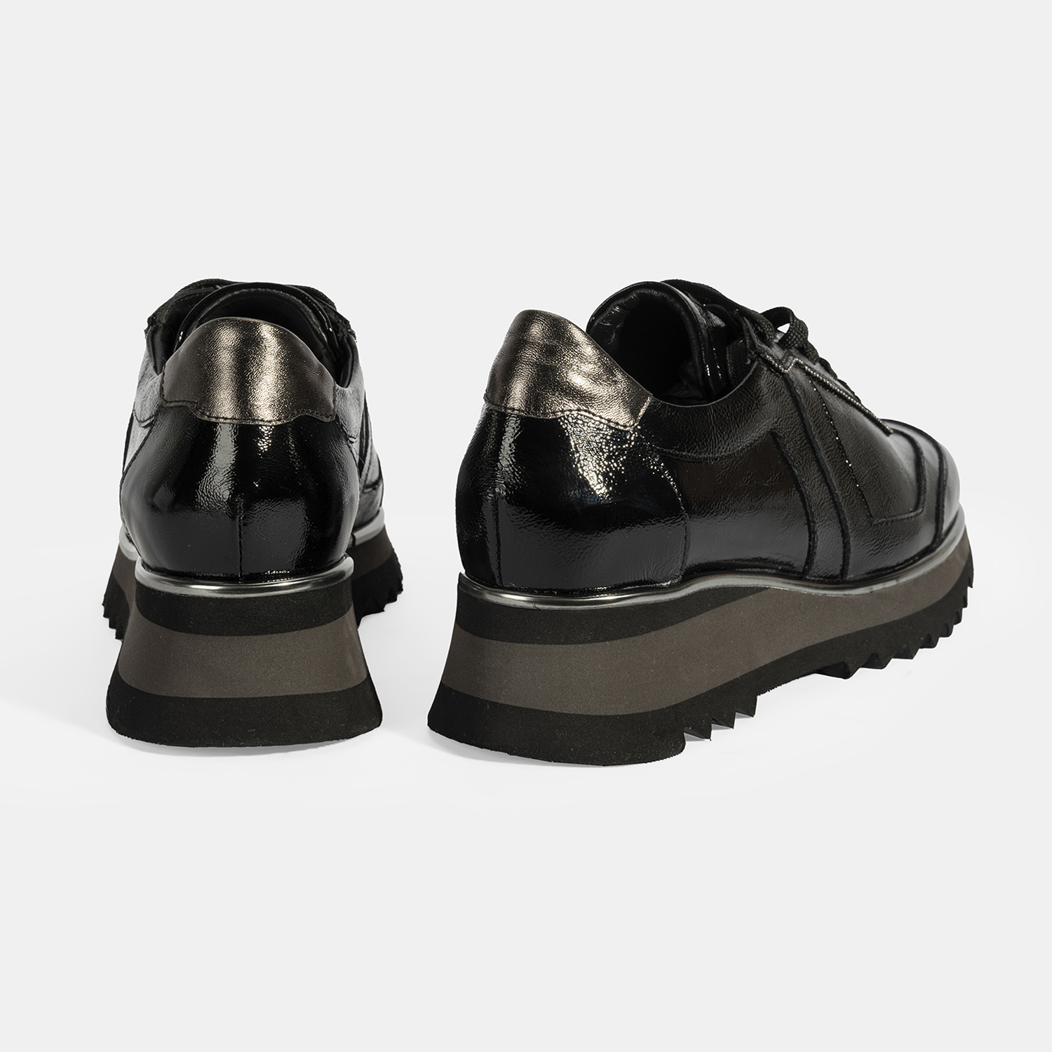 Luca Grossi Kadın Siyah Bağcıklı Rugan Spor Ayakkabı