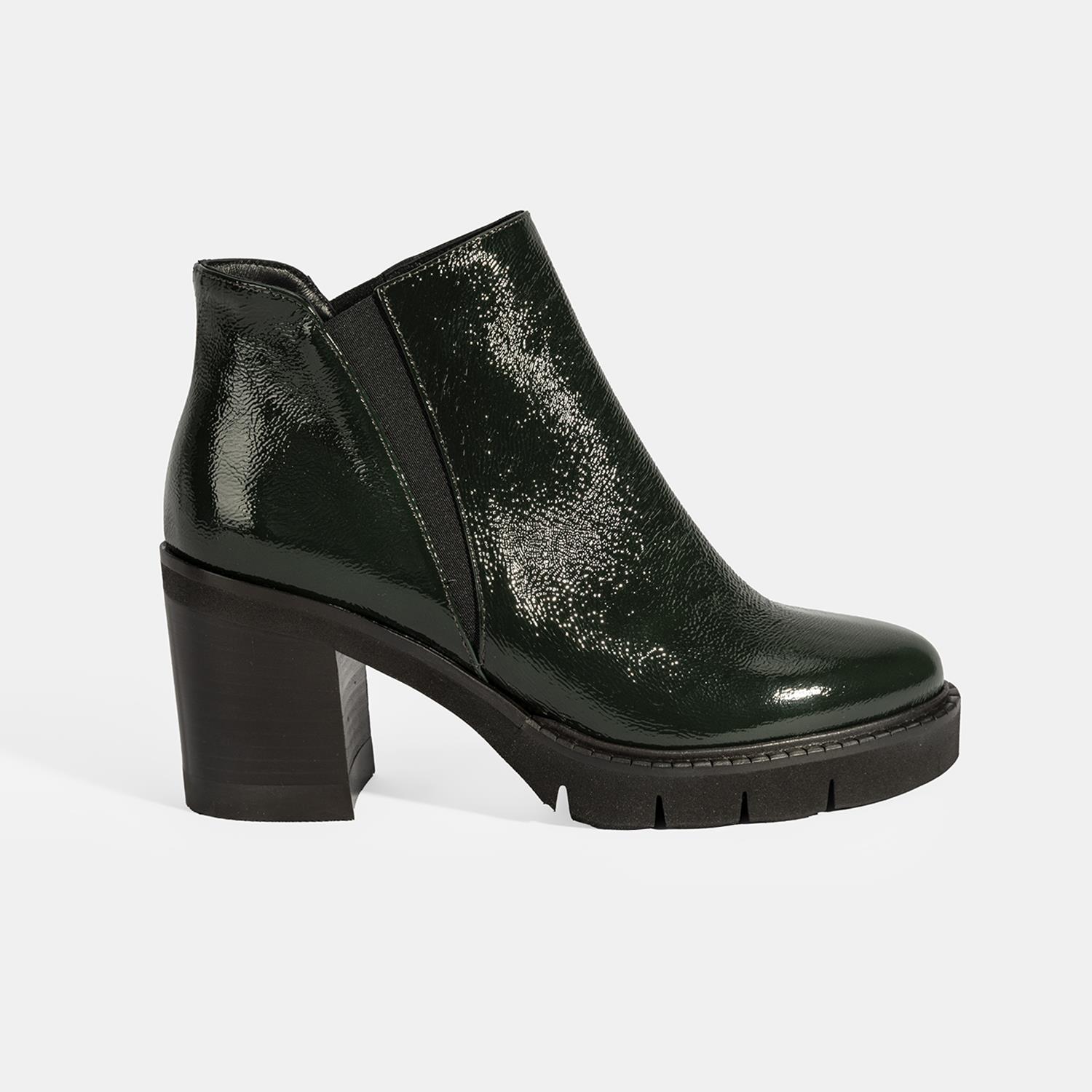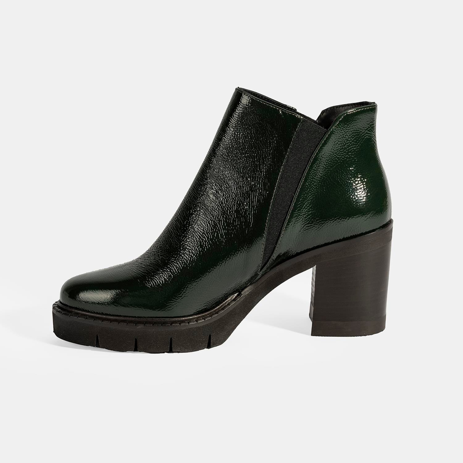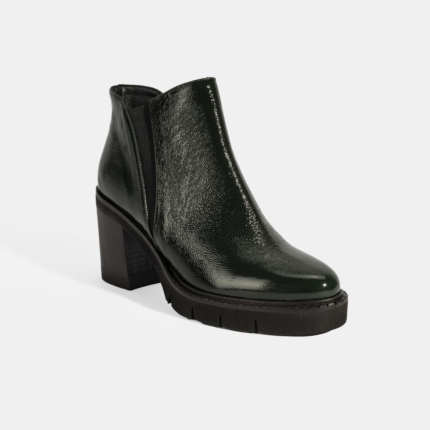 %100 rugan deri, deri iç tabanlı, deri astarlı, lastik detaylı, EVA tabanlı, kalın topuklu bot. Topuk yüksekliği: 8 cm.