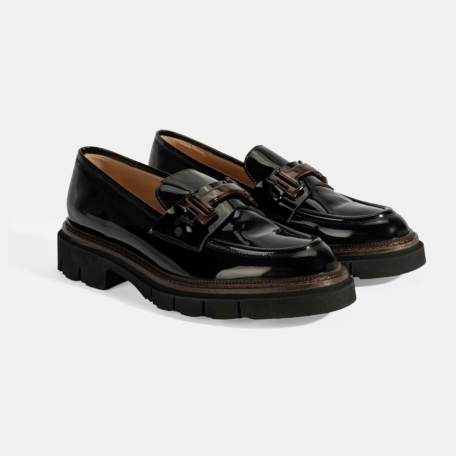 Luca Grossi Kadın Siyah Toka Detaylı Rugan Loafer