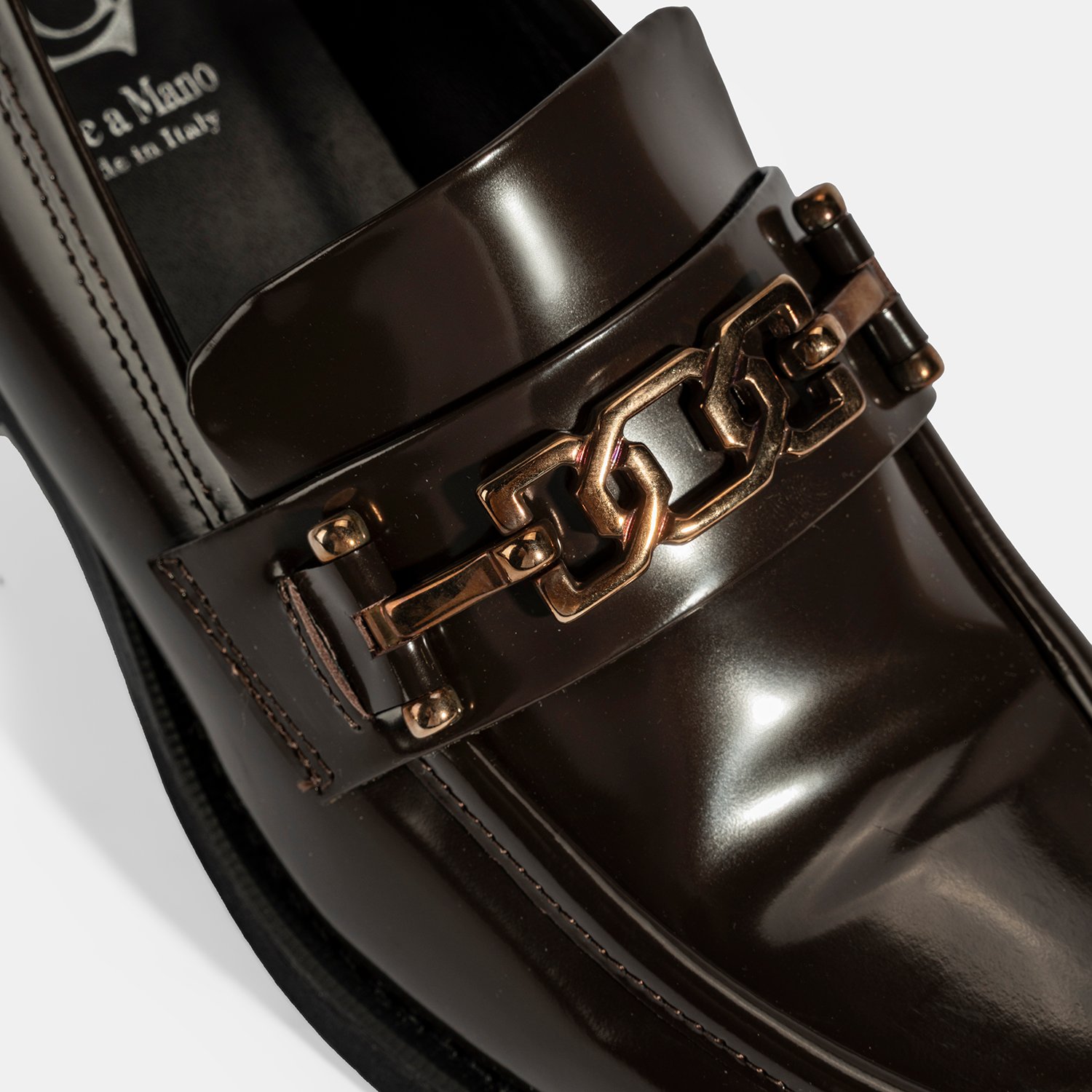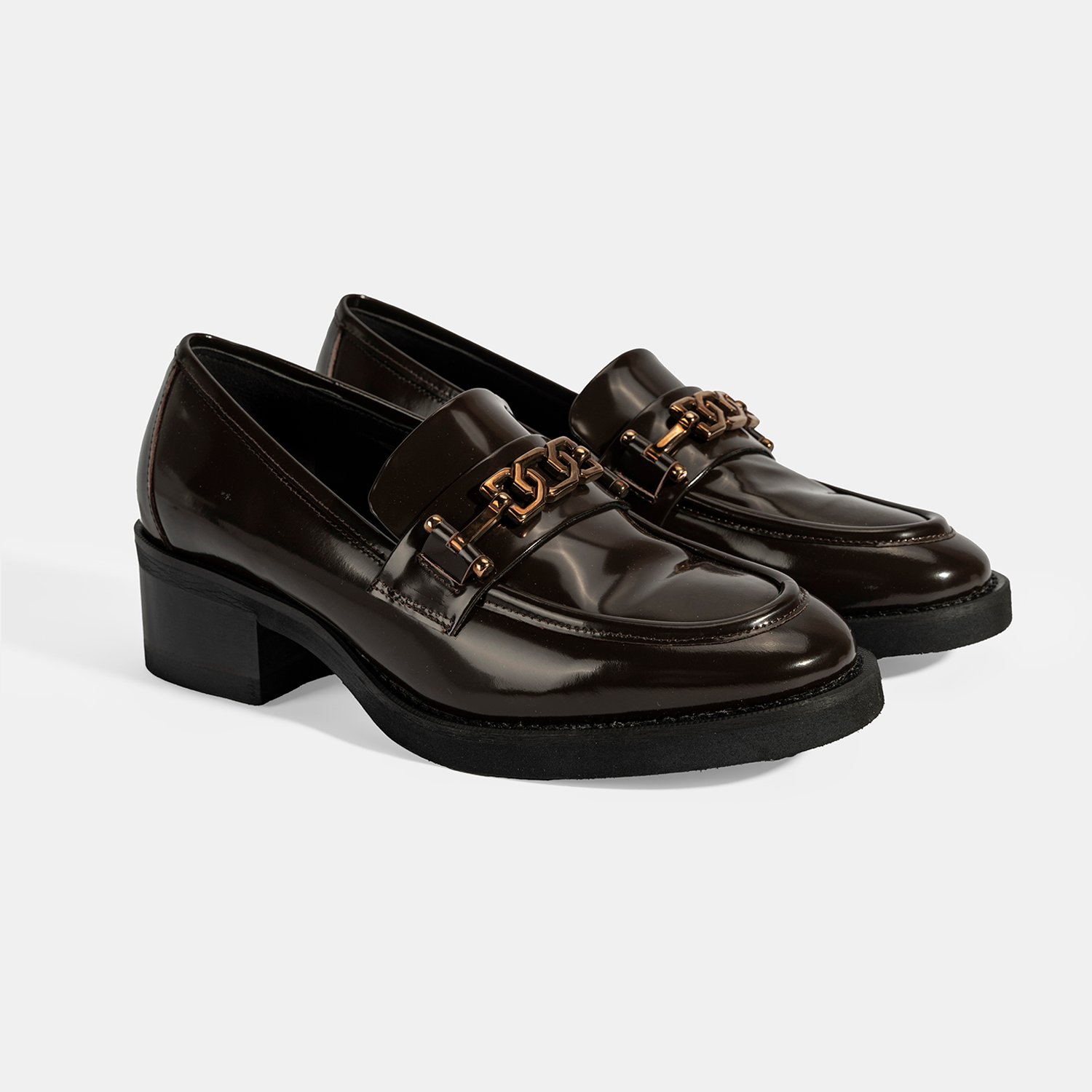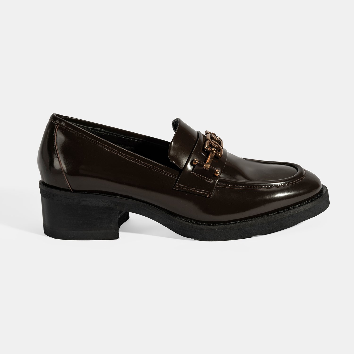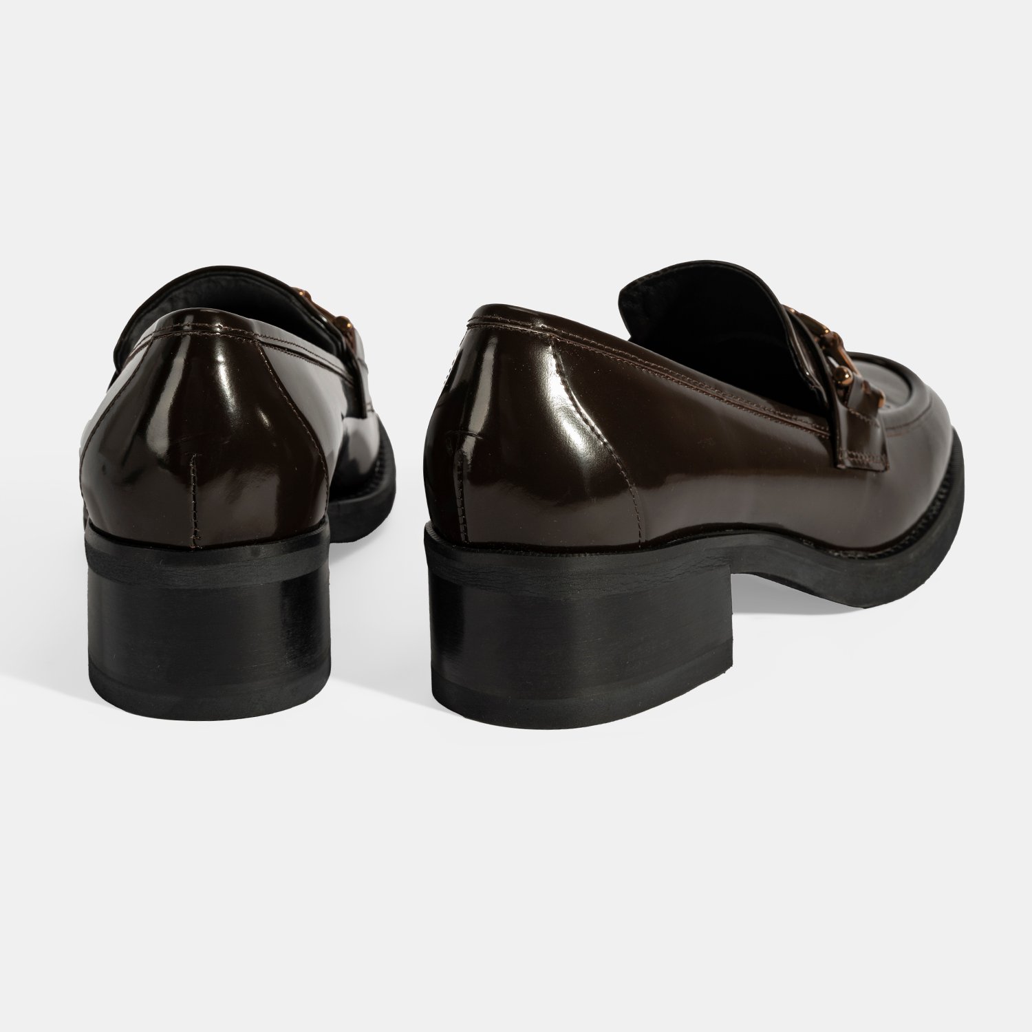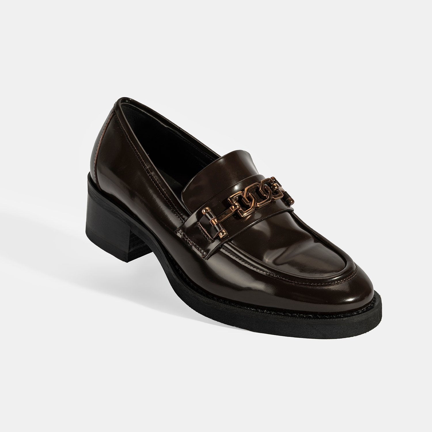 %100 deri, deri iç tabanlı, deri astarlı, metal toka detaylı, eva tabanlı, kadın klasik loafer. Topuk yükseklği 4,5 cm