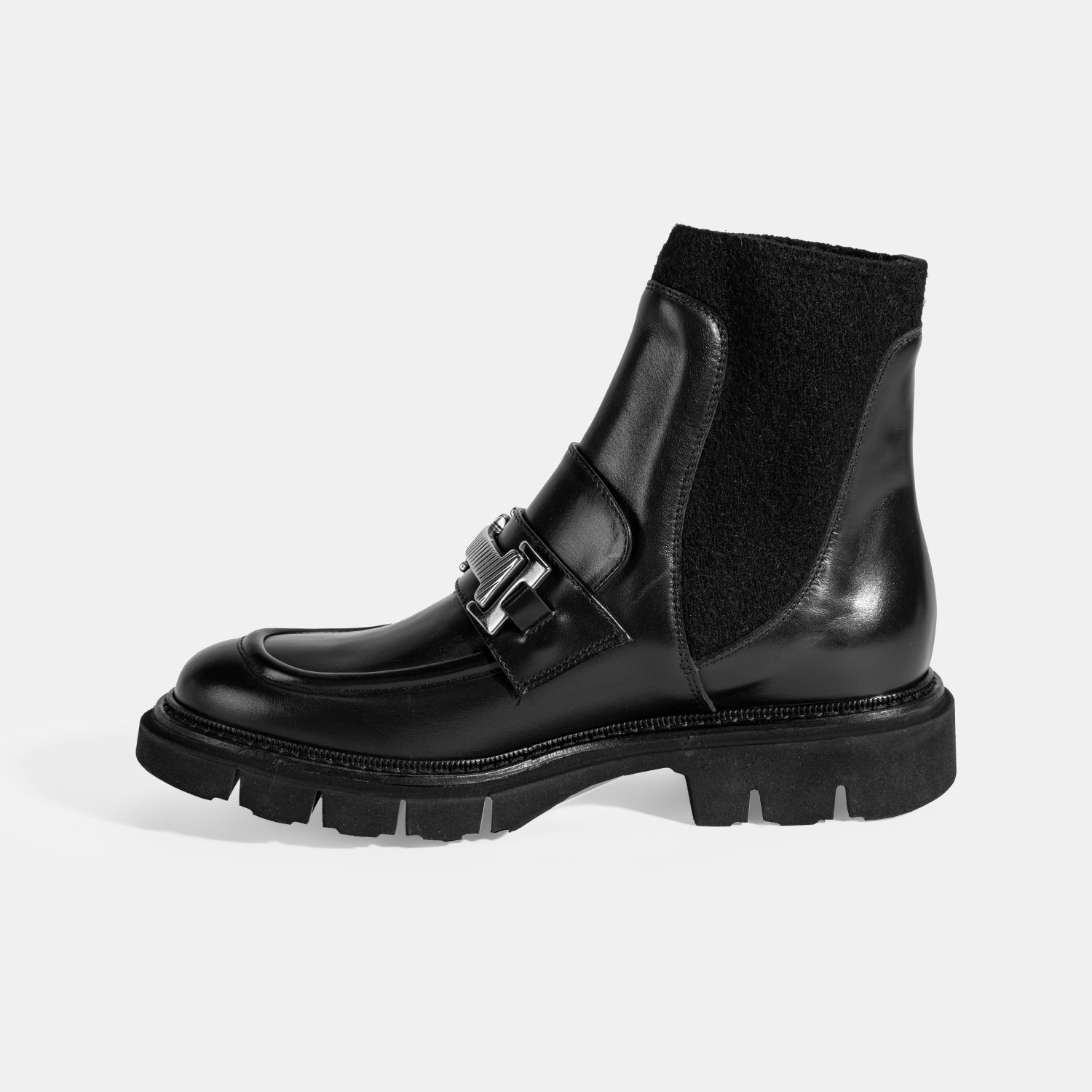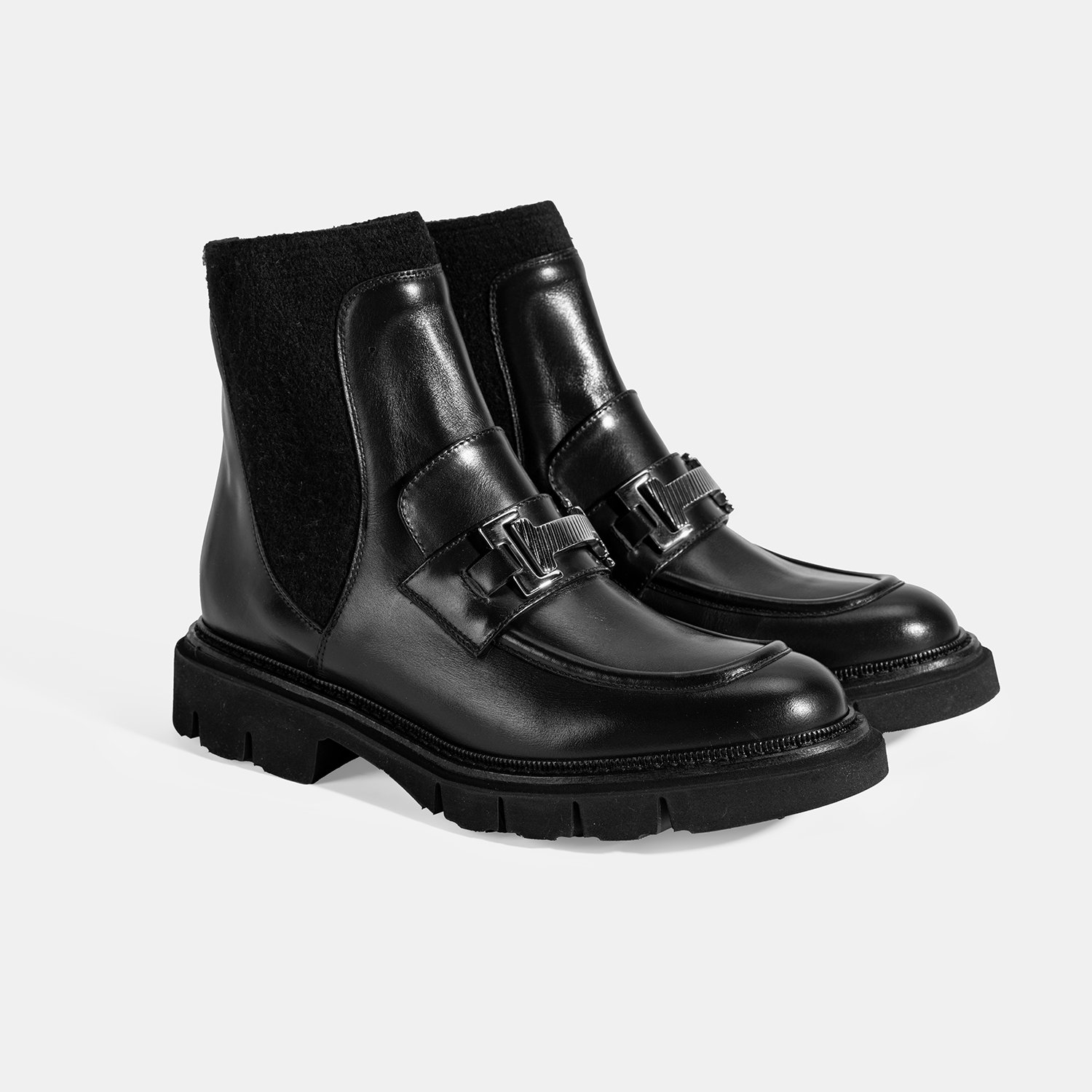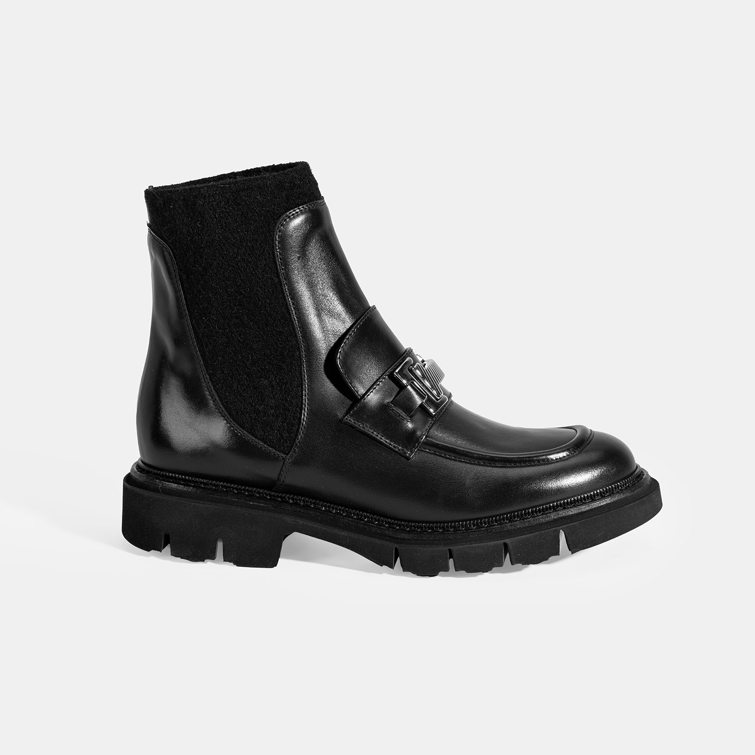 %100 deri, deri iç tabanlı, deri astarlı, metal aksesuar tokalı, lastik detaylı, EVA tabanlı kadın Chelsea bot. Topuk yüksekliği: 4 cm.