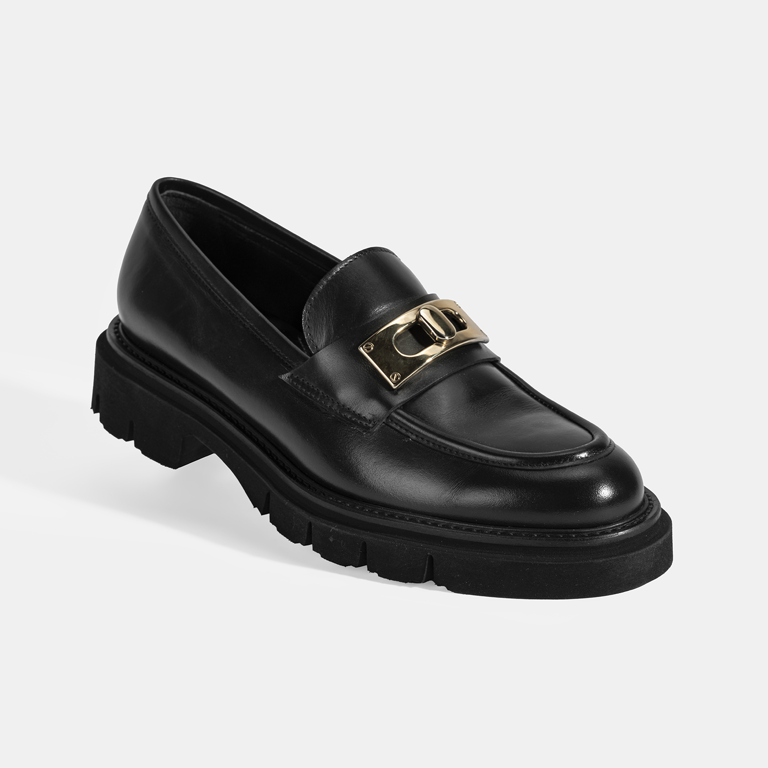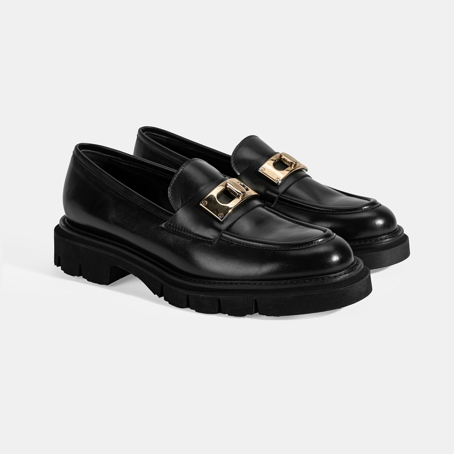 %100 deri, deri iç tabanlı, deri astarlı, metal kilit aksesuar detaylı, eva tabanlı, kadın loafer. Topuk yüksekliği 4 cm