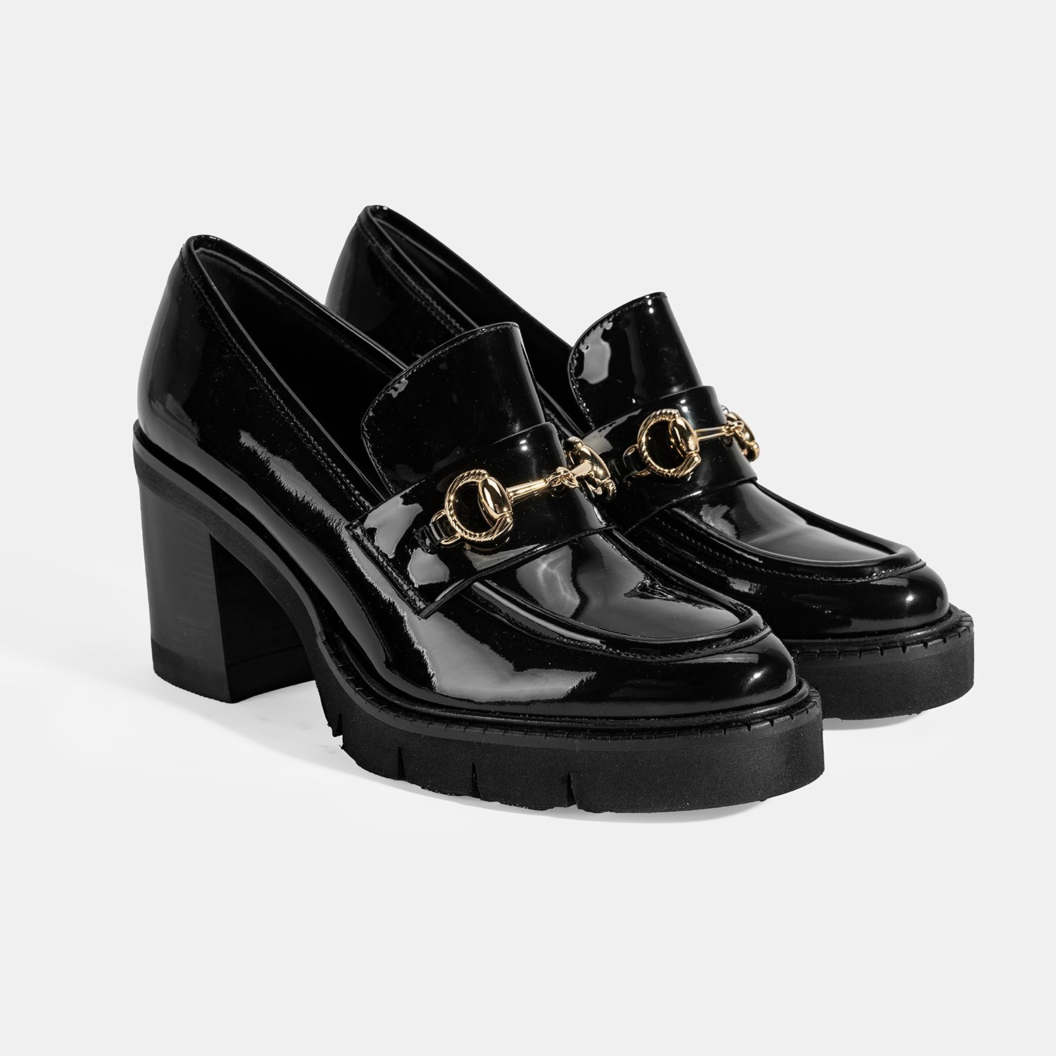 Luca Grossi Kadın Siyah Toka Detaylı Topuklu Rugan Loafer