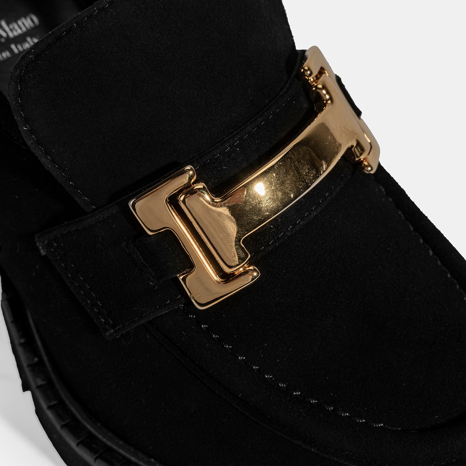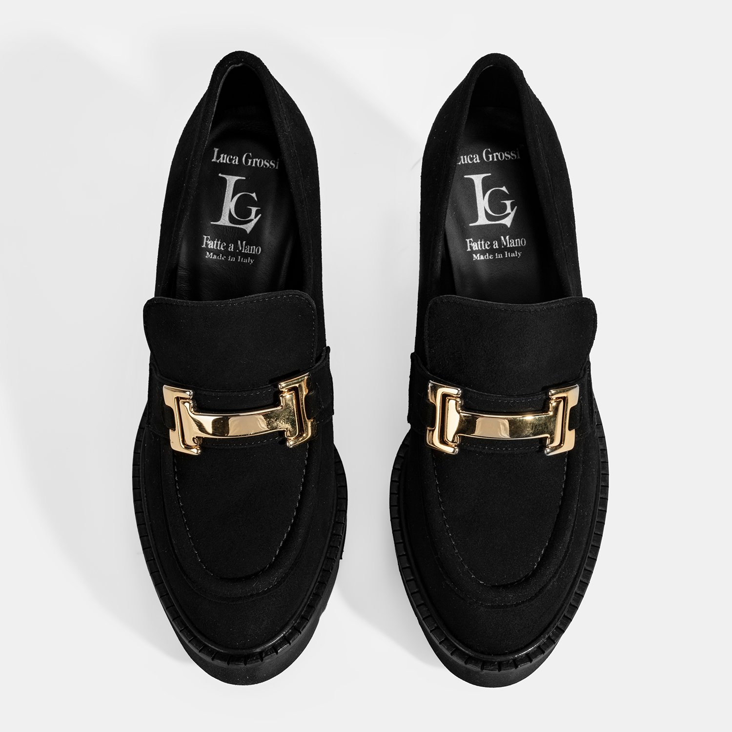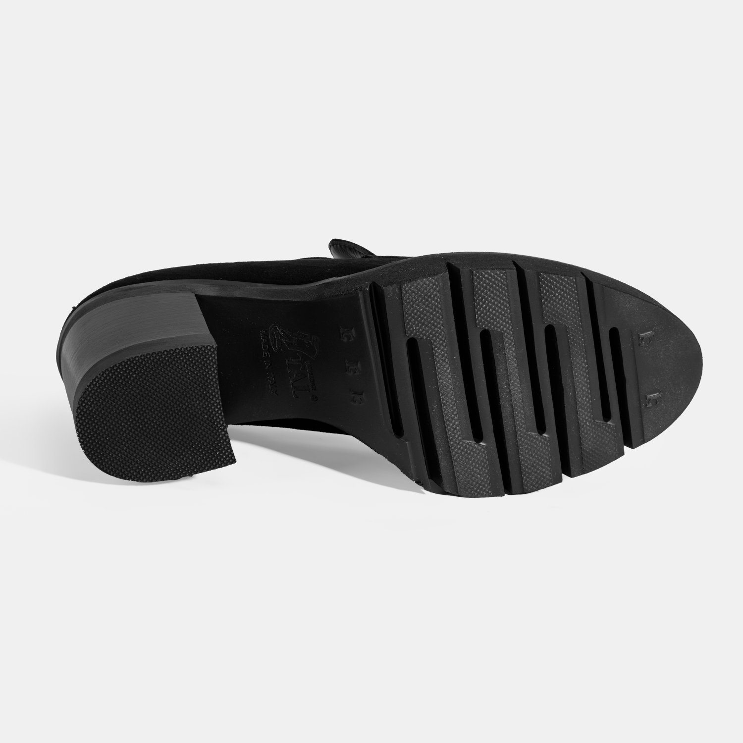 Luca Grossi Kadın Siyah Toka Aksesuarlı Topuklu Süet Loafer