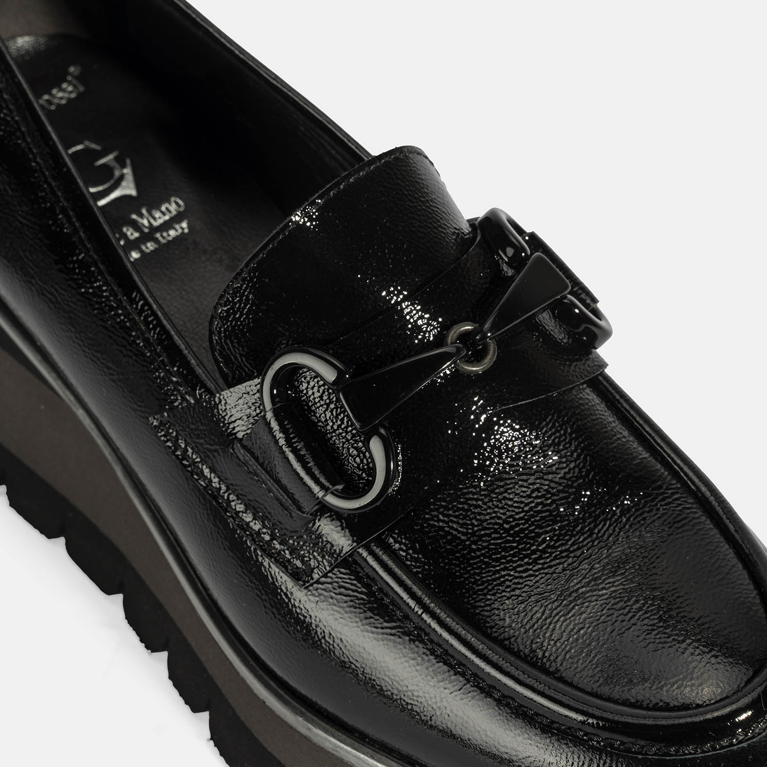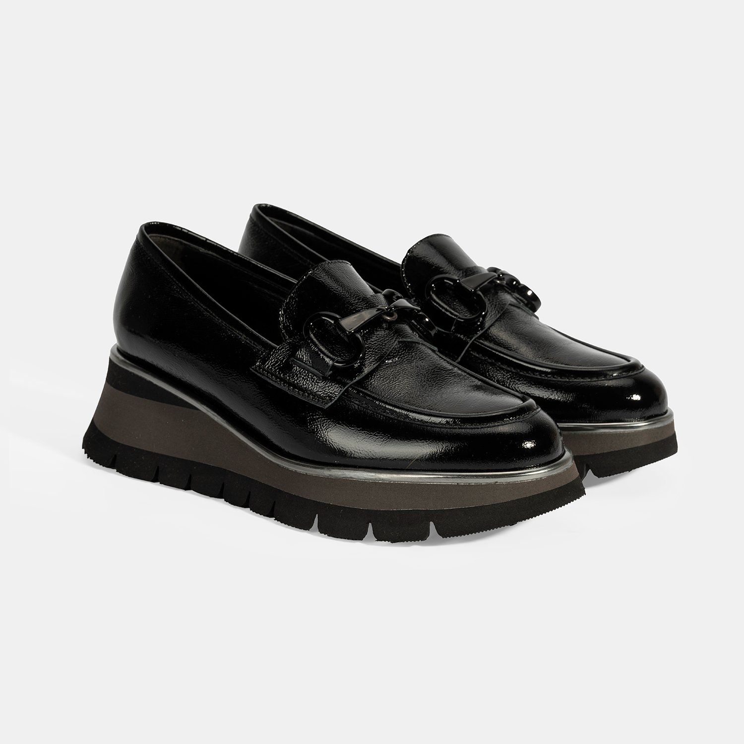 Luca Grossi Kadın Siyah Toka Detaylı Dolgu Topuklu Rugan Loafer