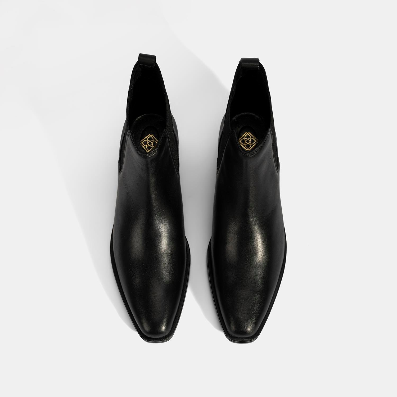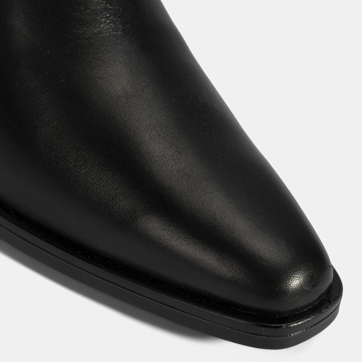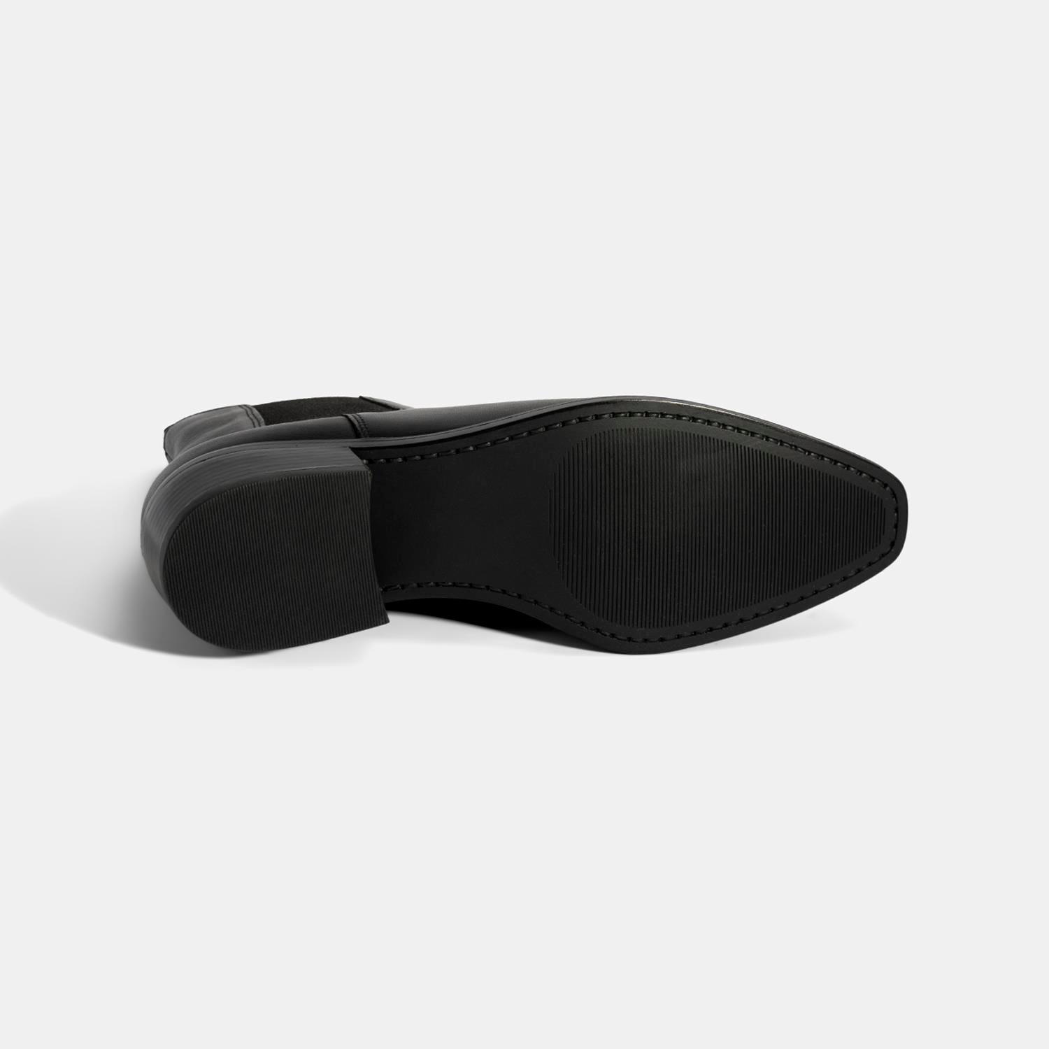 Kadın Siyah Lastik Detaylı Topuklu Deri Bot