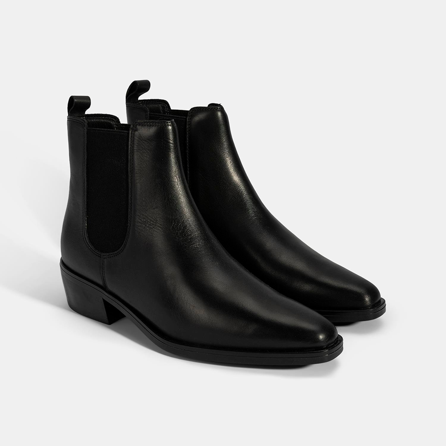 %100 deri, deri iç tabanlı, sentetik astarlı, lastik detaylı, kauçuk tabanlı kadın bot.
