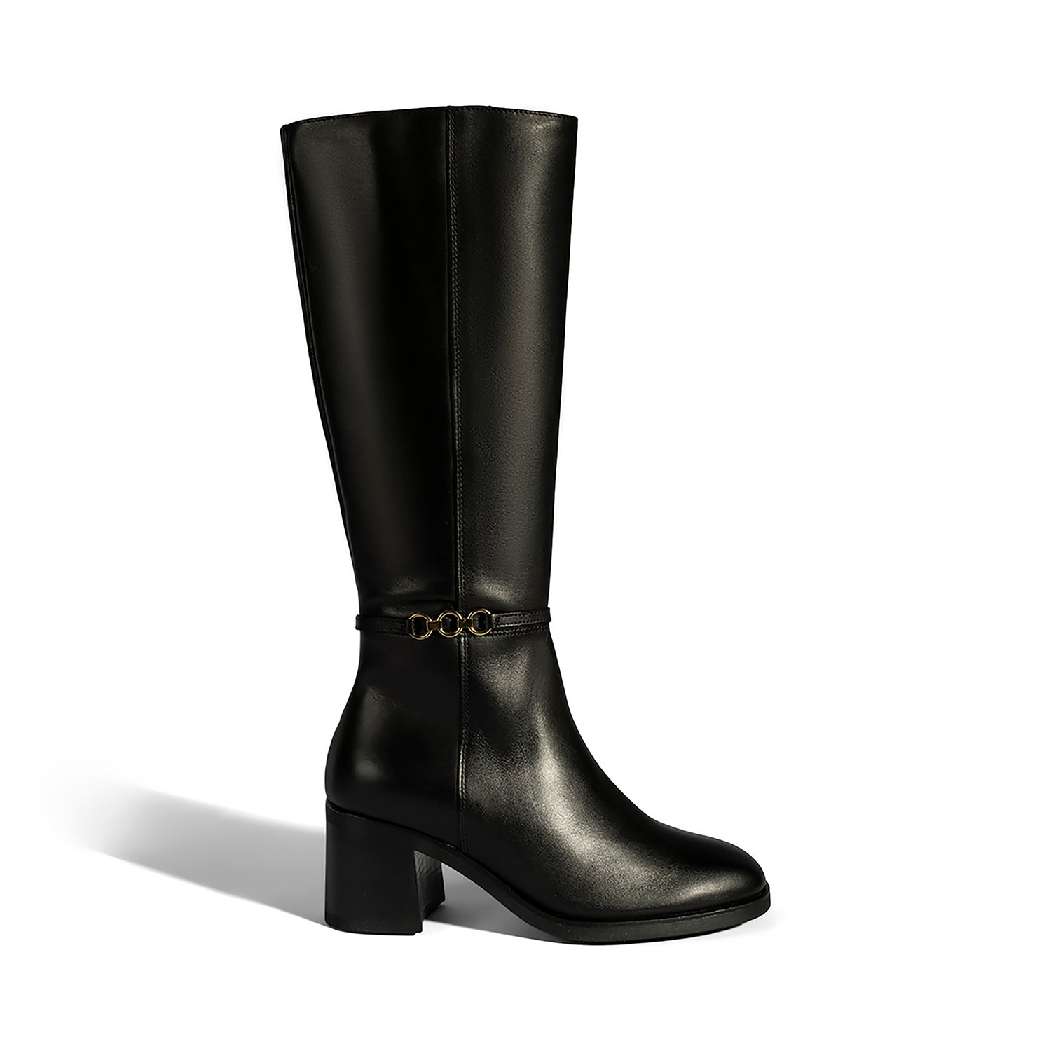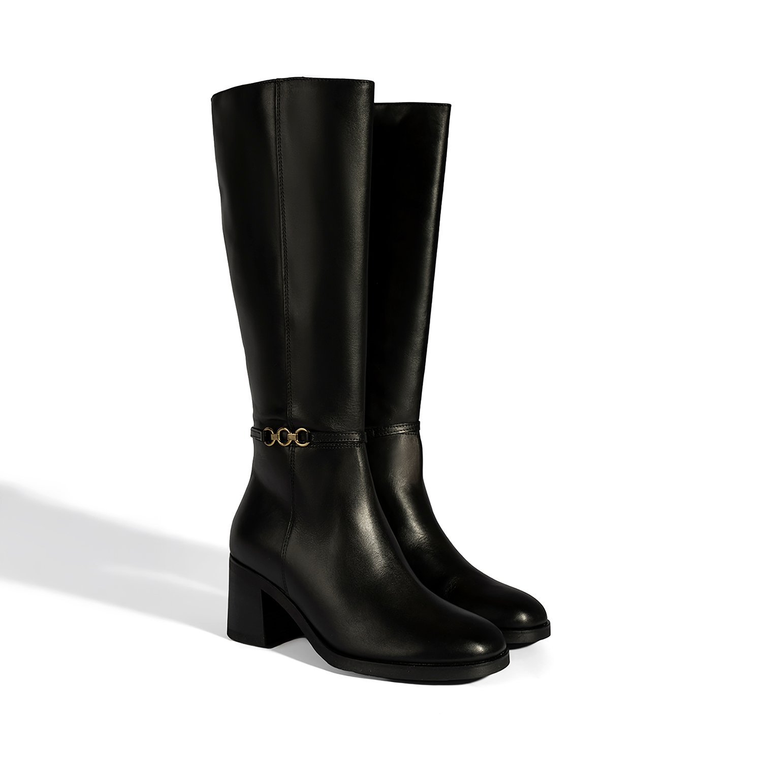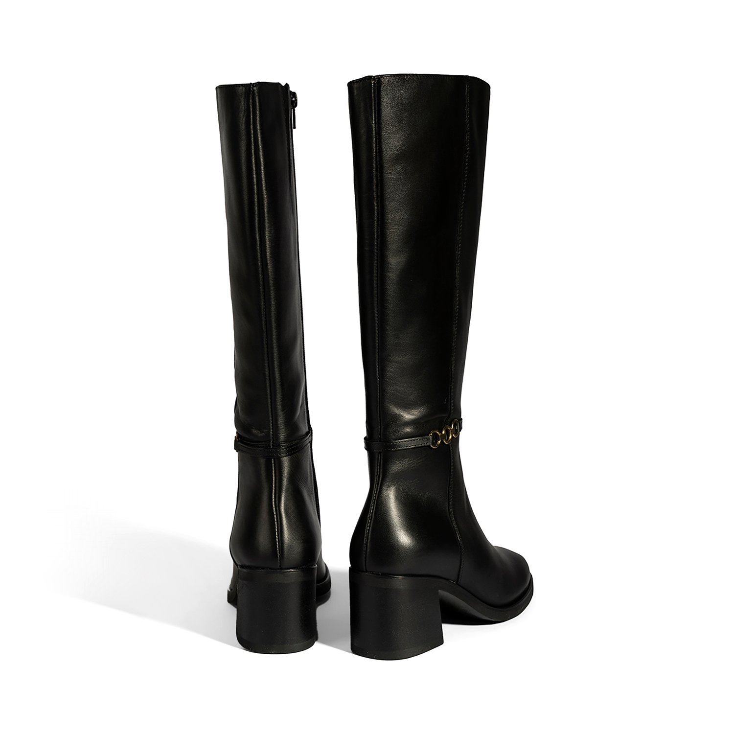 Kadın Siyah Metal Aksesuarlı Deri Çizme