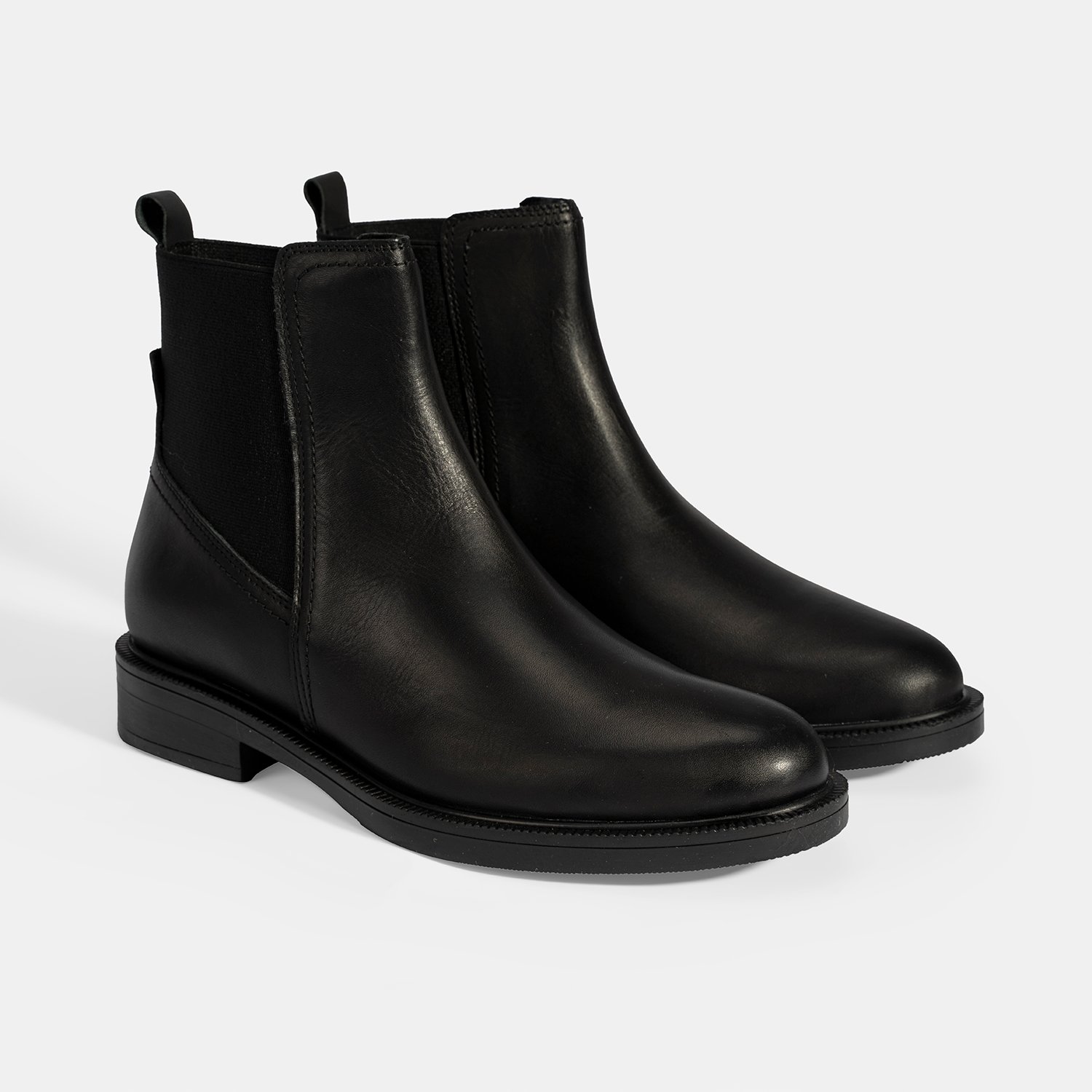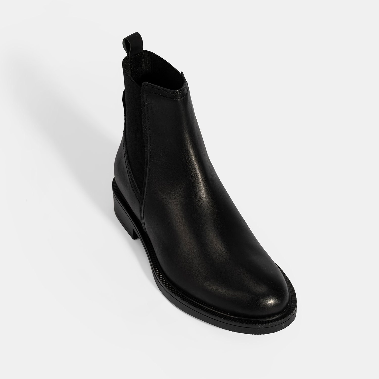 %100 deri, deri iç tabanlı, tekstil astarlı, lastik detaylı, termo tabanlı kadın bot. Topuk yüksekliği: 3 cm.