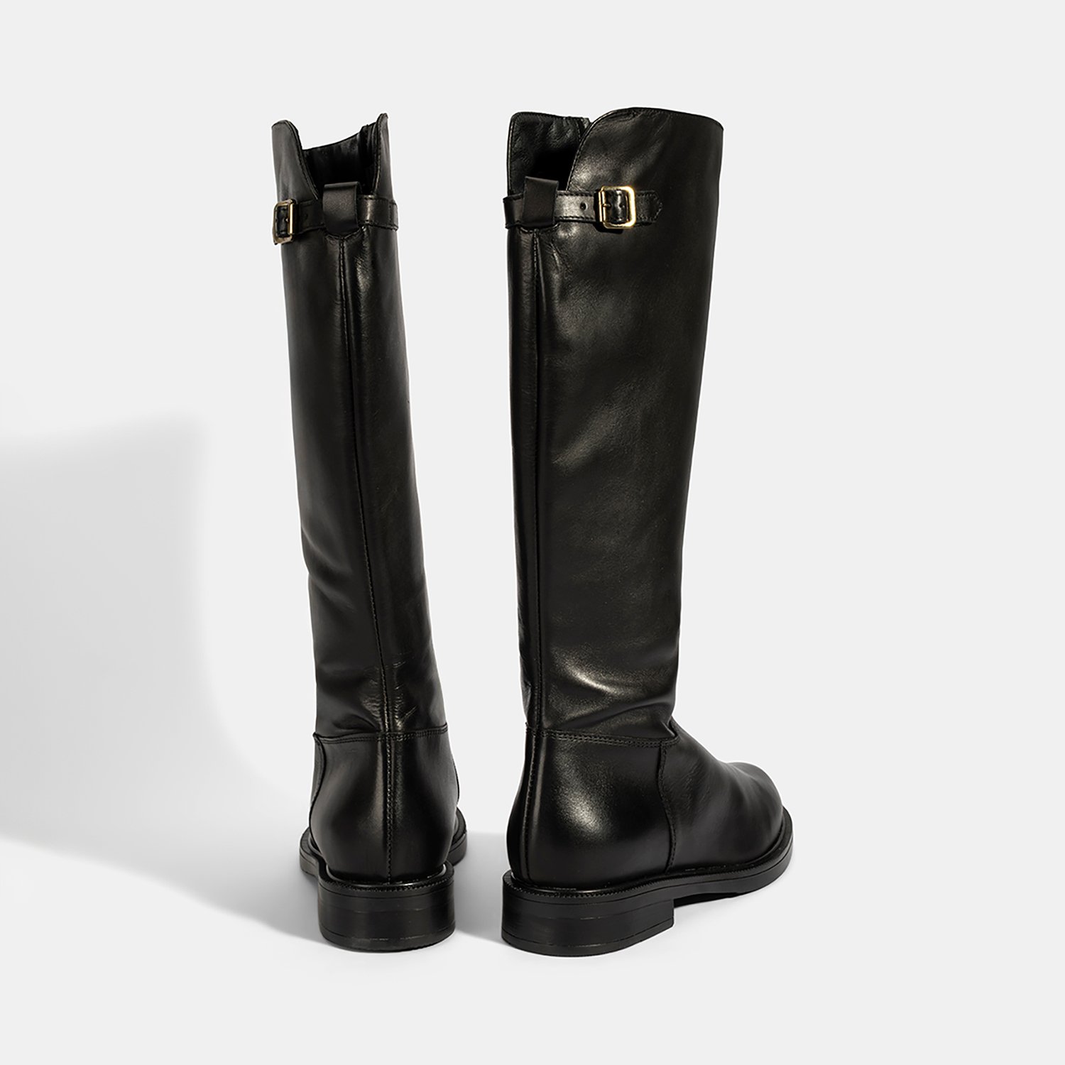 Kadın Siyah Metal Toka Detaylı Deri Çizme
