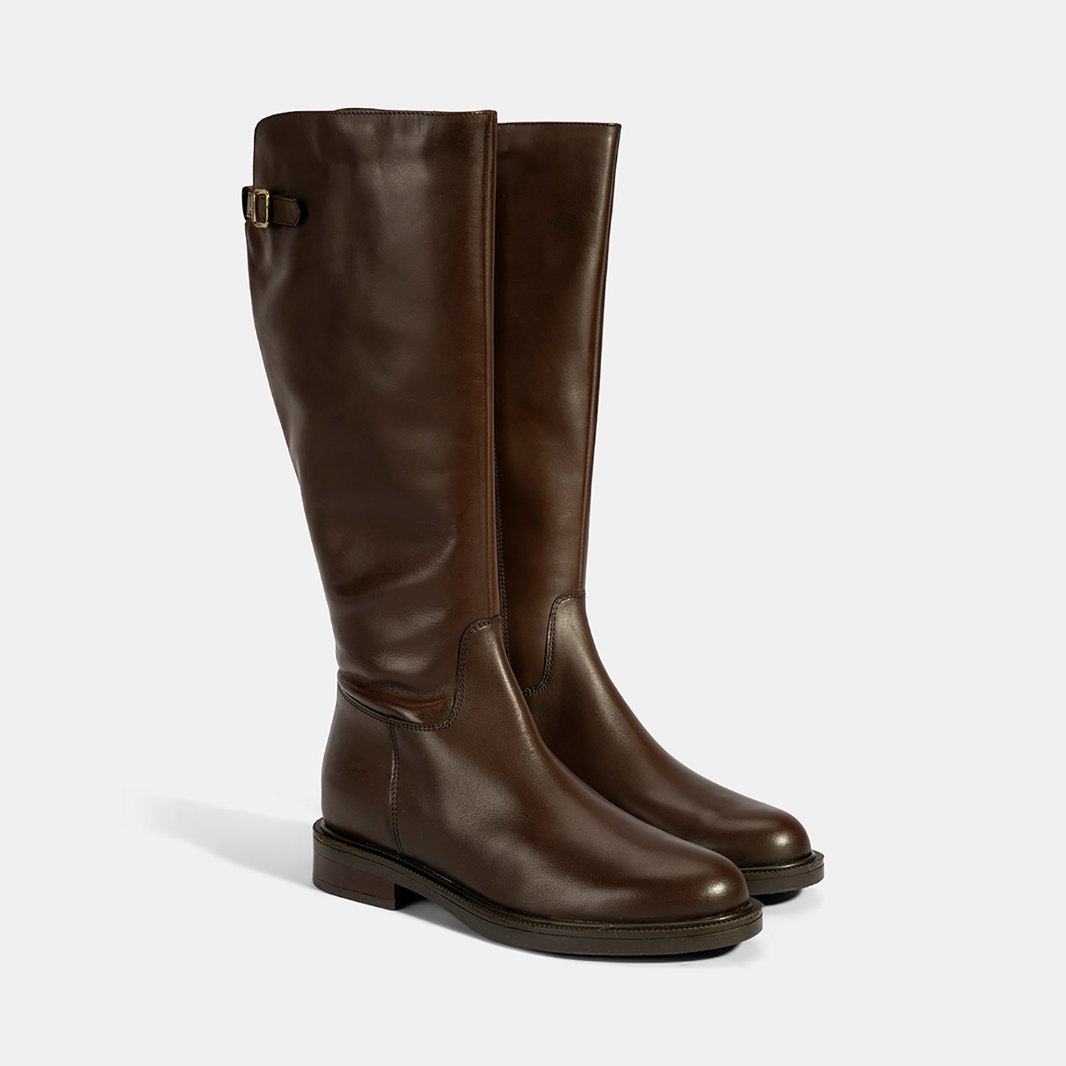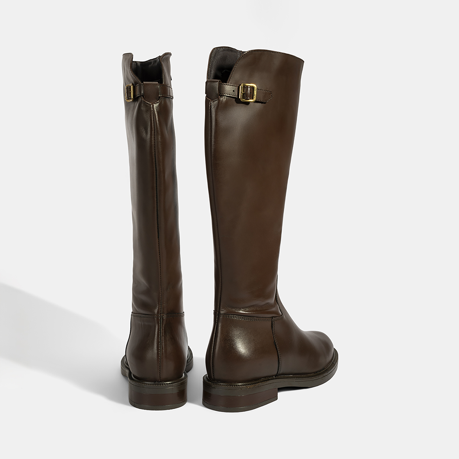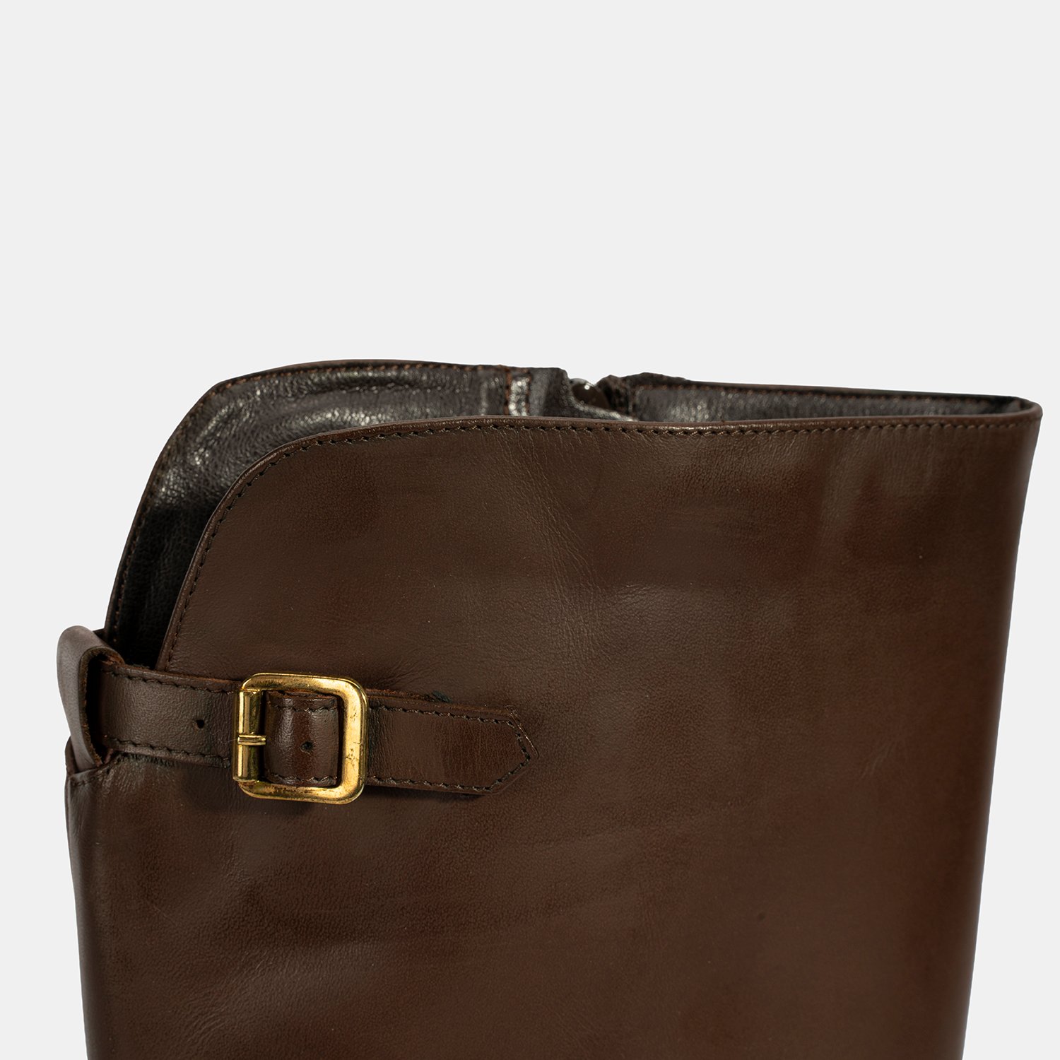 Kadın Kahve Metal Toka Detaylı Deri Çizme