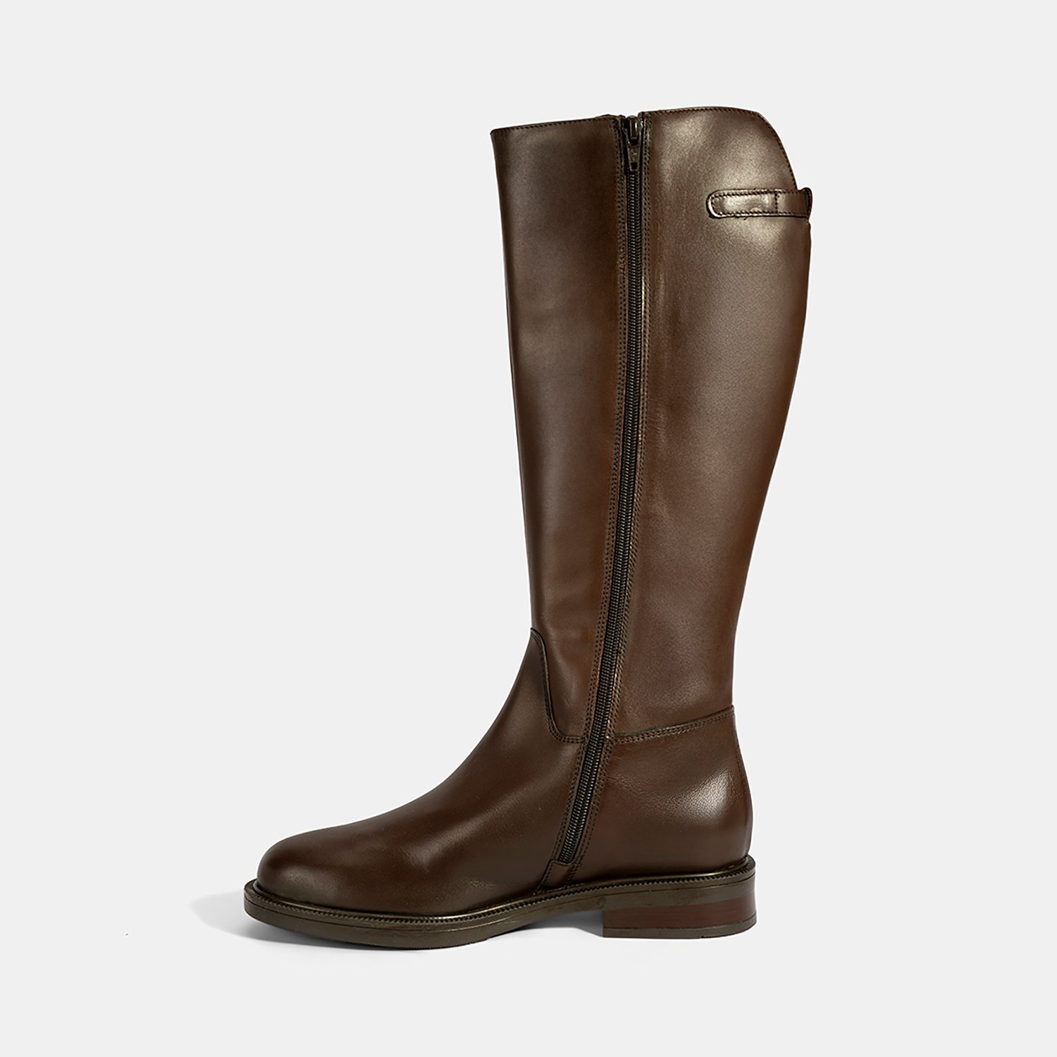 %100 deri, deri iç tabanlı, tekstil astarlı, metal toka detaylı, termo tabanlı, içten fermuarlı kadın çizme. Topuk yüksekliği: 3 cm.