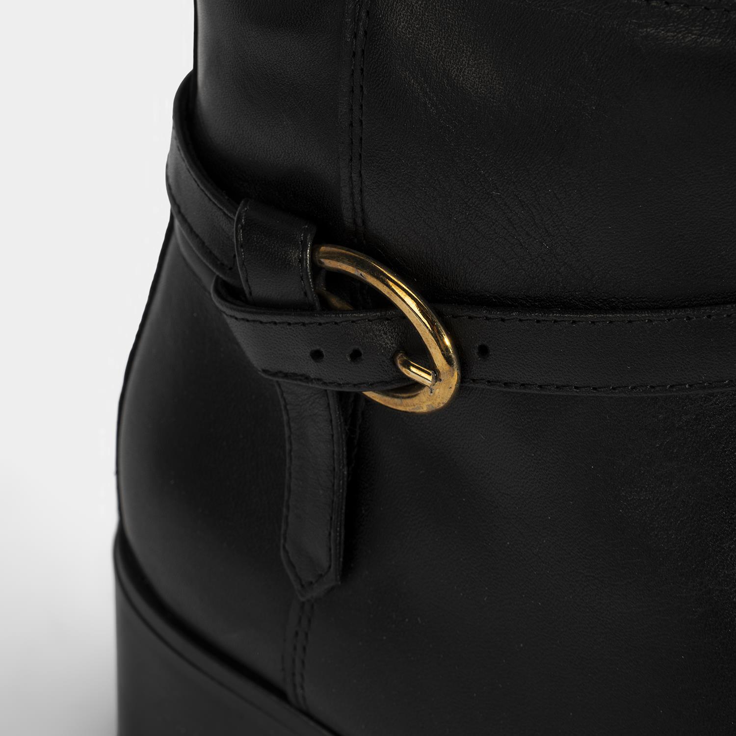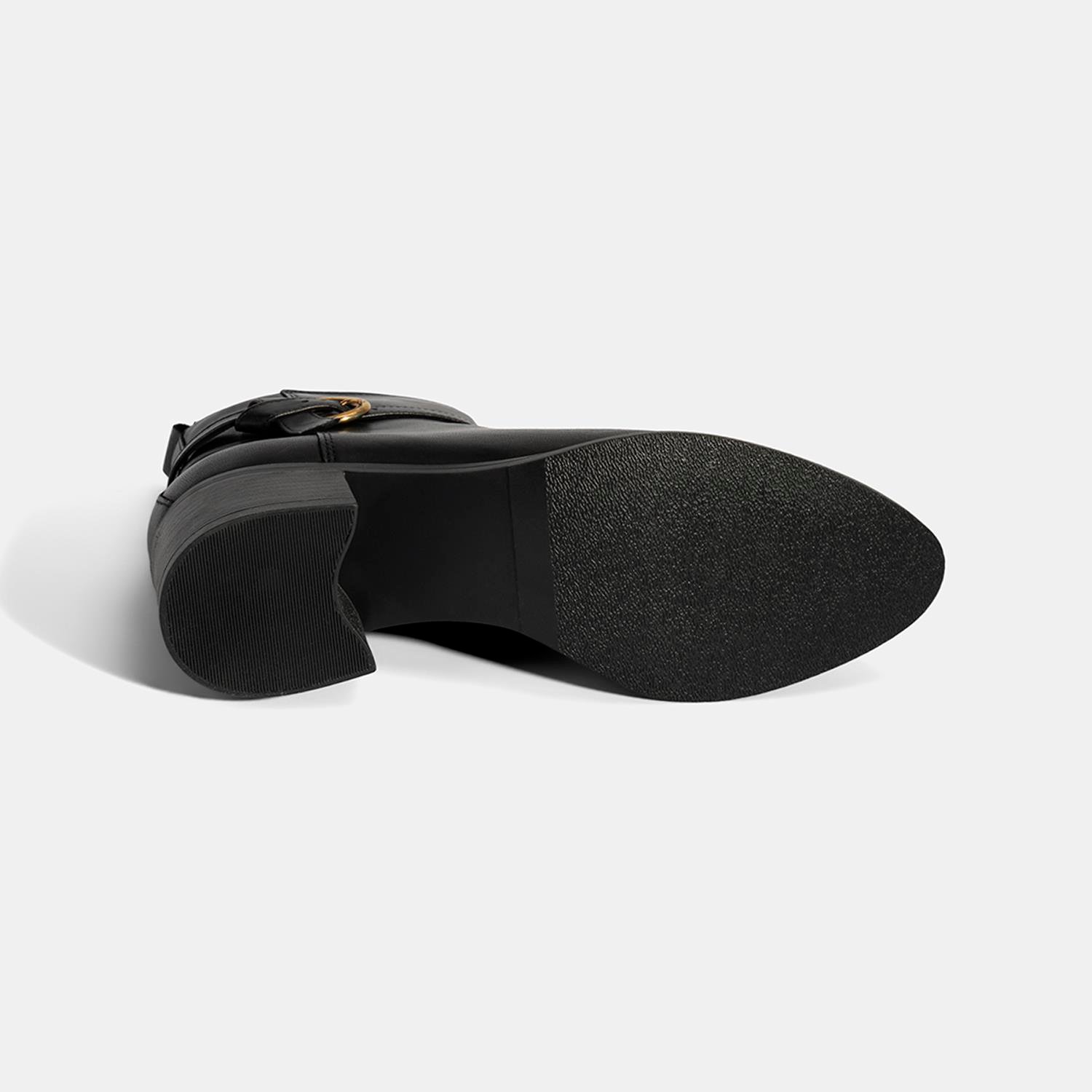 Kadın Siyah Ayarlanabilir Metal Tokalı Topuklu Deri Bot