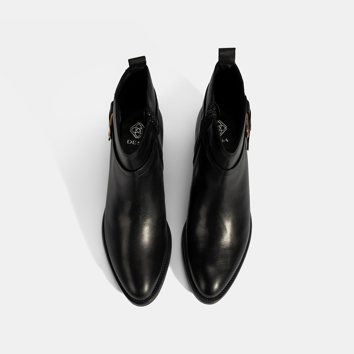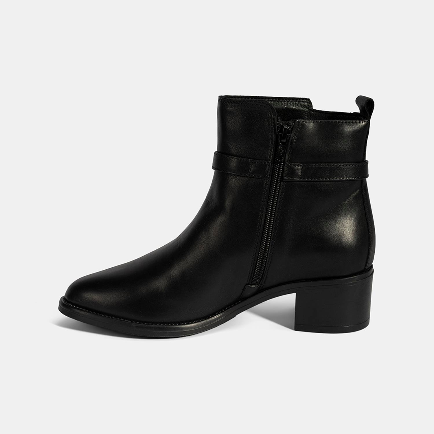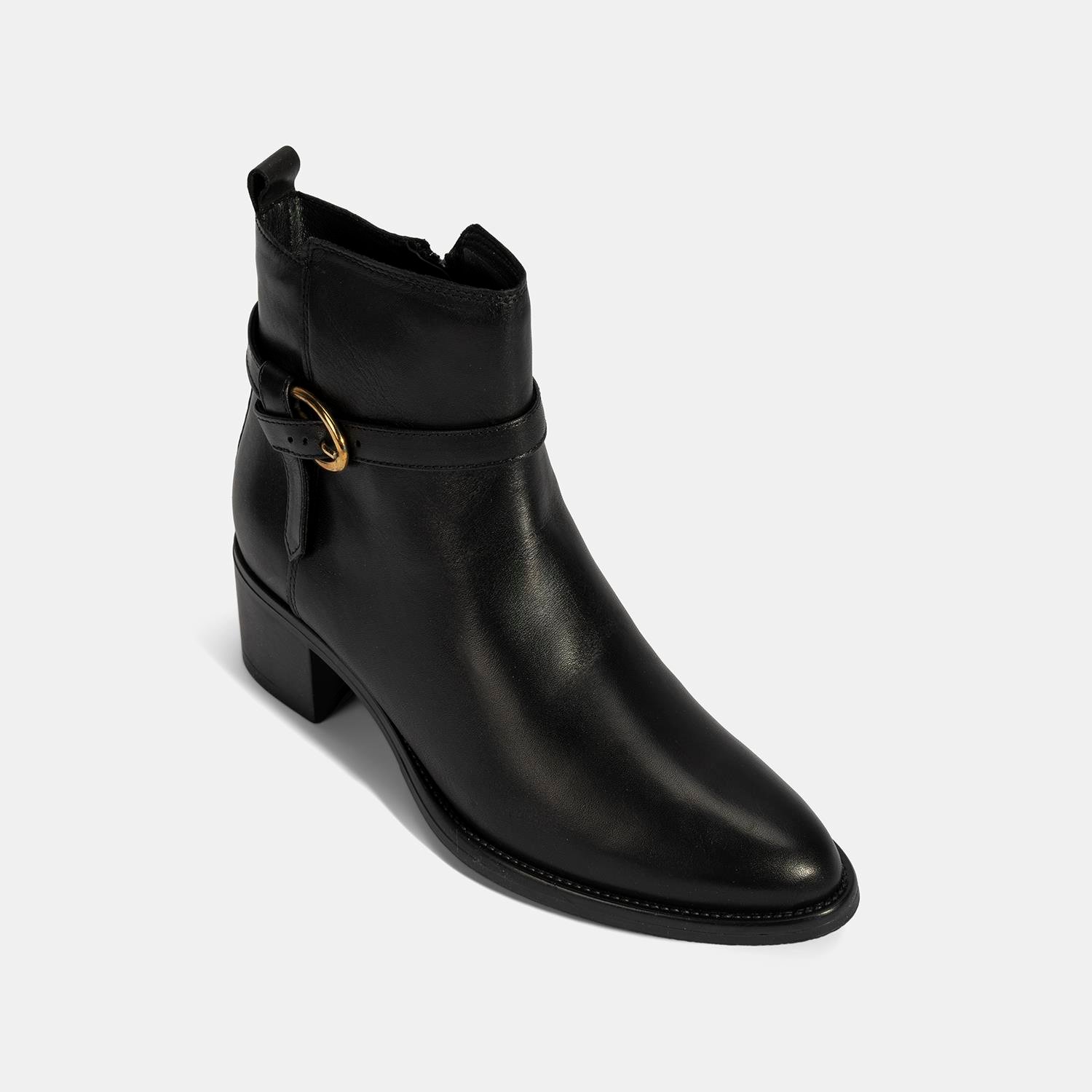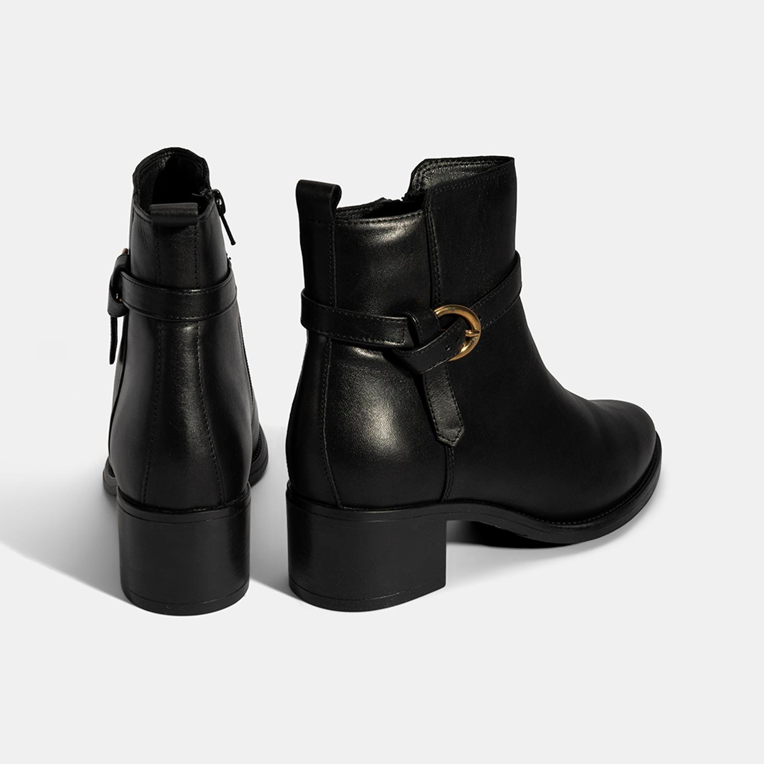 %100 deri, deri iç tabanlı, sentetik astarlı, metal toka aksesuar detaylı, kauçuk tabanlı, içten fermuarlı kadın bot.