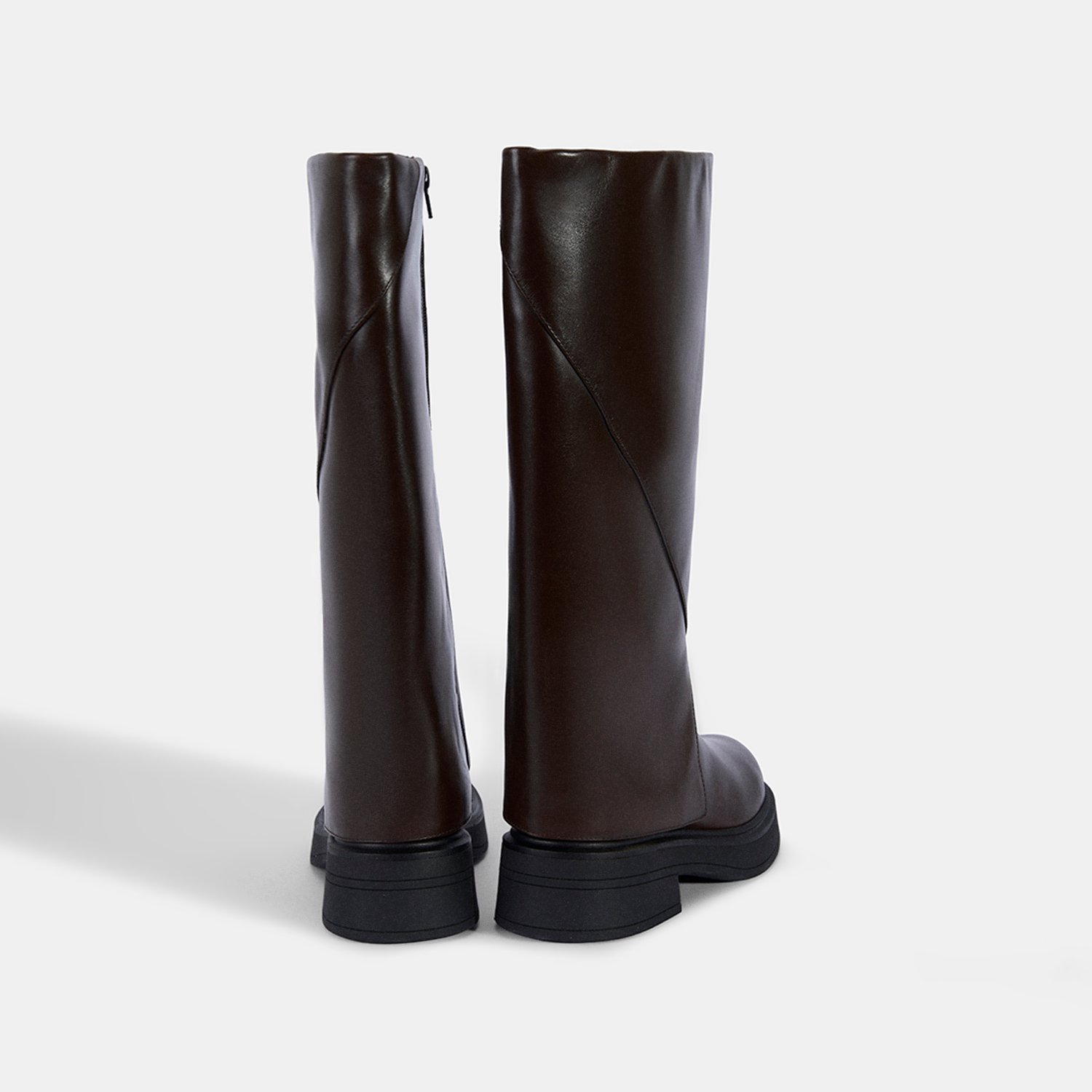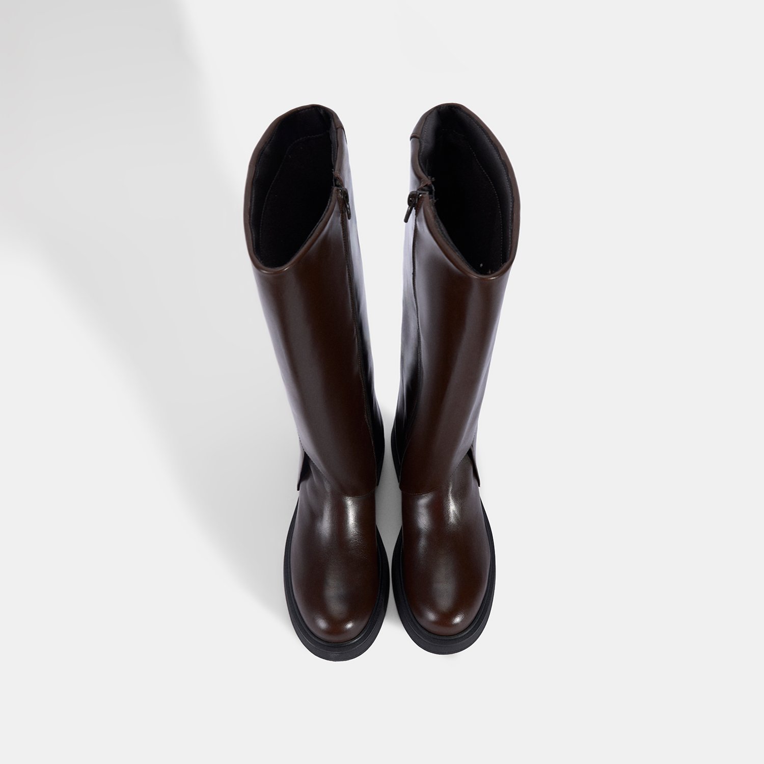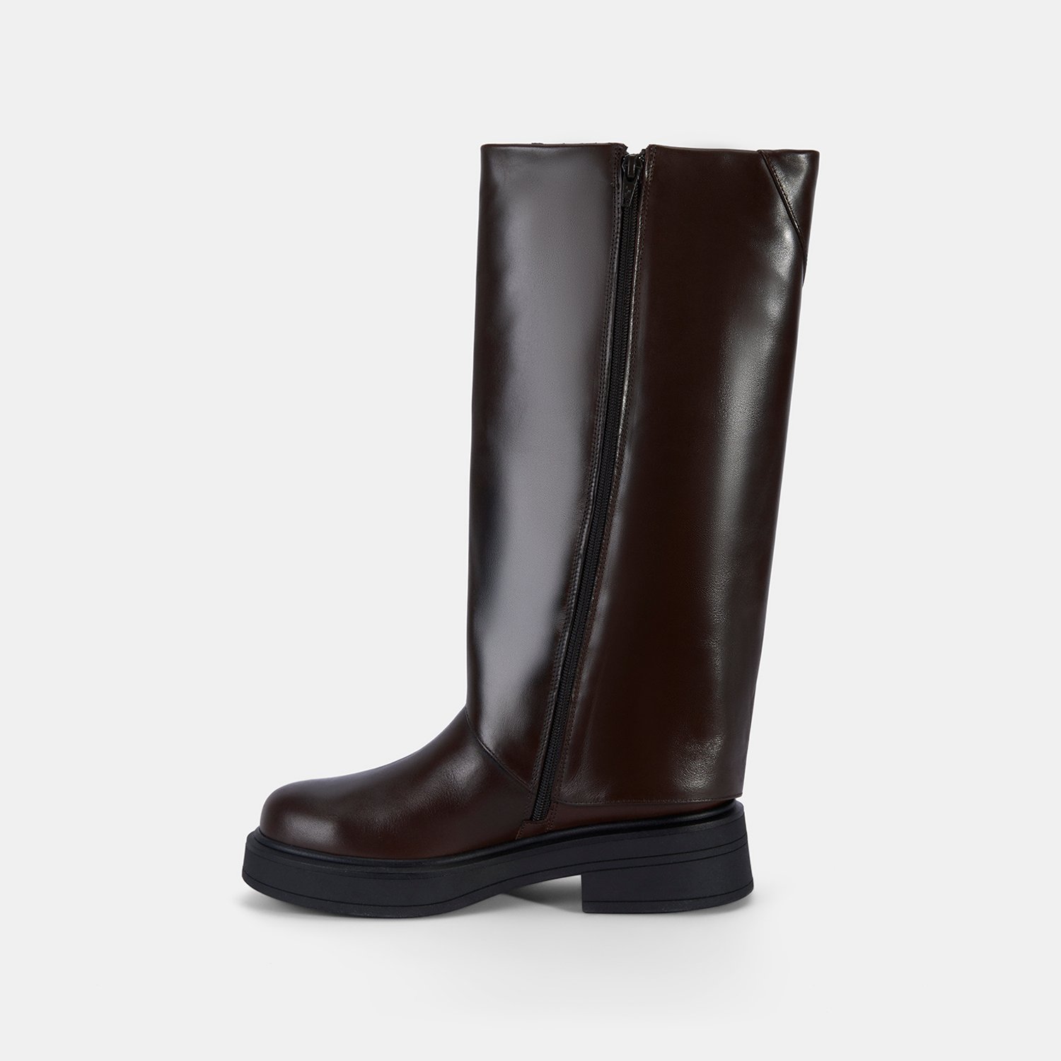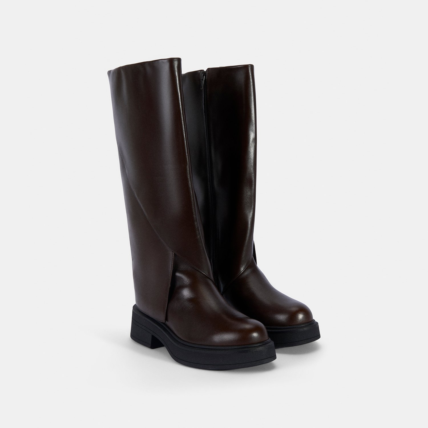 %100 deri, deri iç tabanlı, tekstil astarlı, termo tabanlı, katlama detaylı kadın çizme. Topuk yüksekliği: 4,5 cm.
