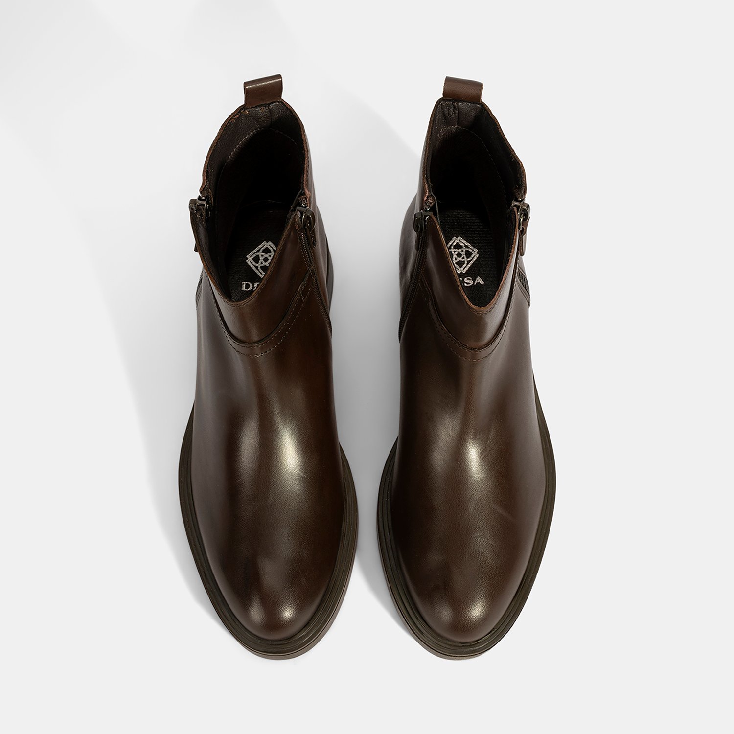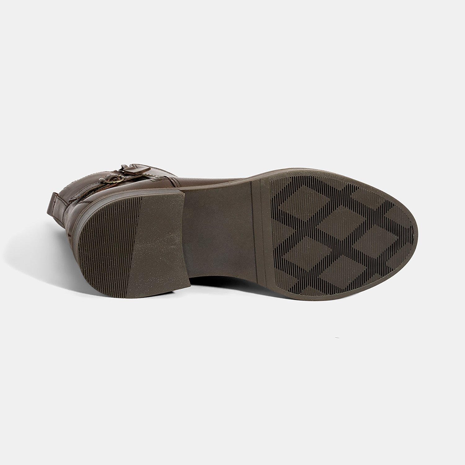 Kadın Kahve Metal Toka Detaylı Fermuarlı Deri Bot