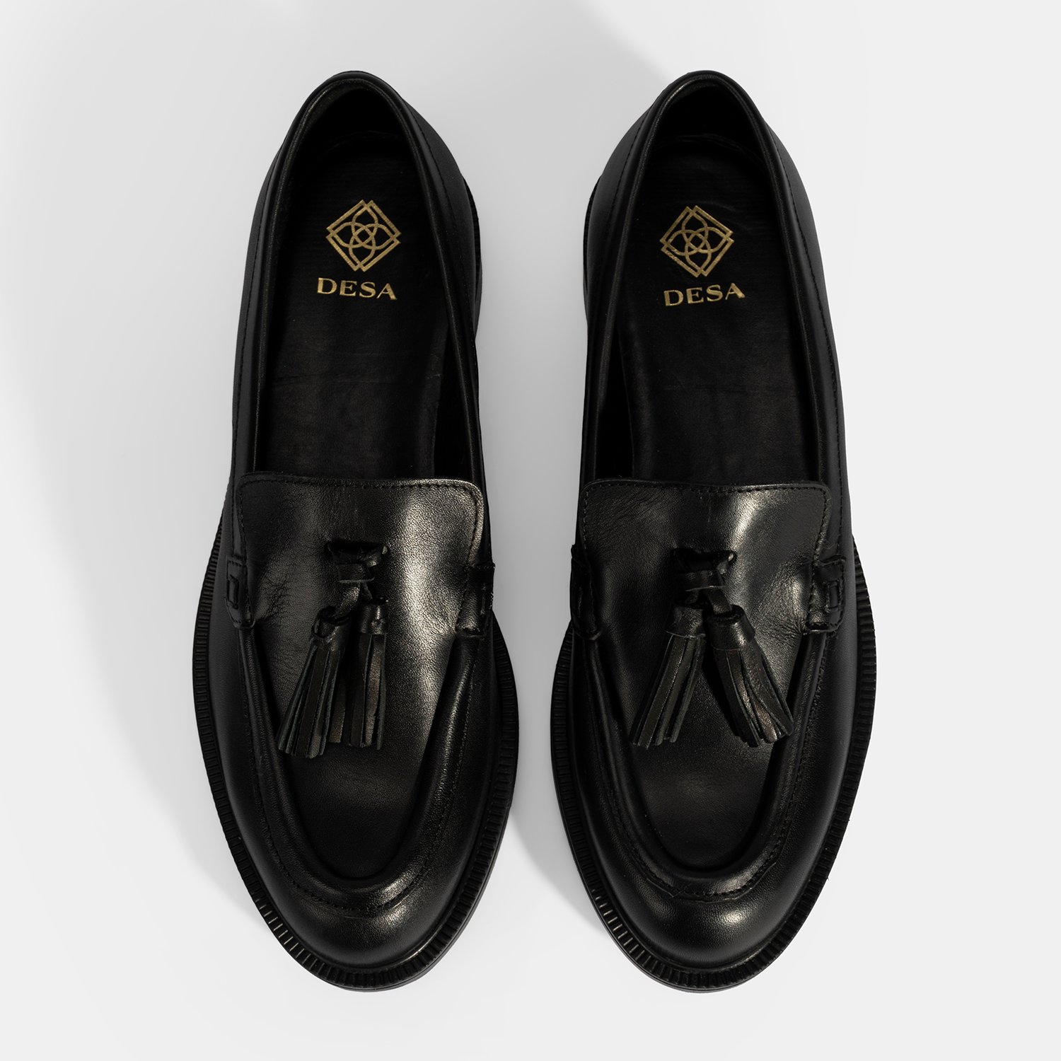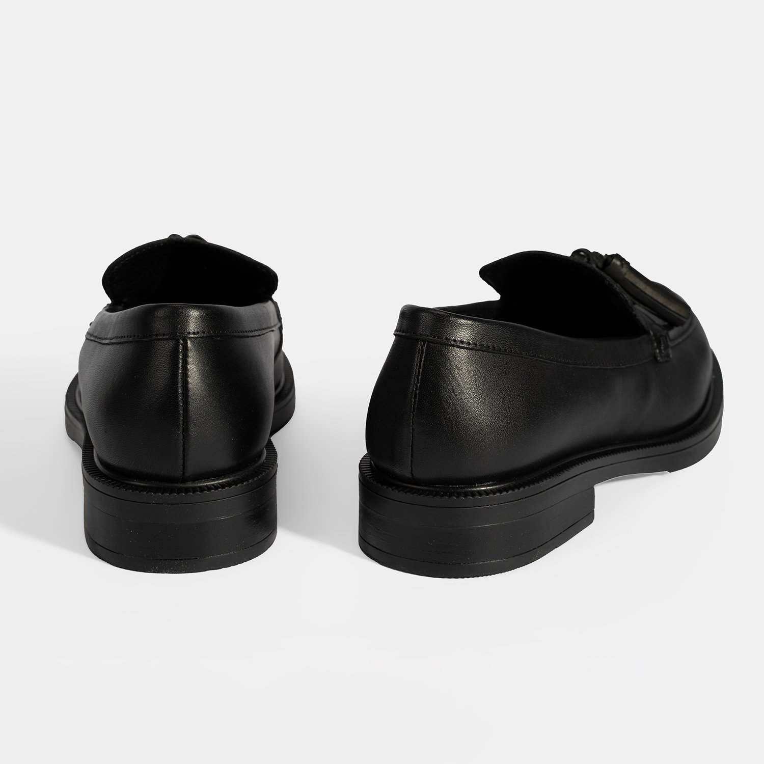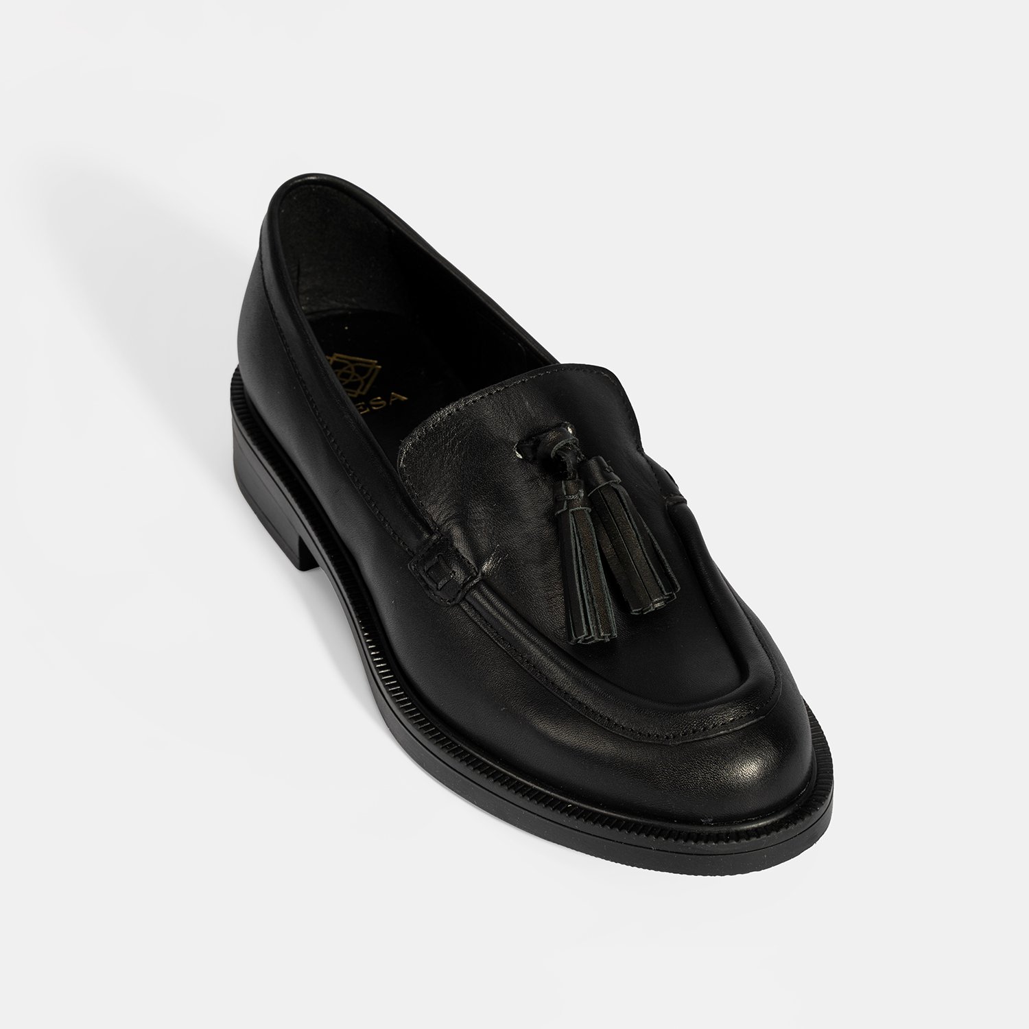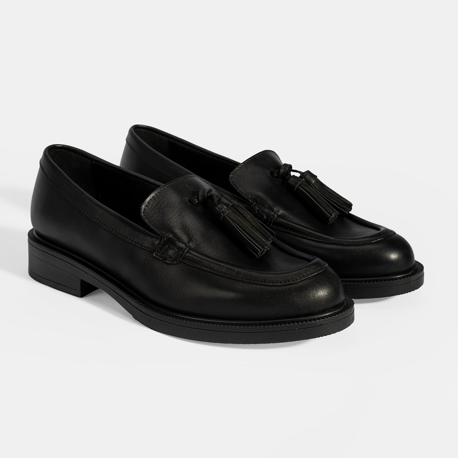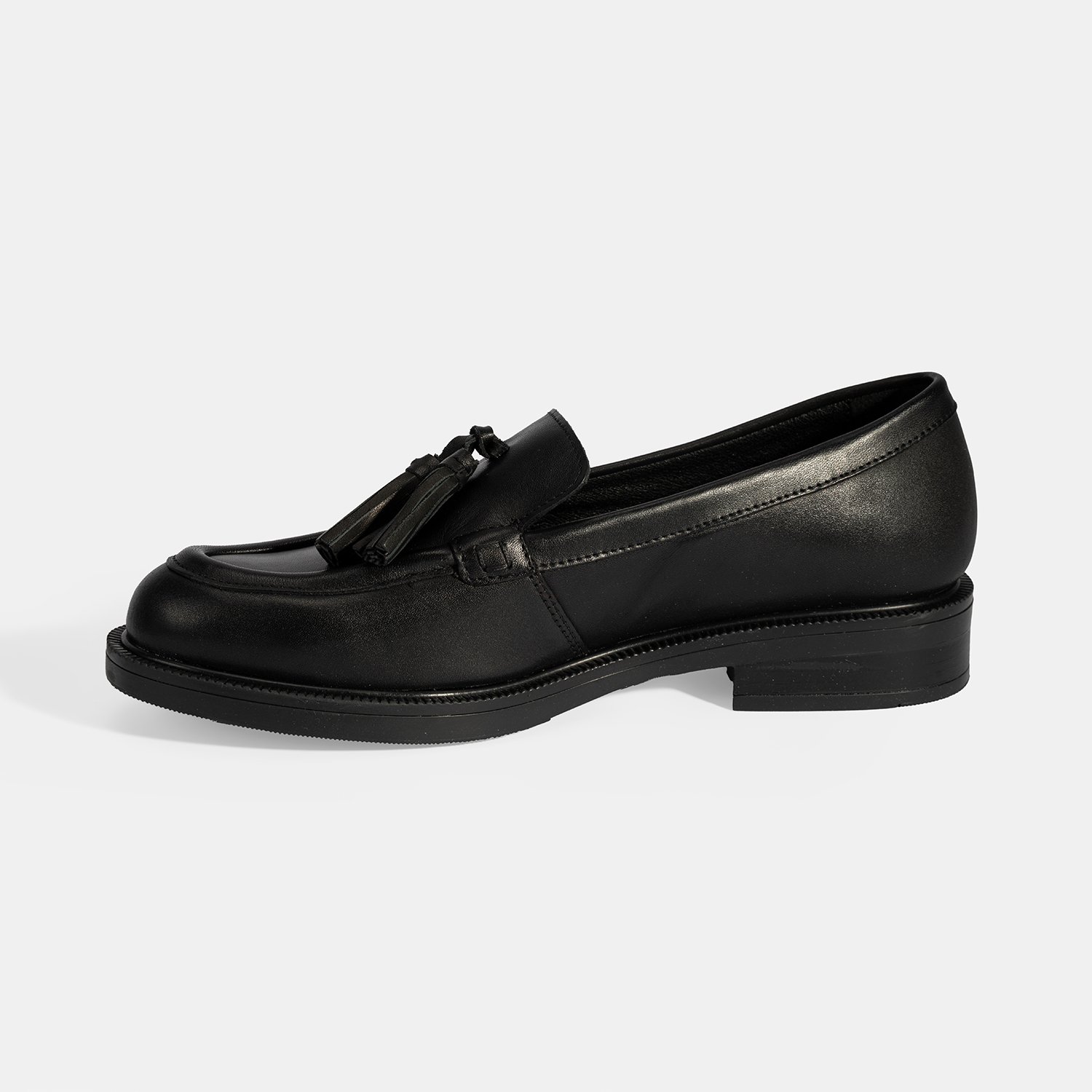 Kadın Siyah Püskül Detaylı Deri Loafer