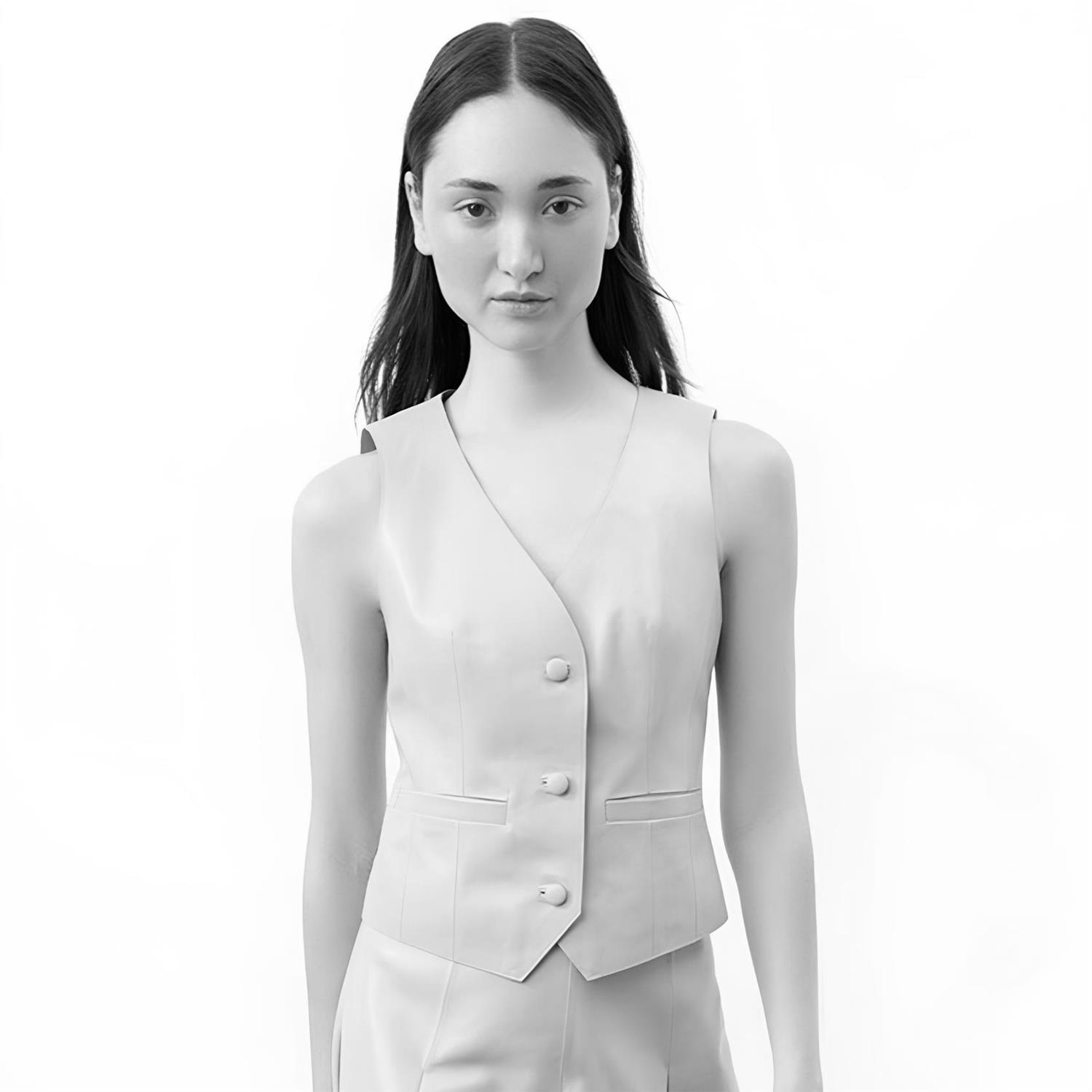 Itala Siyah Kadın Deri Yelek Itala Bej Kadın Deri Yelek