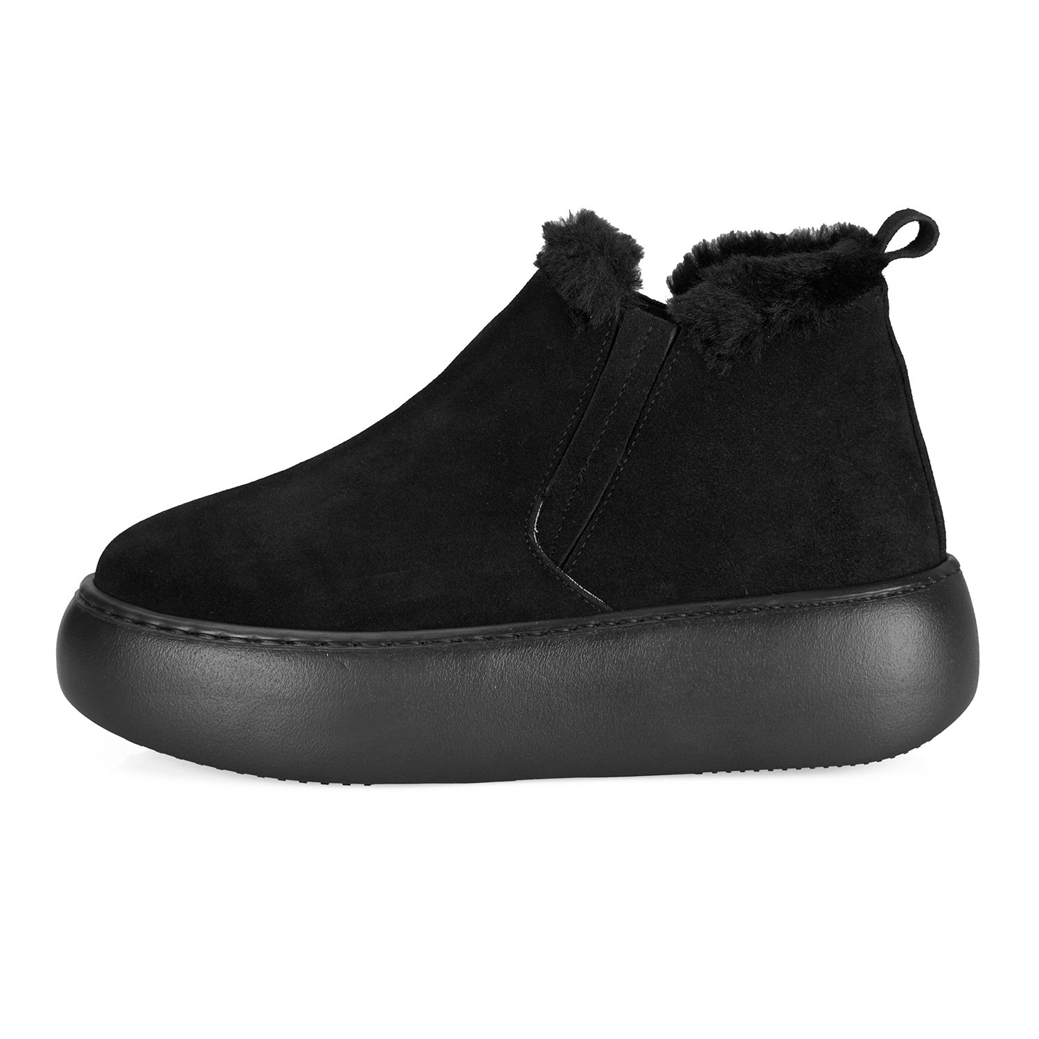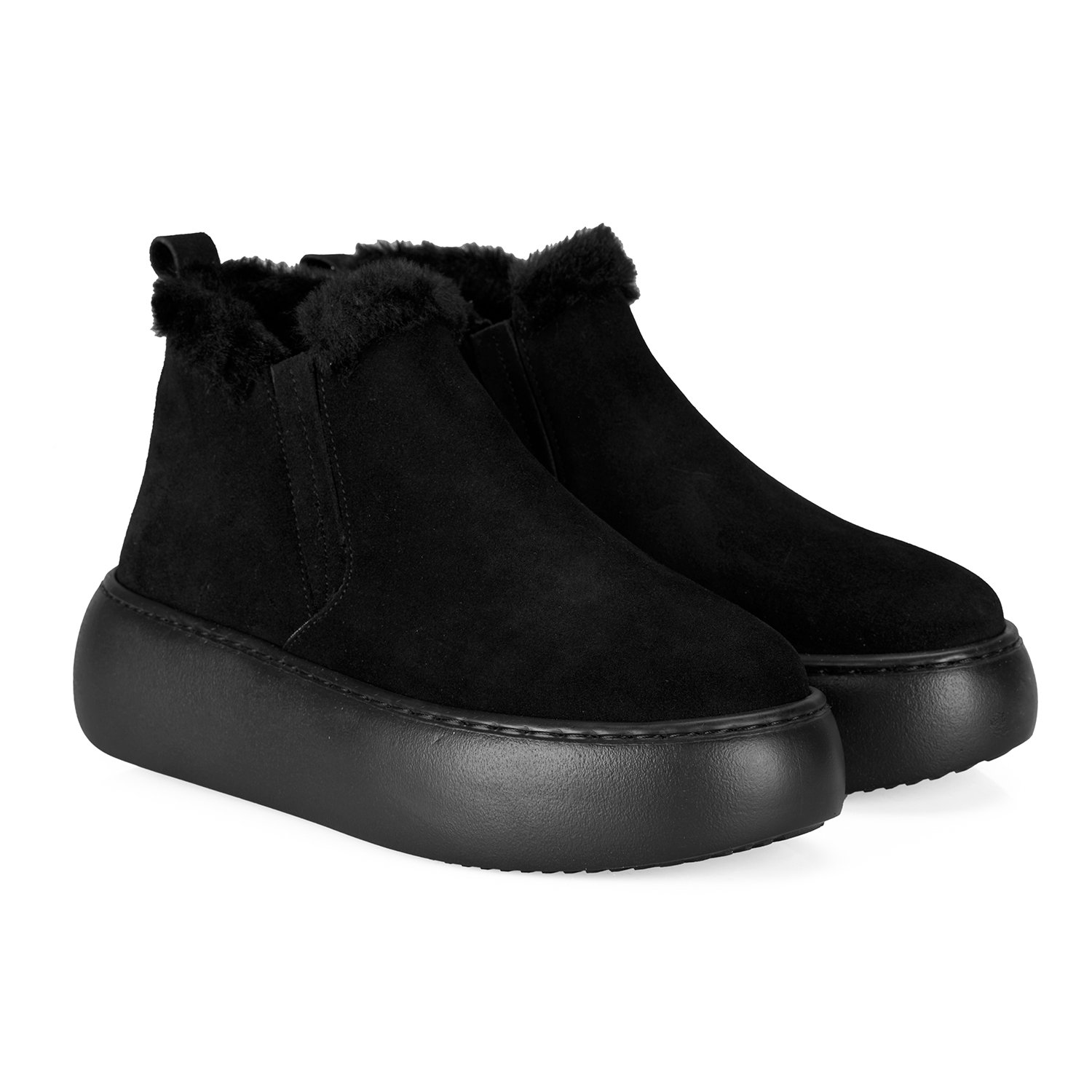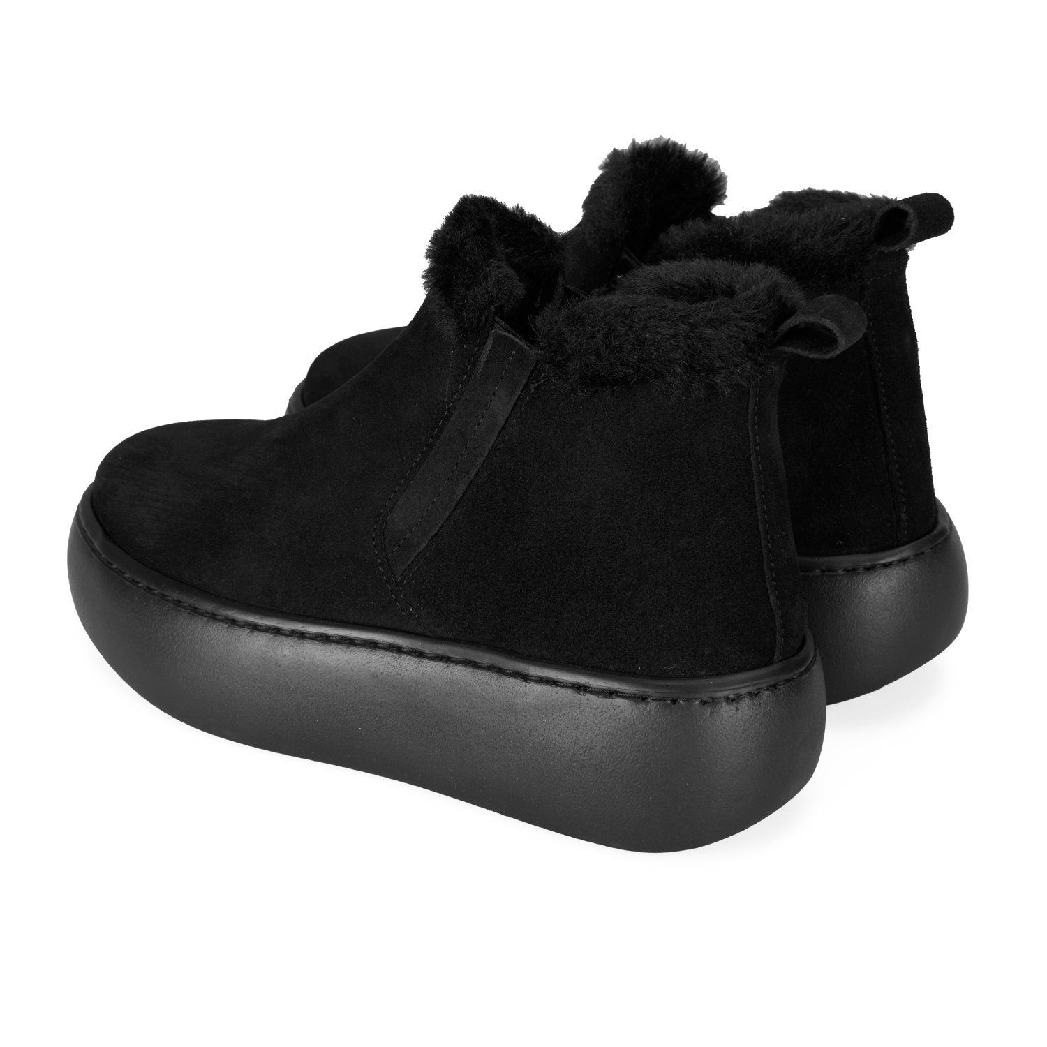 %100 süet deri, deri iç tabanlı, tekstil astarlı, peluş yaka detaylı, pu tabanlı kadın bot.