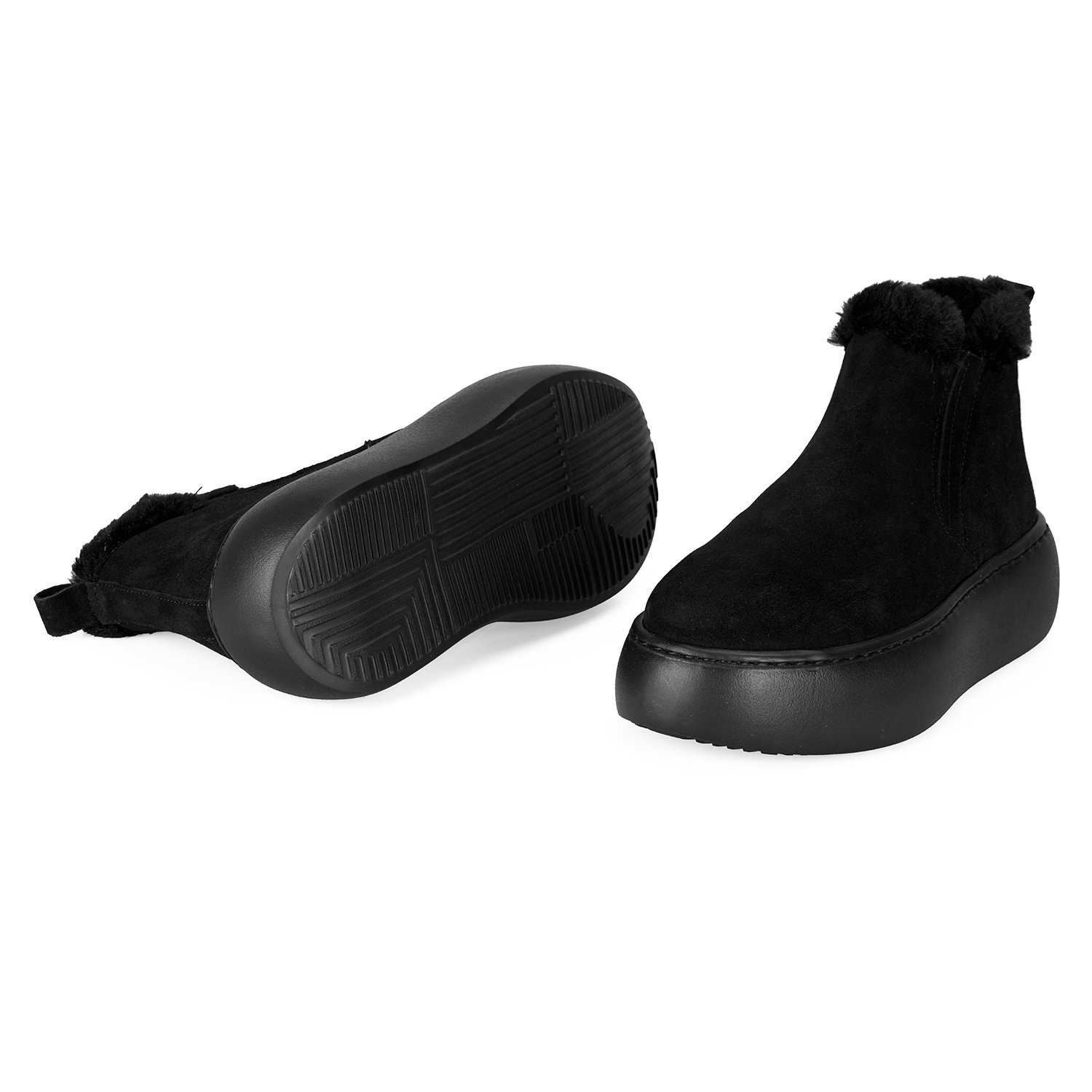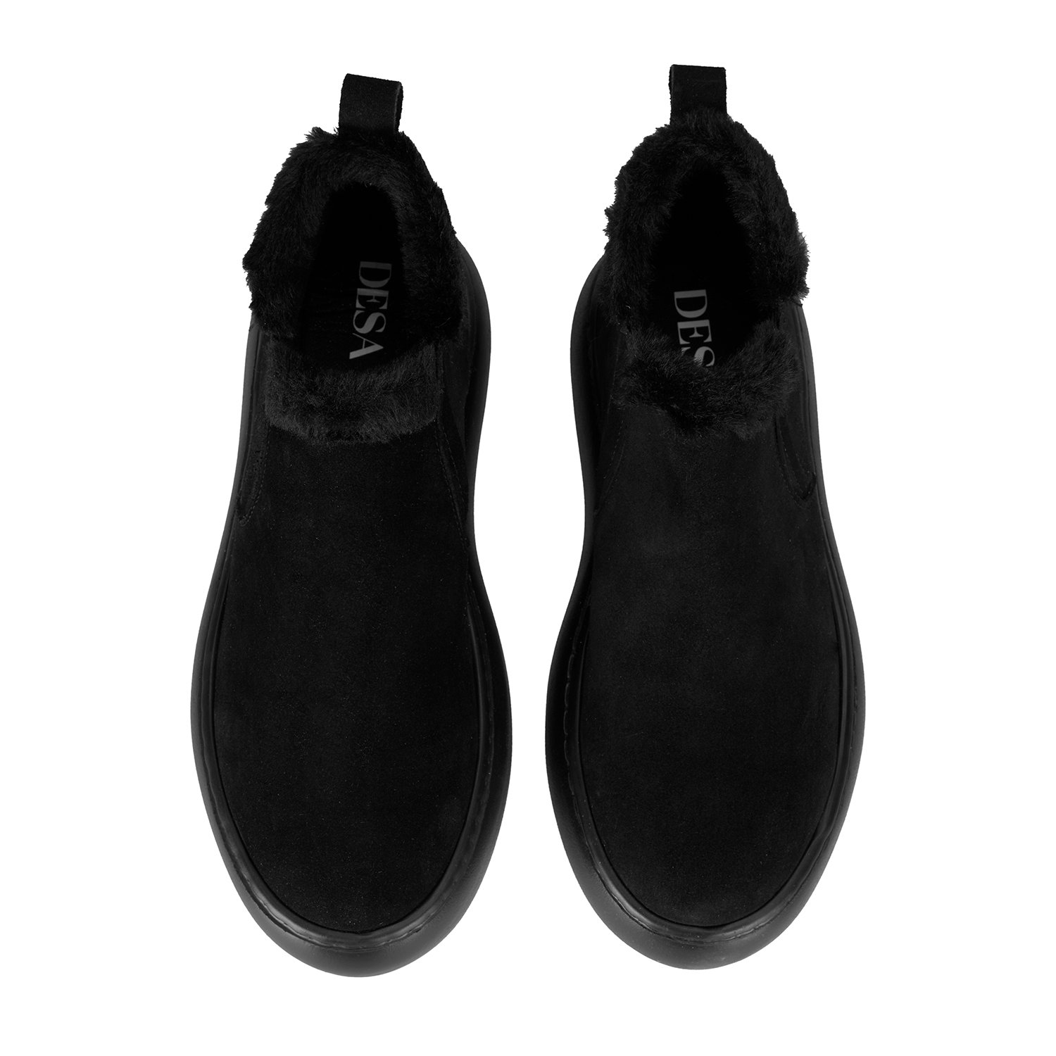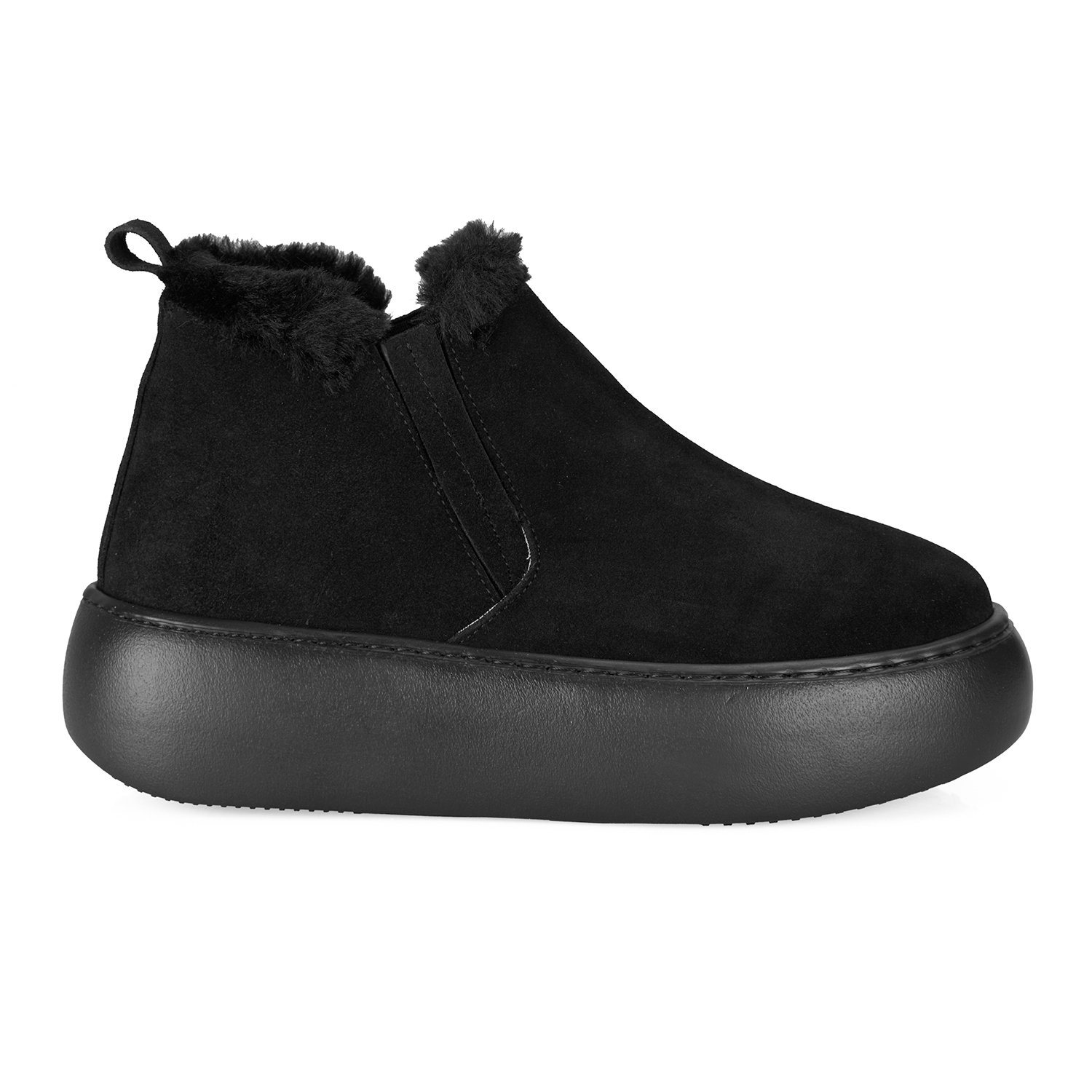 %100 süet deri, deri iç tabanlı, tekstil astarlı, peluş yaka detaylı, pu tabanlı kadın bot.
